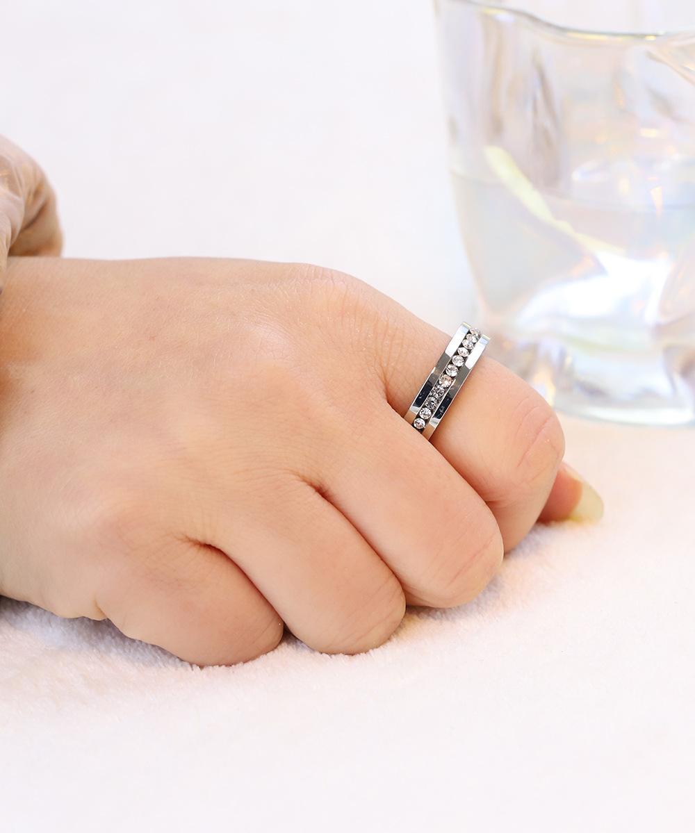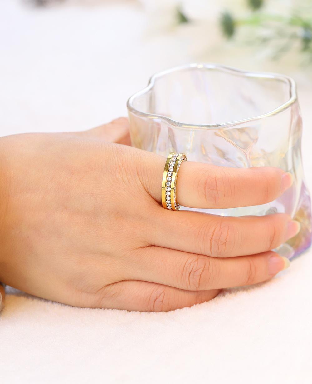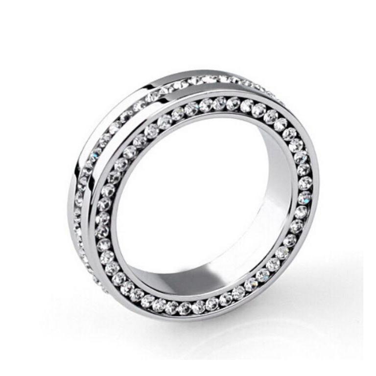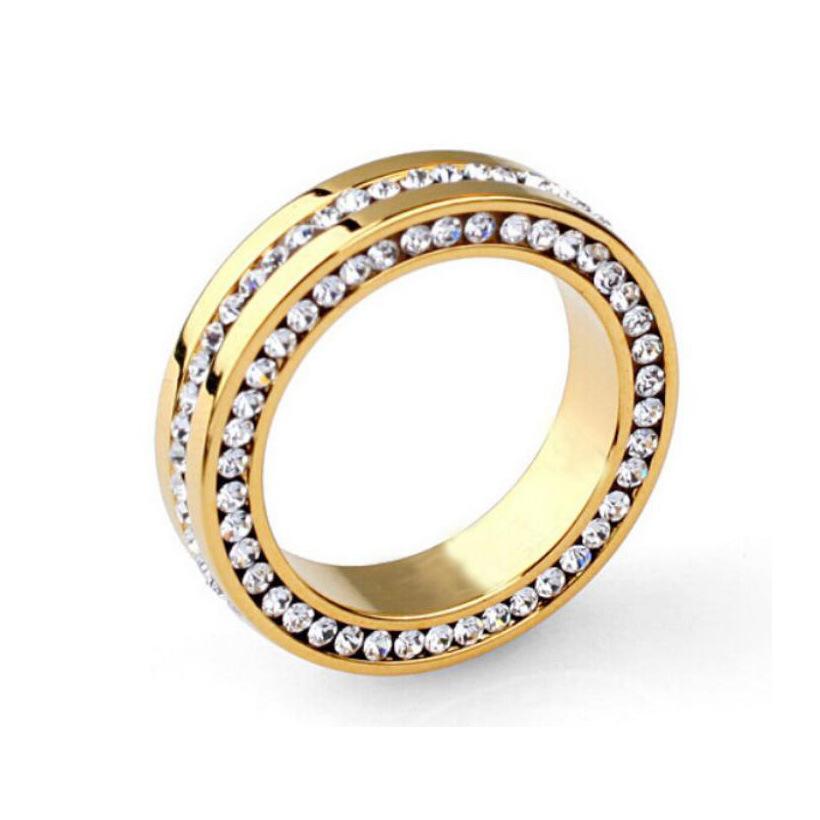 Moda Europea y Americana Transfronteriza Anillo Versátil para Pareja de Acero Inoxidable Diamantado de Tres Lados de 6 mm Fabricante Mayorista de Anillos de Acero Titanio para Mujeres