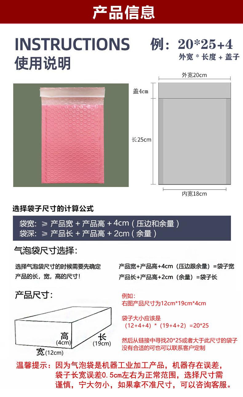 Pink Bubble Bag * 11*13+4, 1400 PCs per box, Pink Bubble Bag * 11*15+4, 1200 pcs per box, Pink Bubble Bag * 12...
