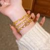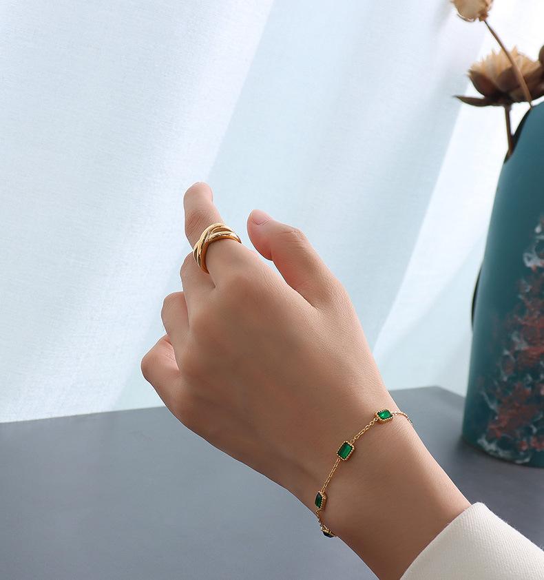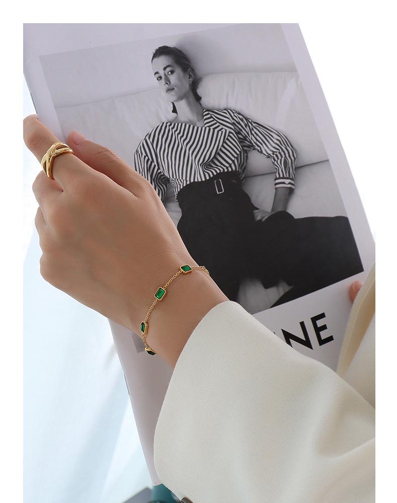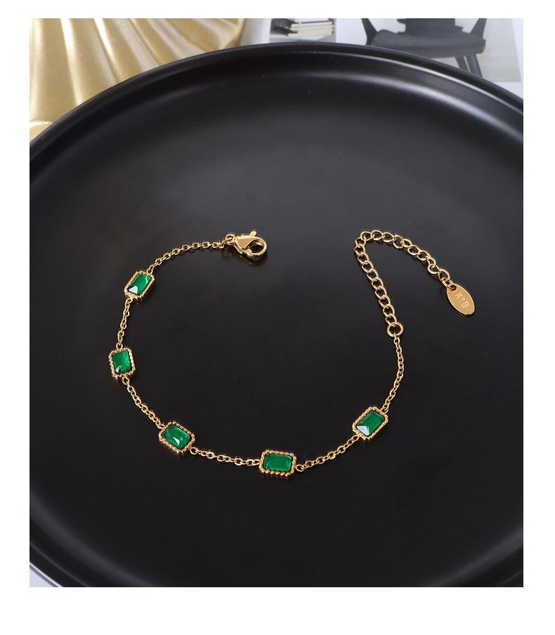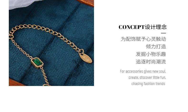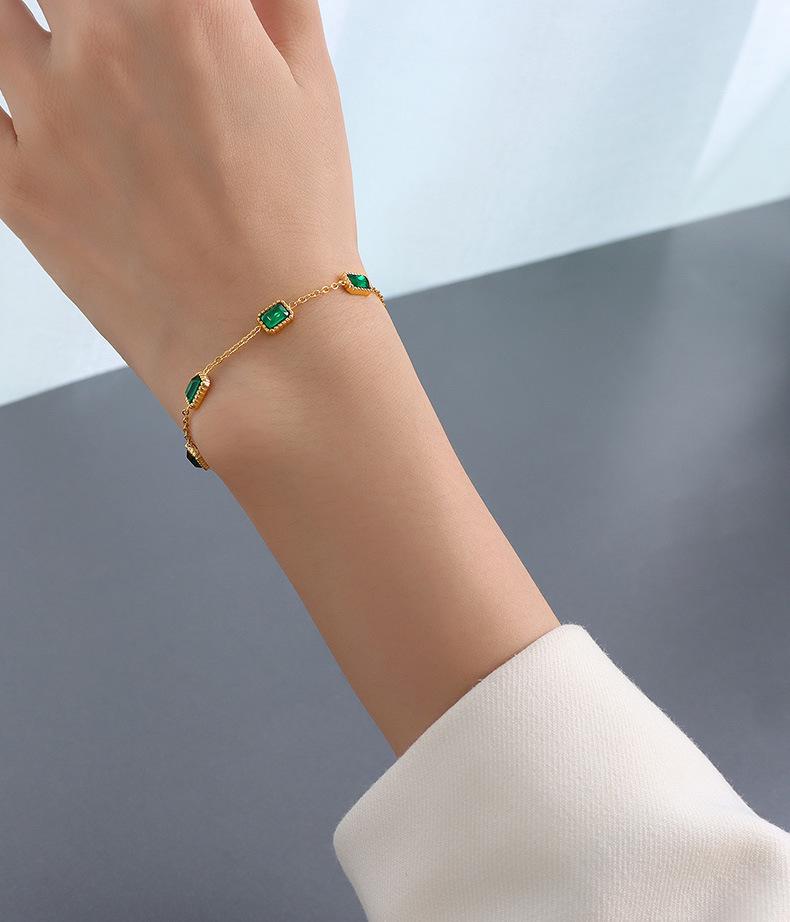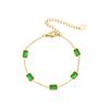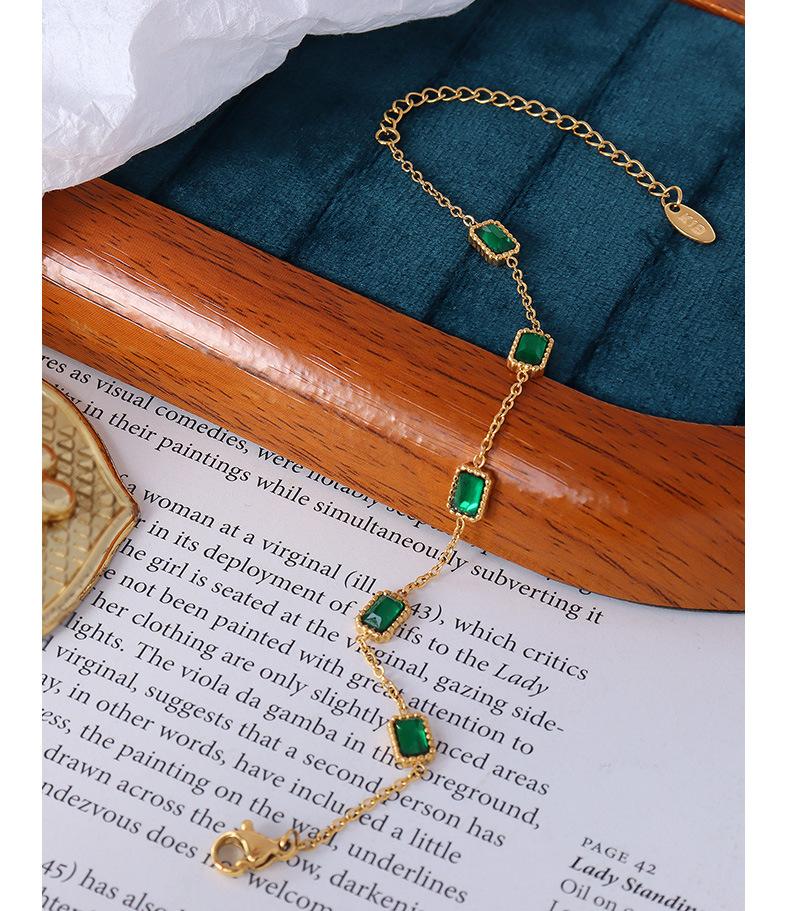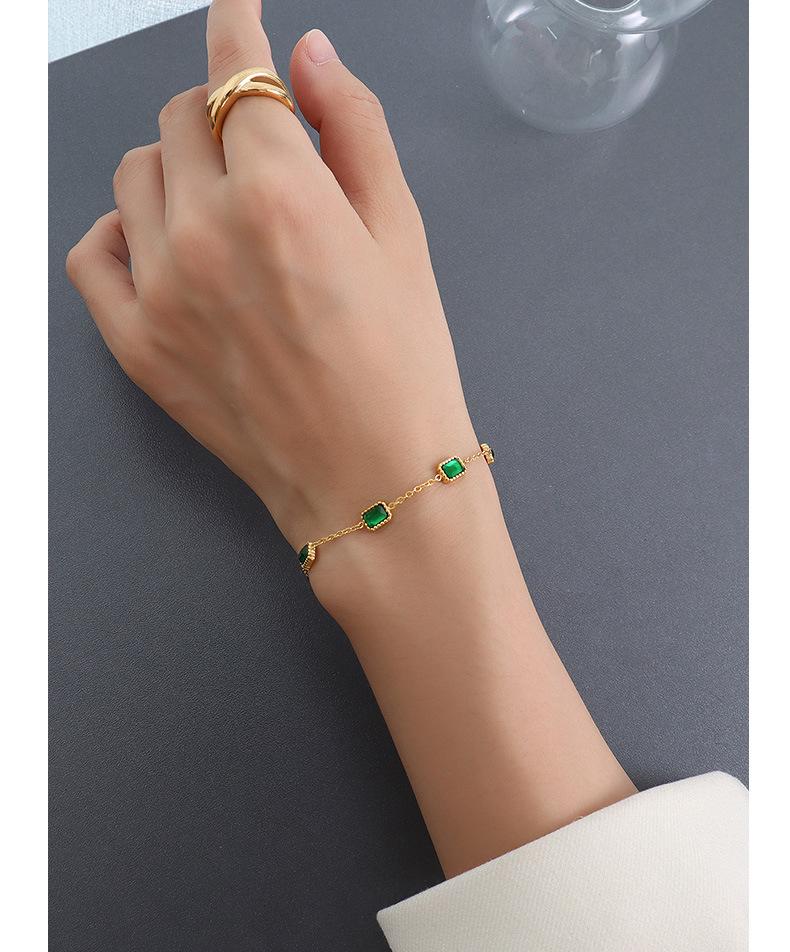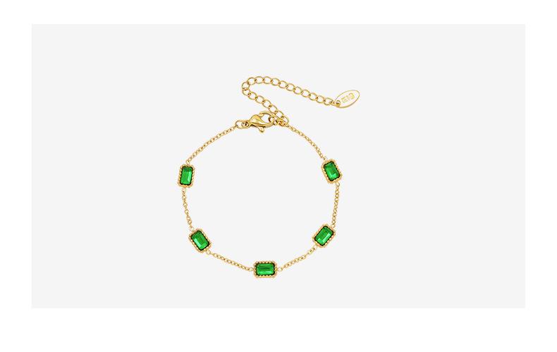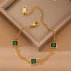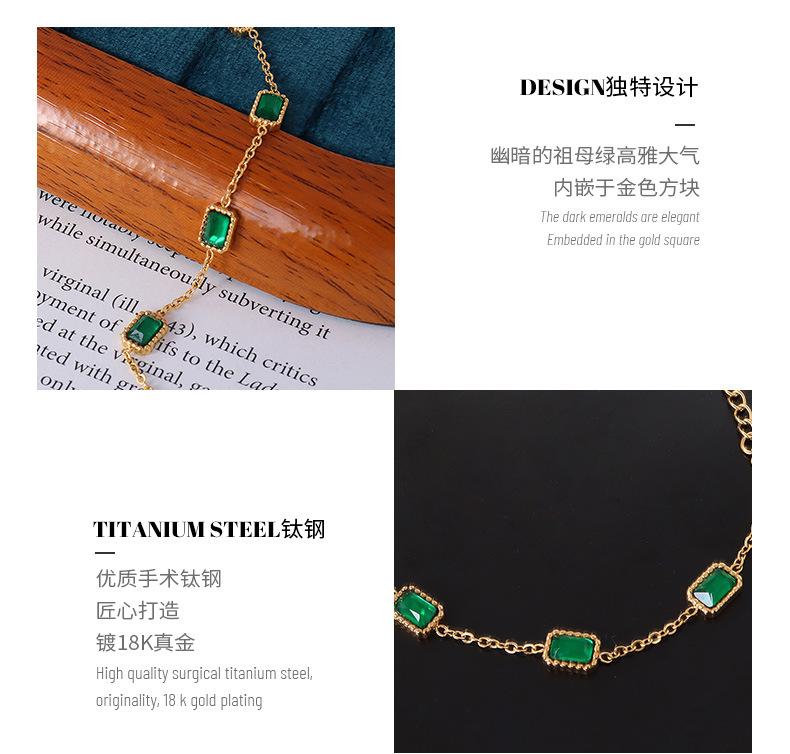 Pulsera cadena de acero de titanio 18K con diseño de nicho moderno estilo ins chino, cuadrado dorado con circonita esmeralda incrustada