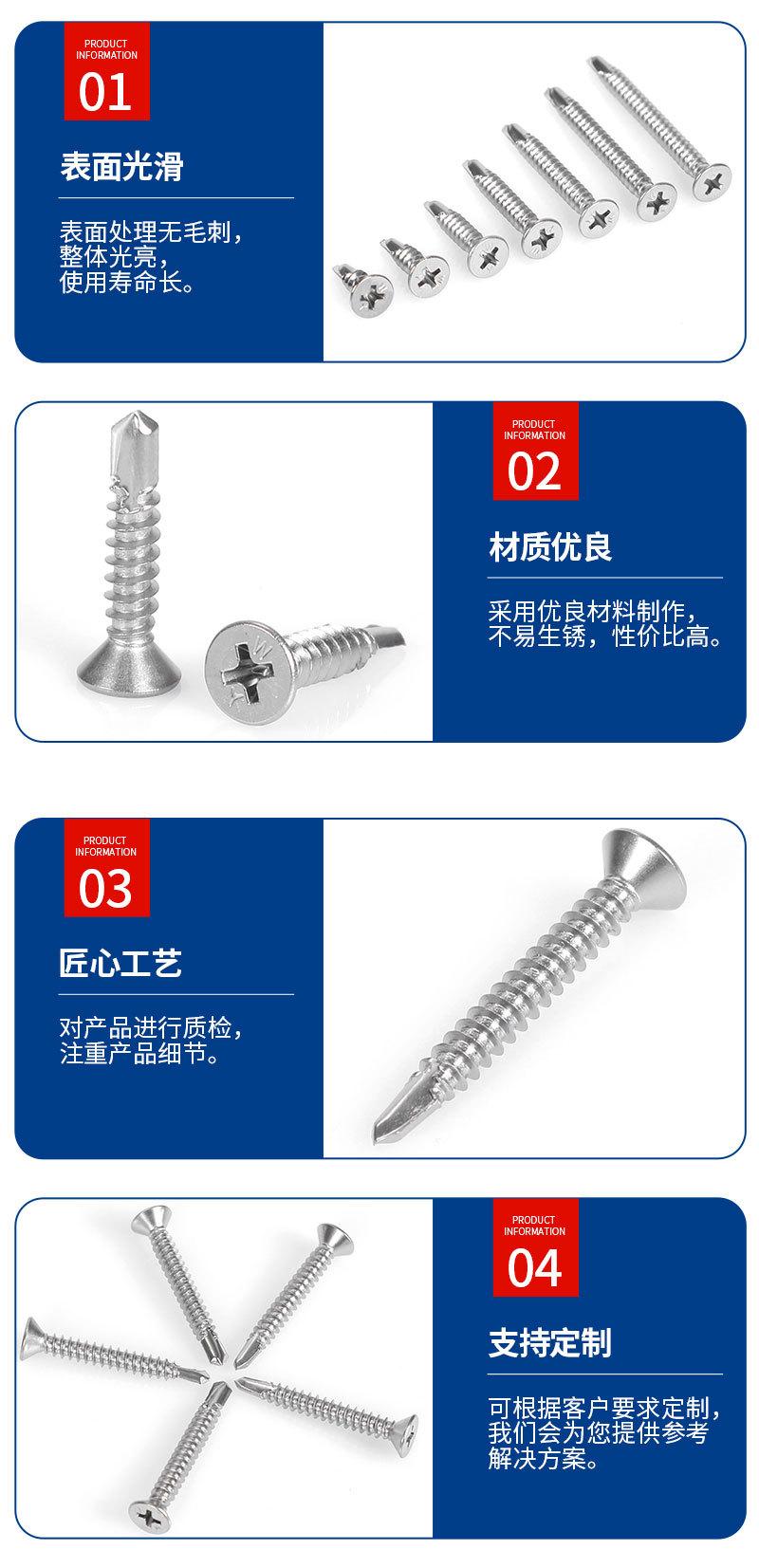 Tornillo autoperforante de cabeza avellanada con cola de milano y cabeza plana de acero inoxidable 304, serie M4.2-M6.3