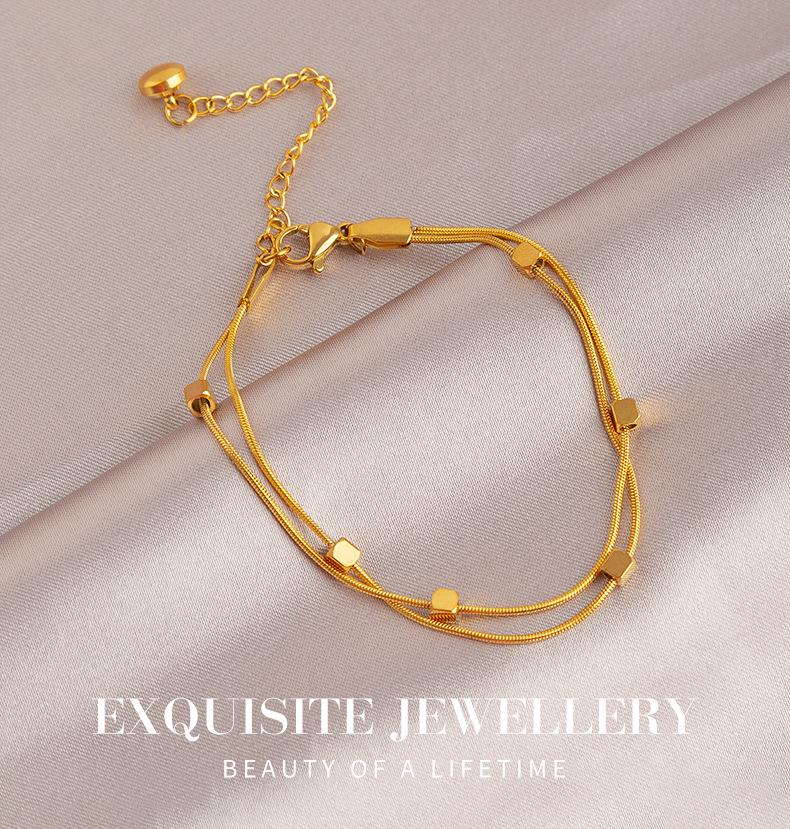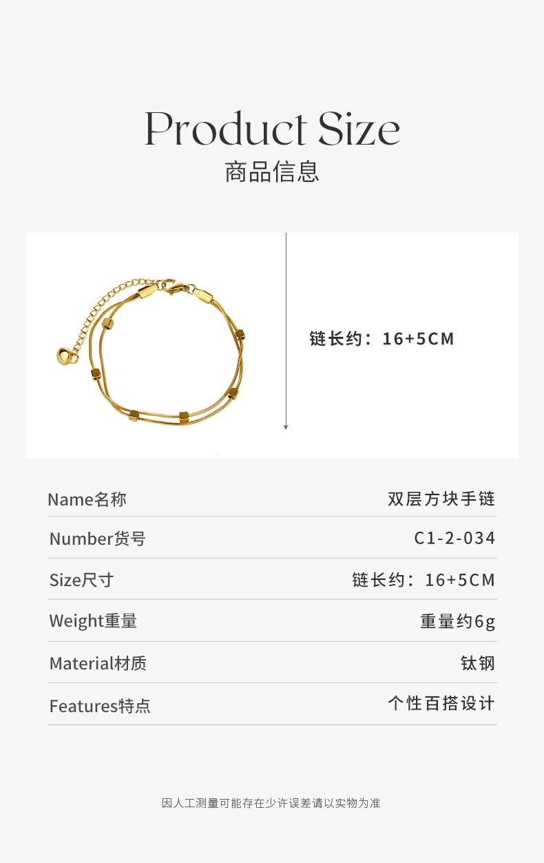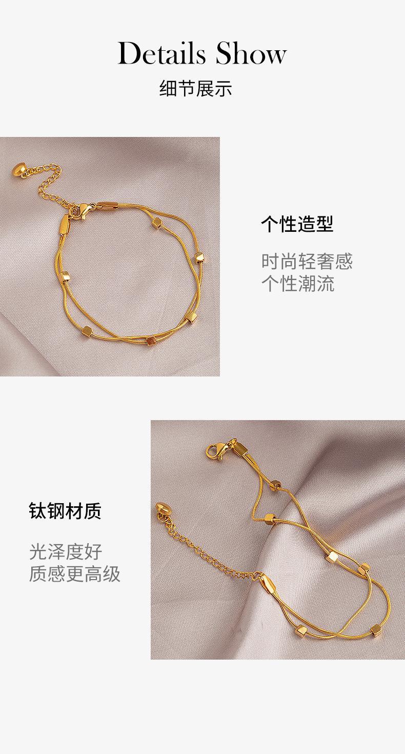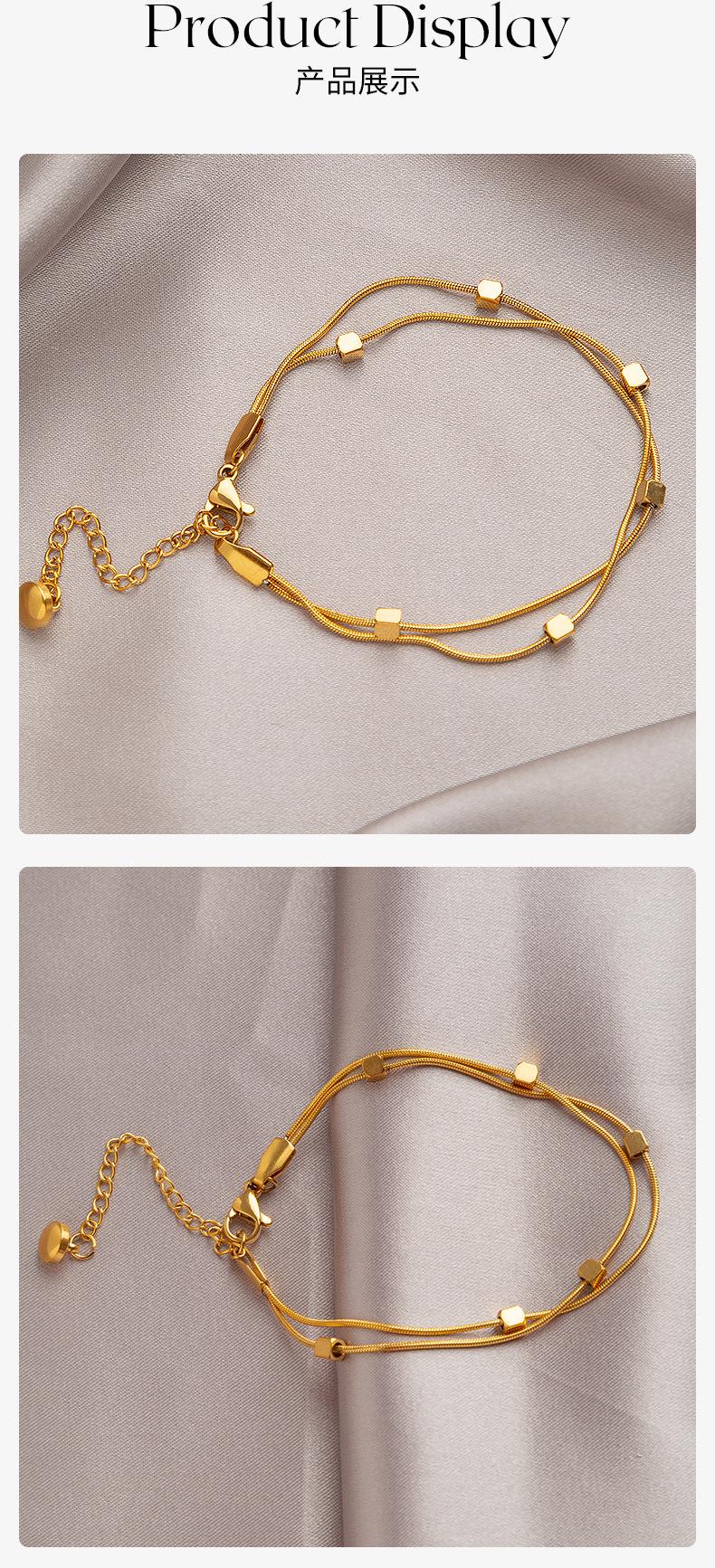 Pulsera Cuadrada Pequeña de Doble Capa de Hueso de Serpiente para Mujer, Acero de Titanio, No se Desvanece, Lujo Ligero, Nicho, Alta Gama, Moderna y Versátil Joyería para Mejor Amiga