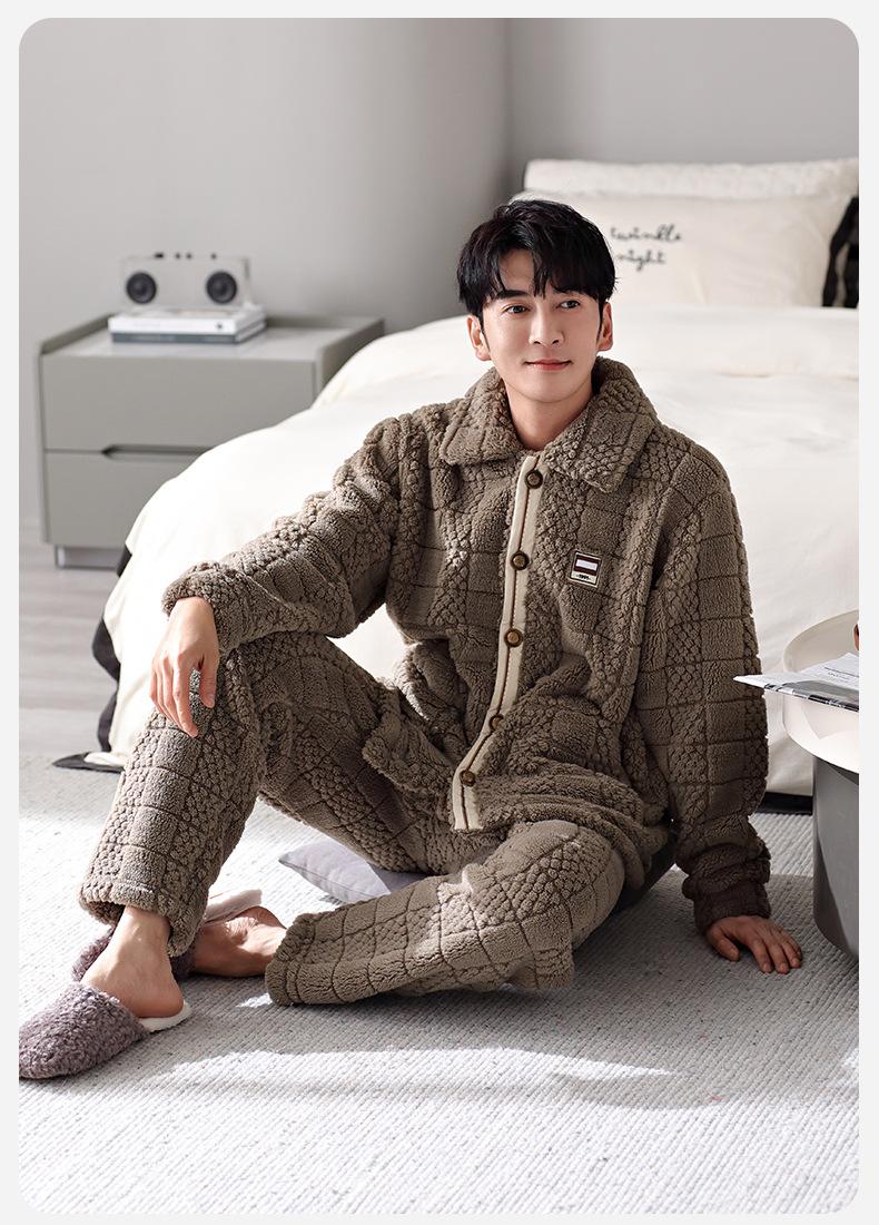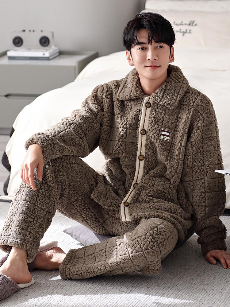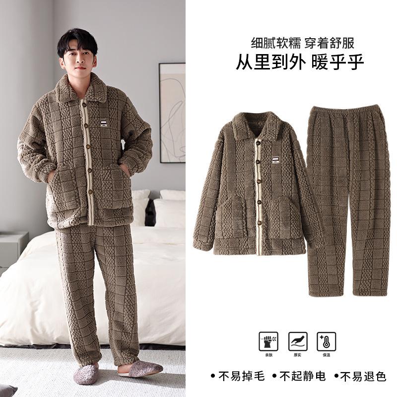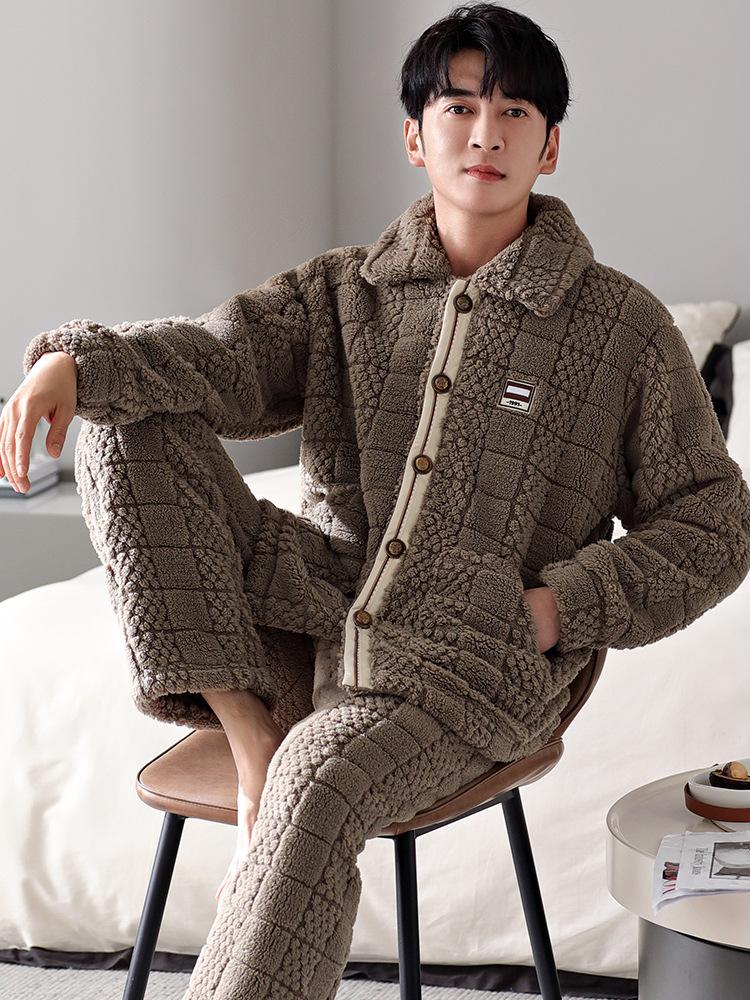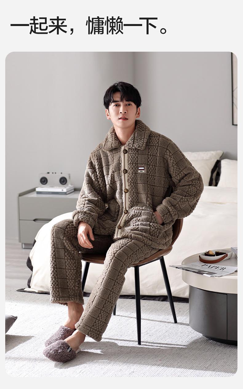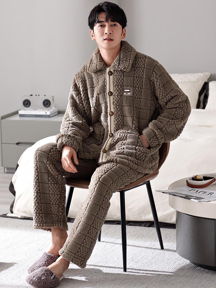 Pijama nuevo para hombre, cómodo traje de terciopelo de algodón con cremallera, forro polar de invierno, grueso y cálido, de talla grande, informal, sencillo, para el hogar