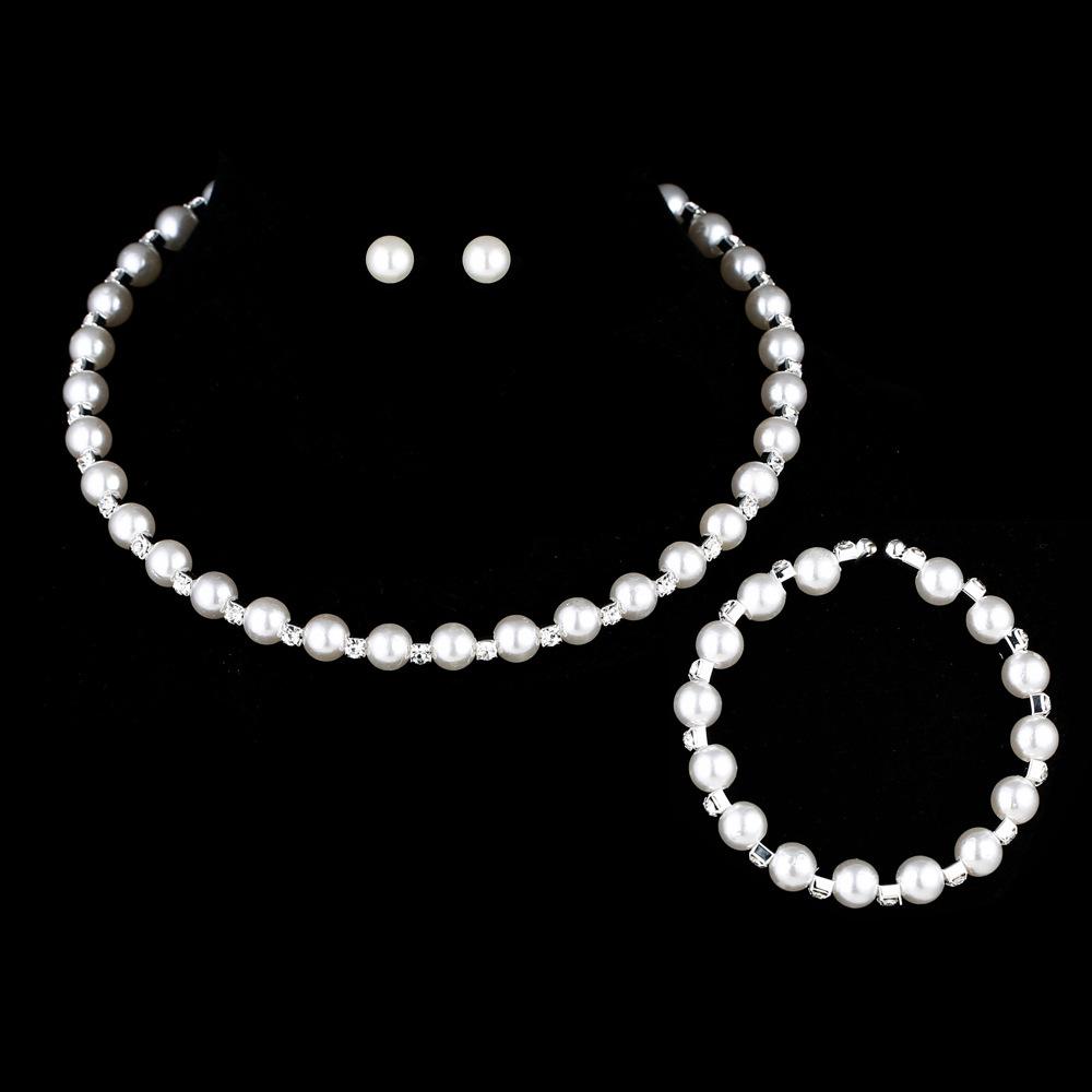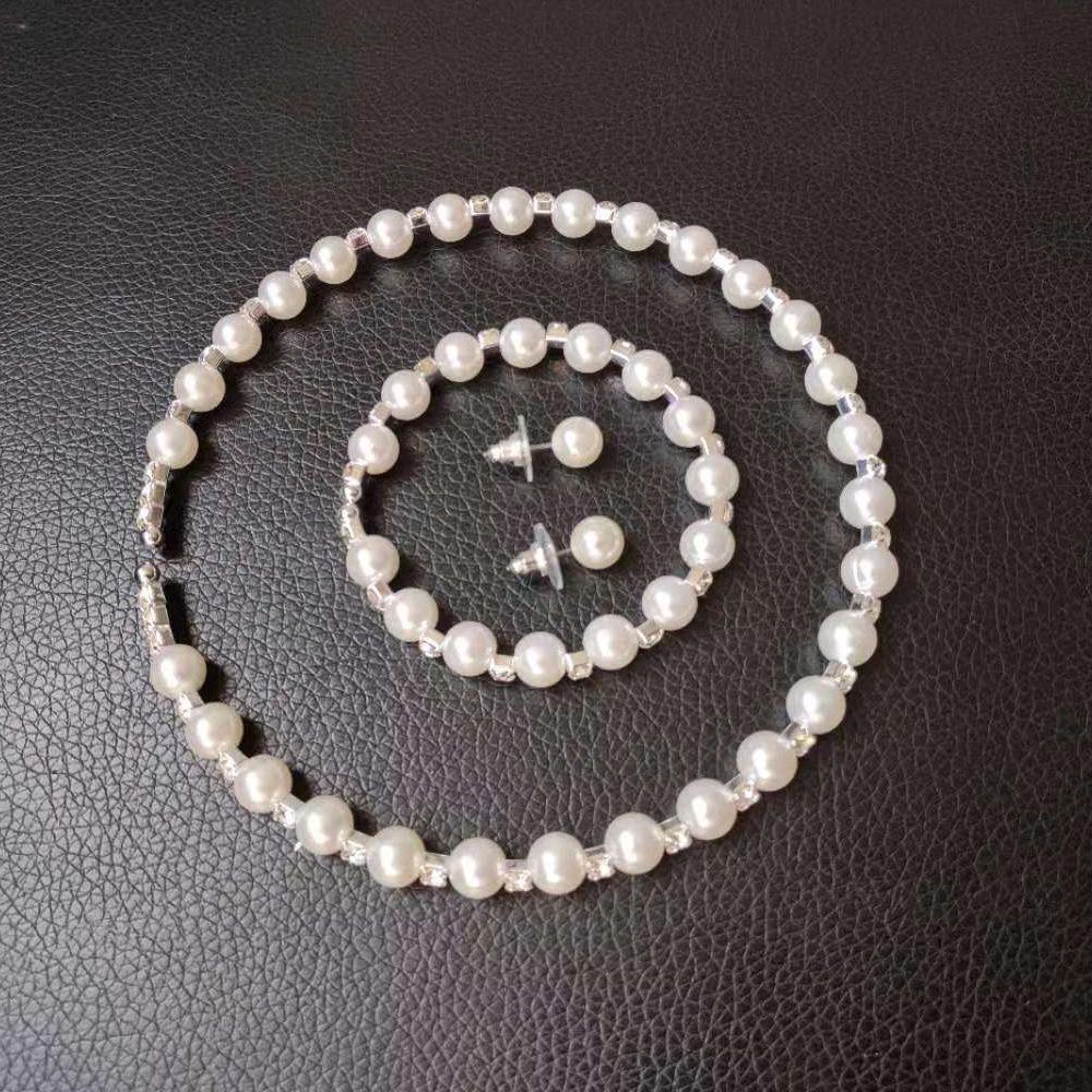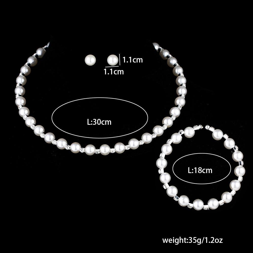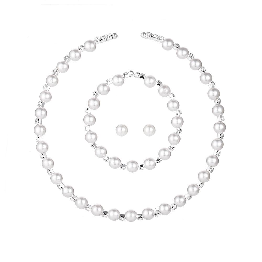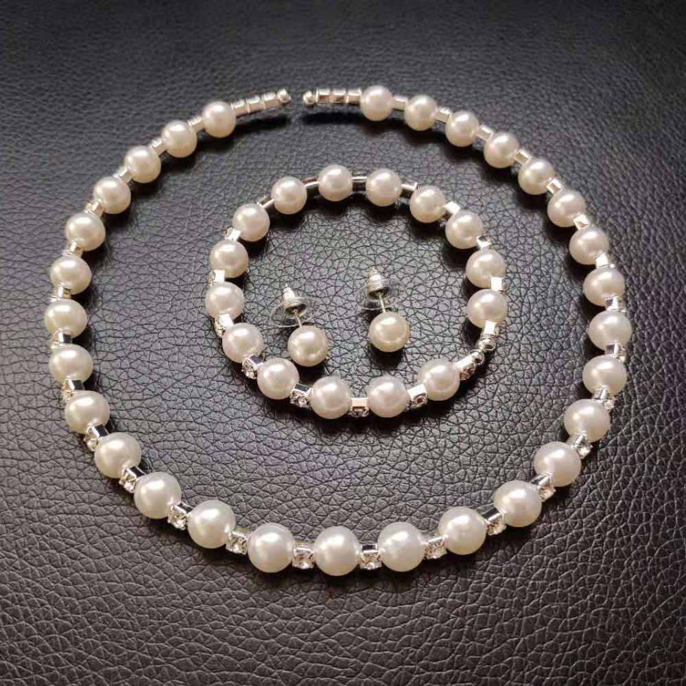 Collar, pendientes, pulsera, joyería, traje de boda, conjunto de tres piezas, con alambre de acero perlado europeo y americano, diamantes de imitación, directo de fábrica