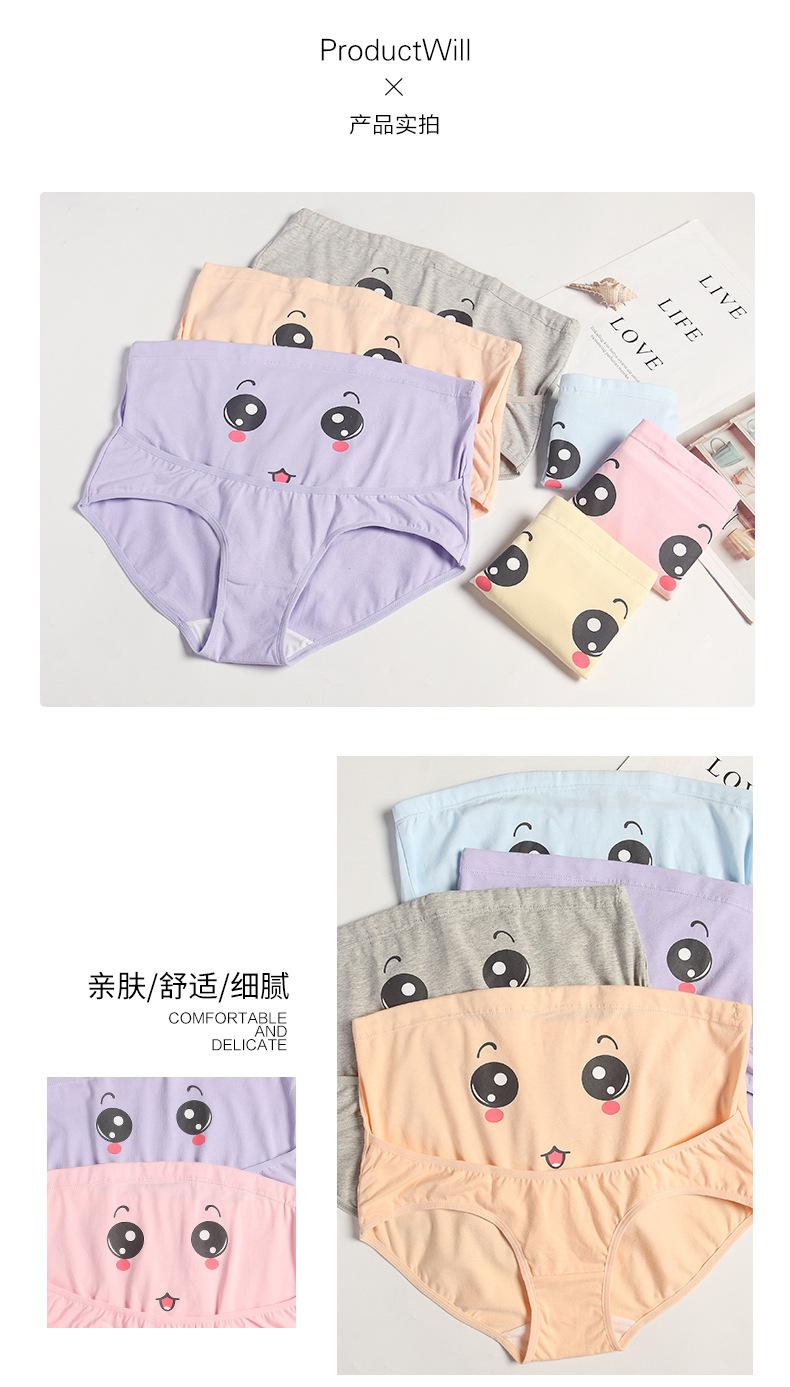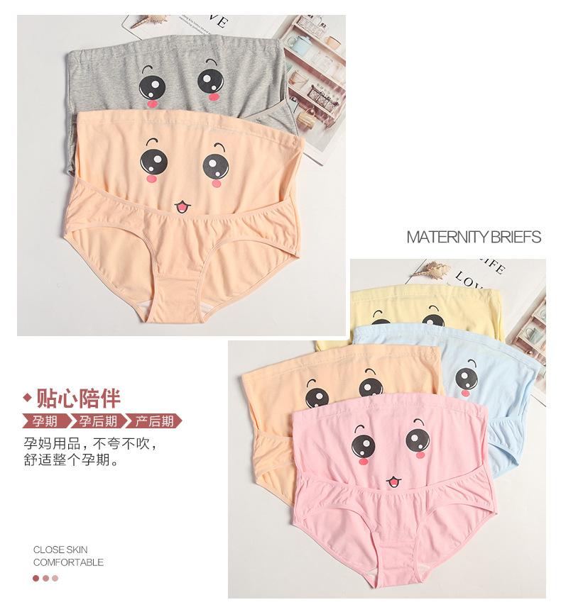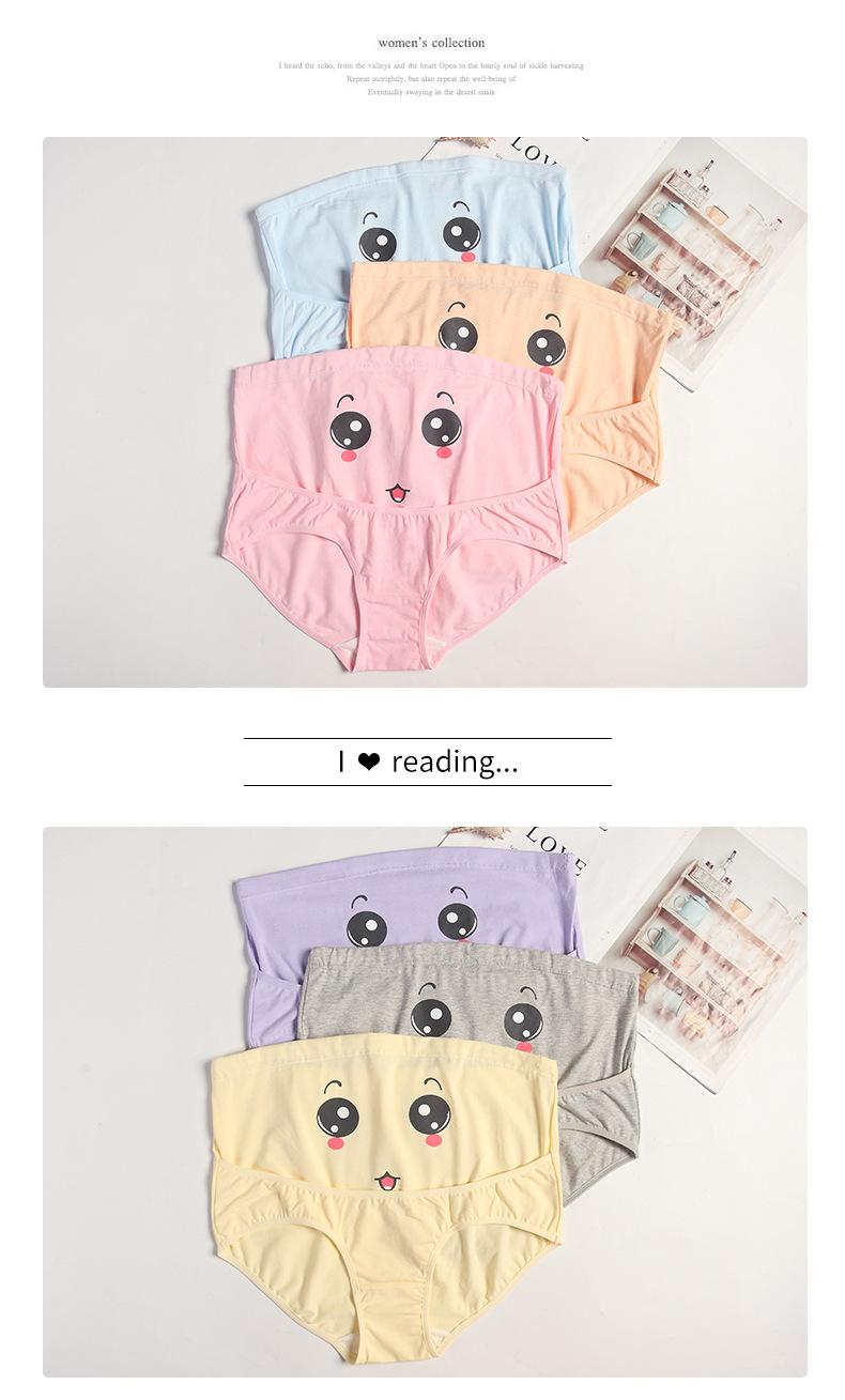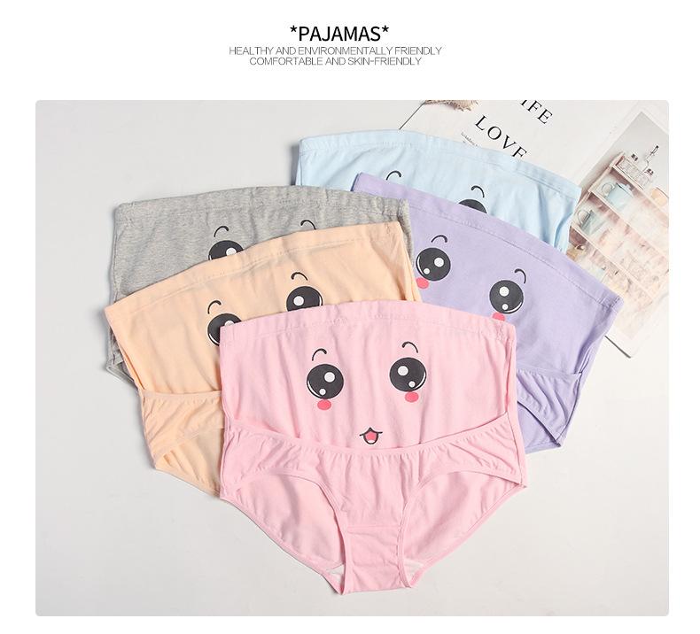 Ropa interior de cintura alta para embarazadas, de algodón con estampado de caritas, ajustable en el abdomen, a la moda, bonita