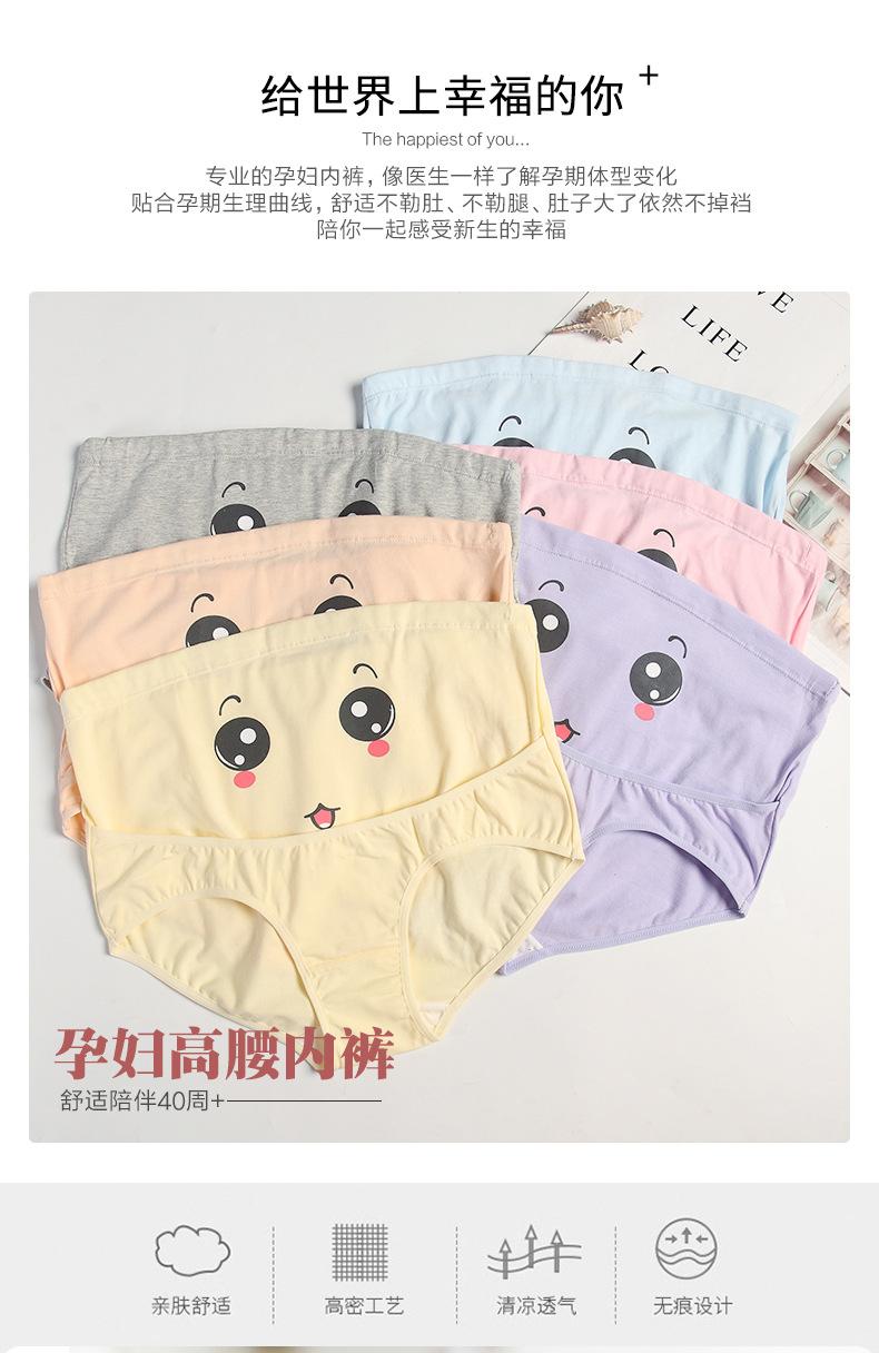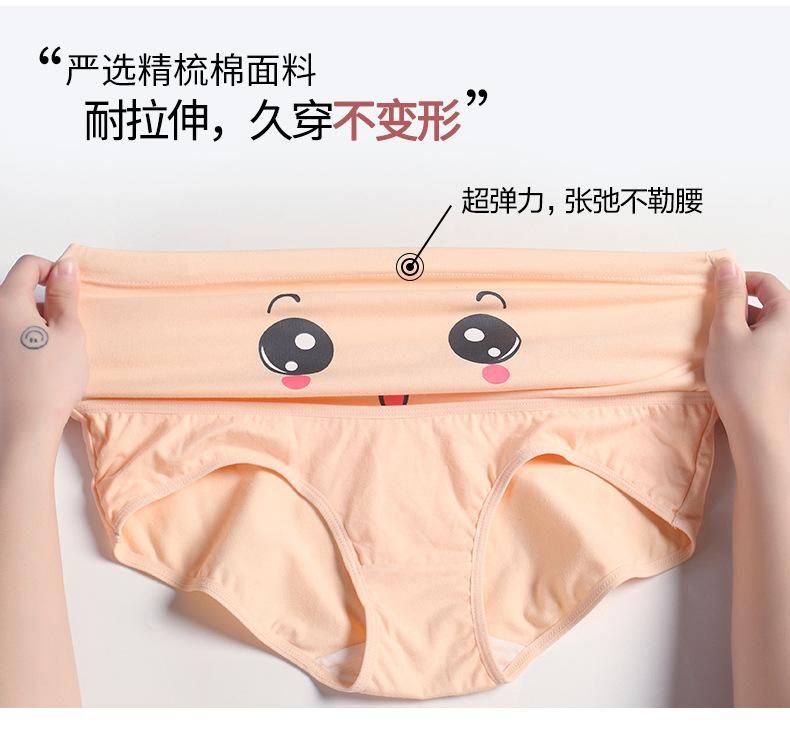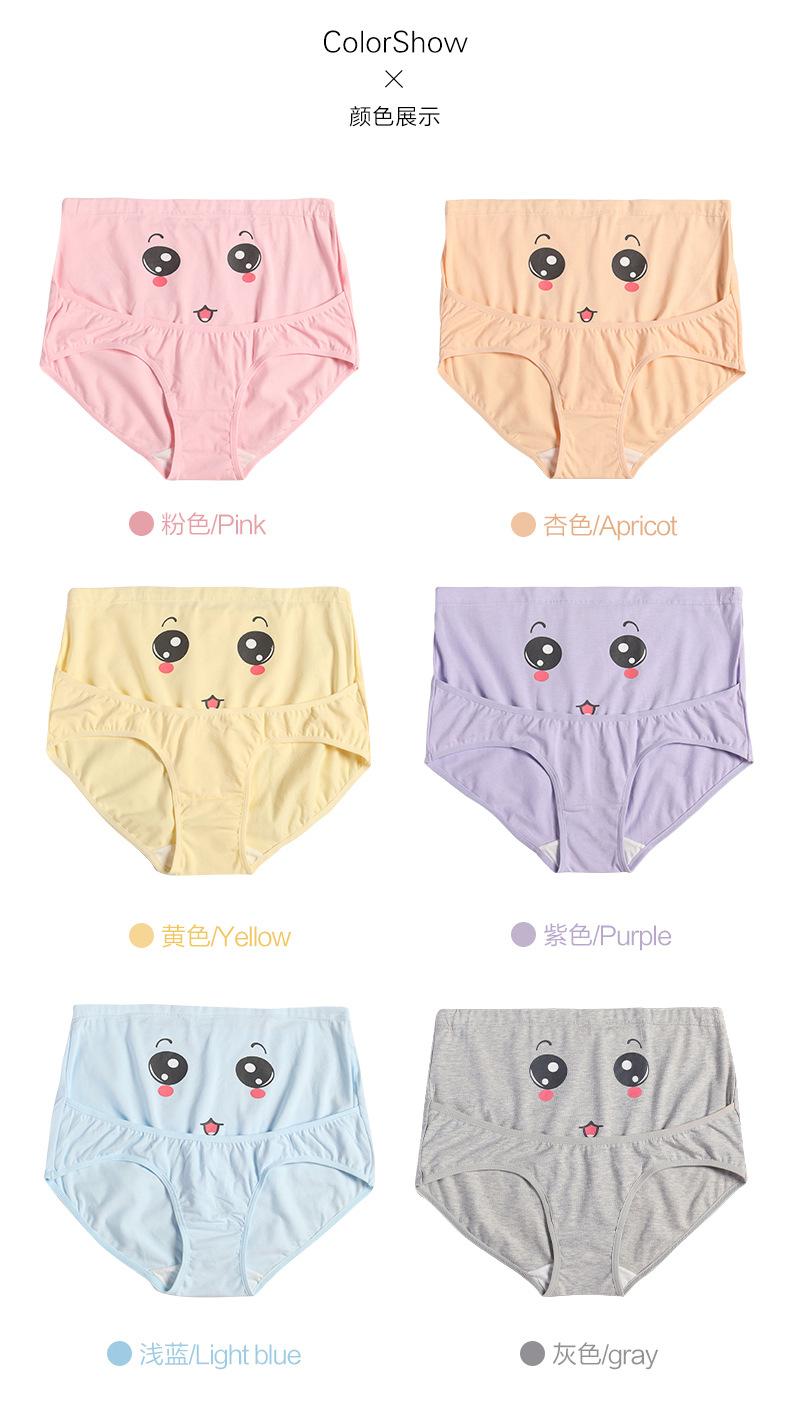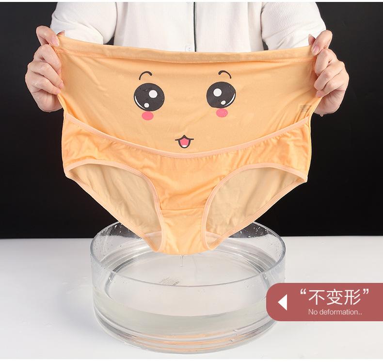 Ropa interior de cintura alta para embarazadas, de algodón con estampado de caritas, ajustable en el abdomen, a la moda, bonita