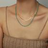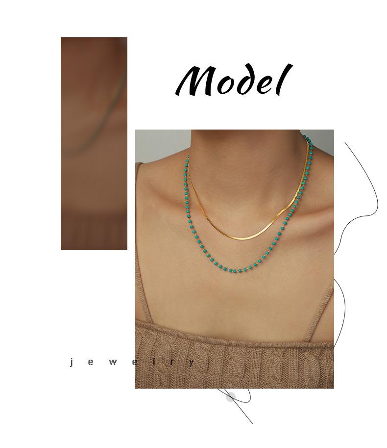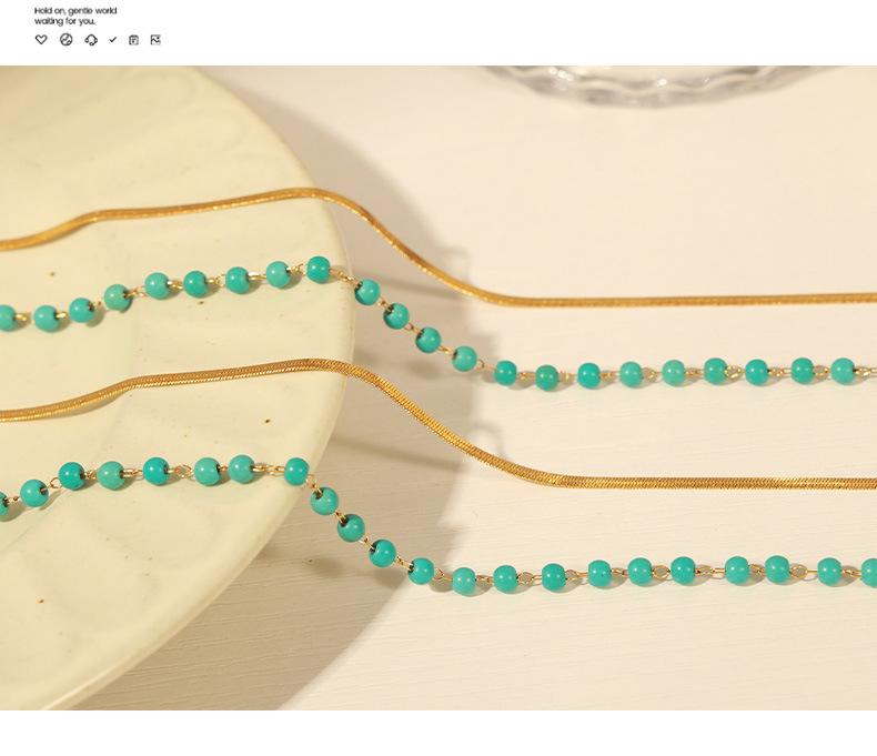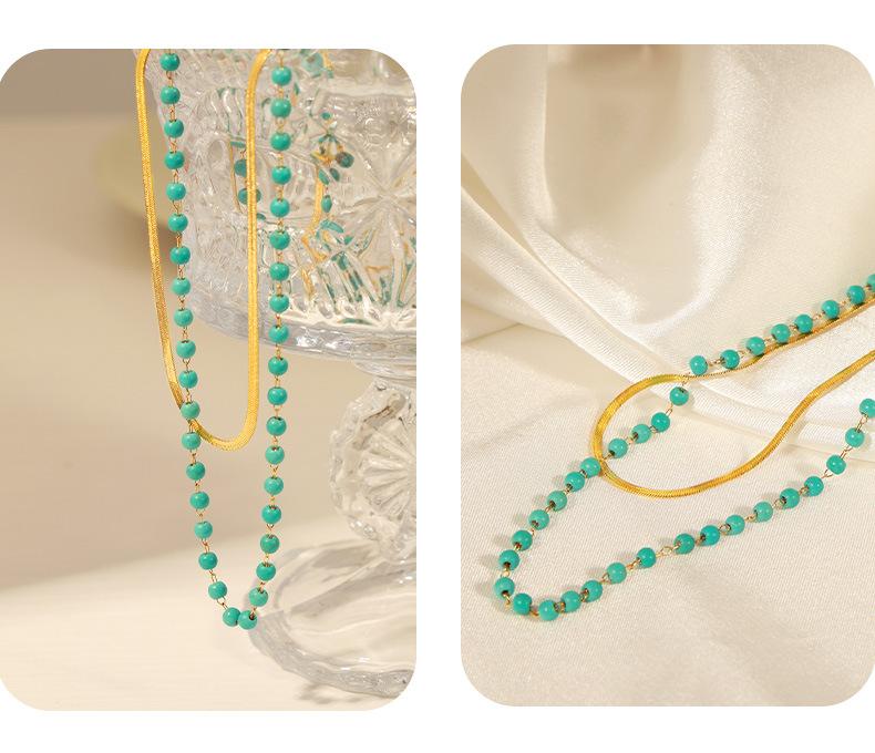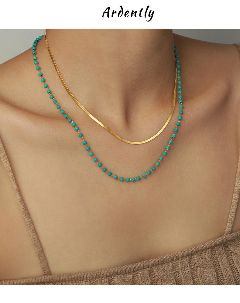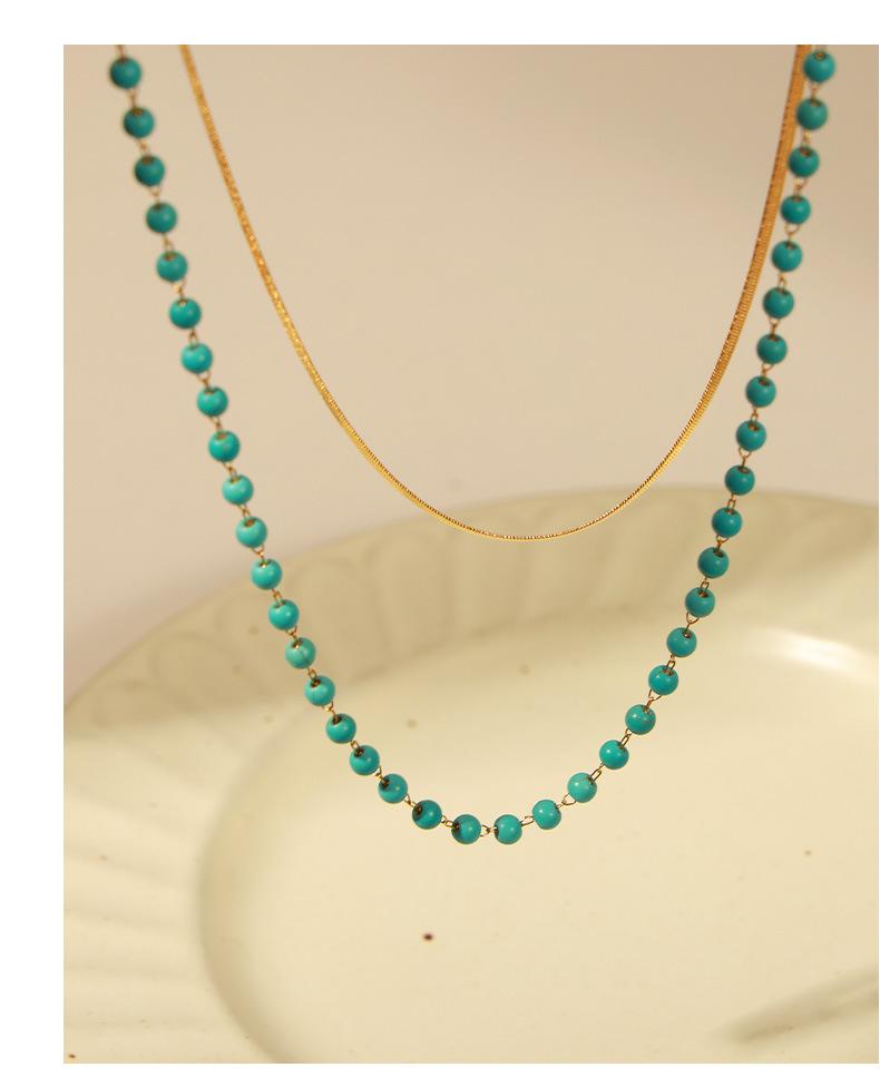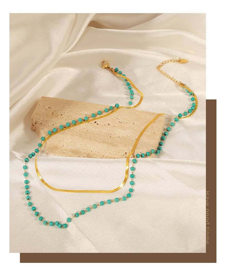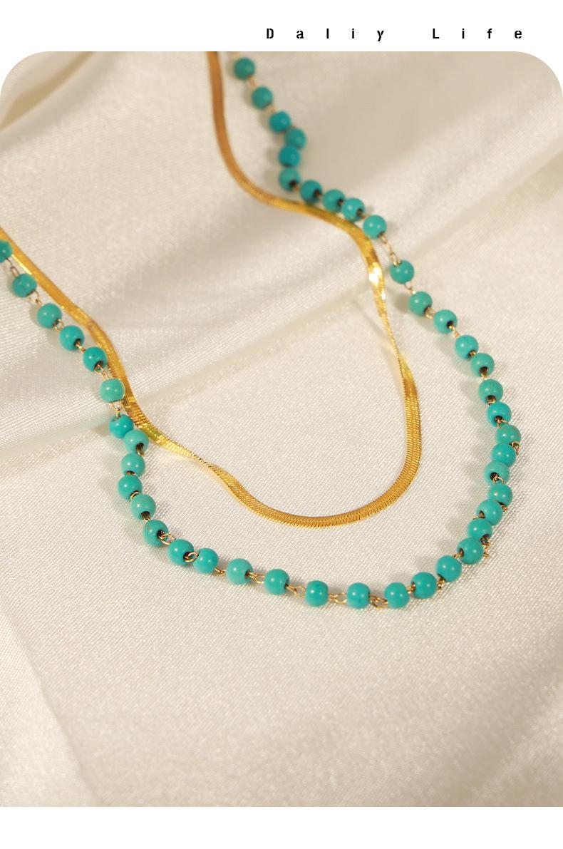 Nuevo Diseño de Personalidad de Moda Versátil Acero Titanio Chapado en Oro Turquesa Natural Hecho a Mano con Cuentas Collar de Doble Capa Joyería para Mujer
