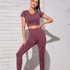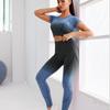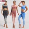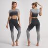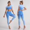 Traje de yoga sin costuras con degradado para mujer, transpirable, de secado rápido, con mallas, pantalones, camiseta de manga corta, traje deportivo para correr y fitness.