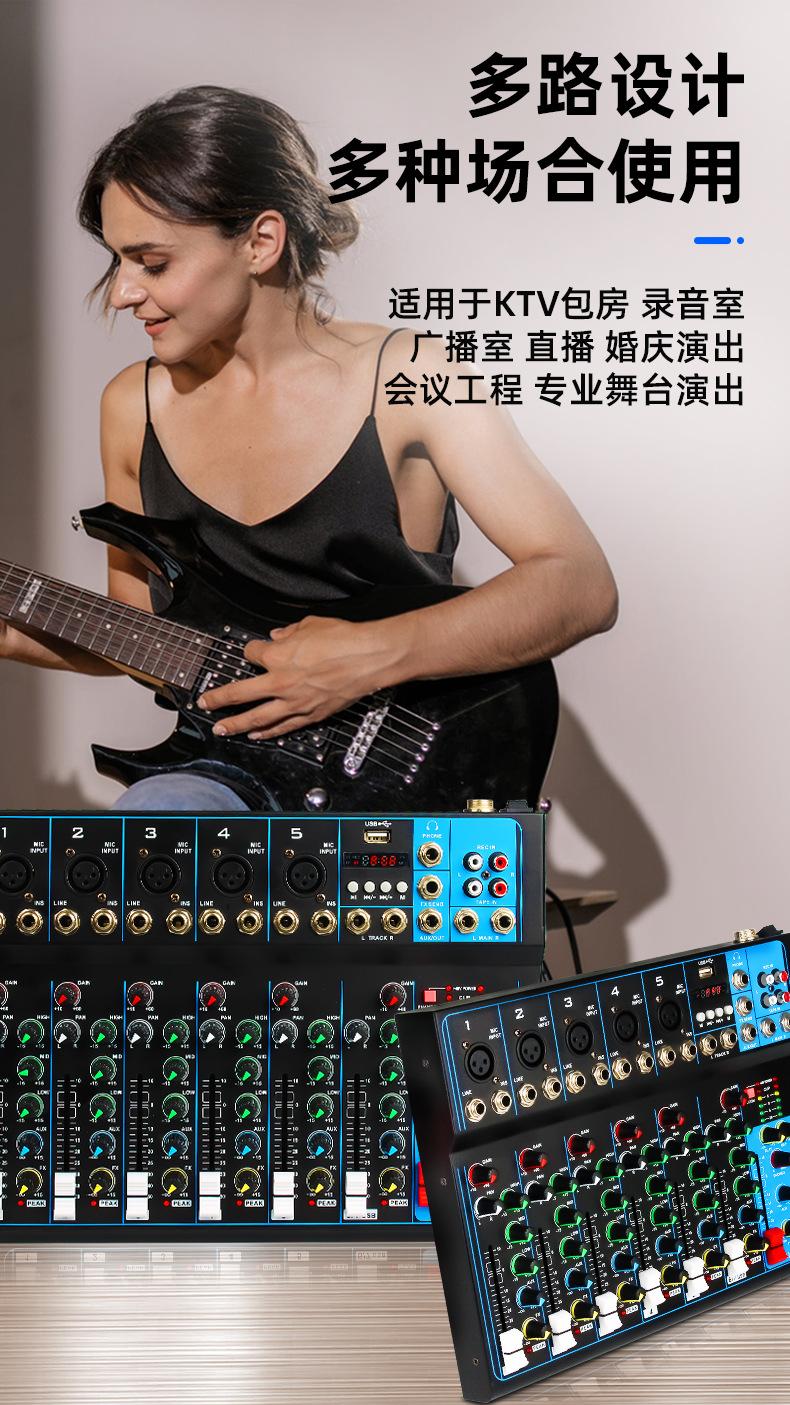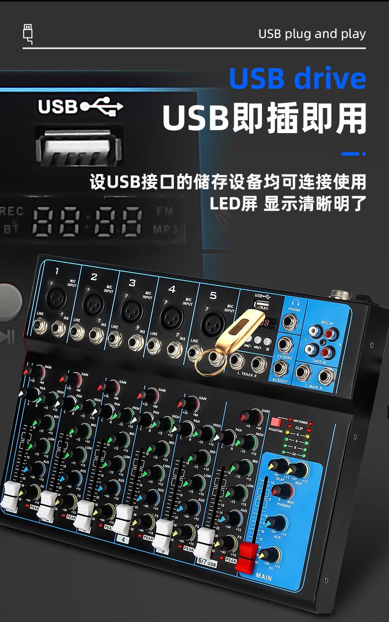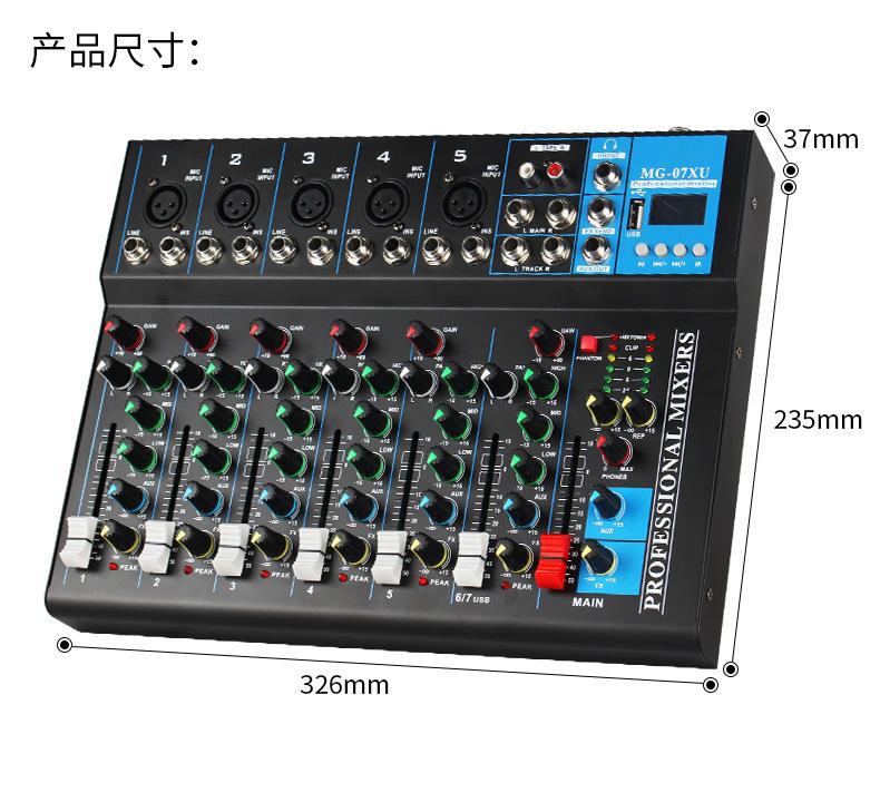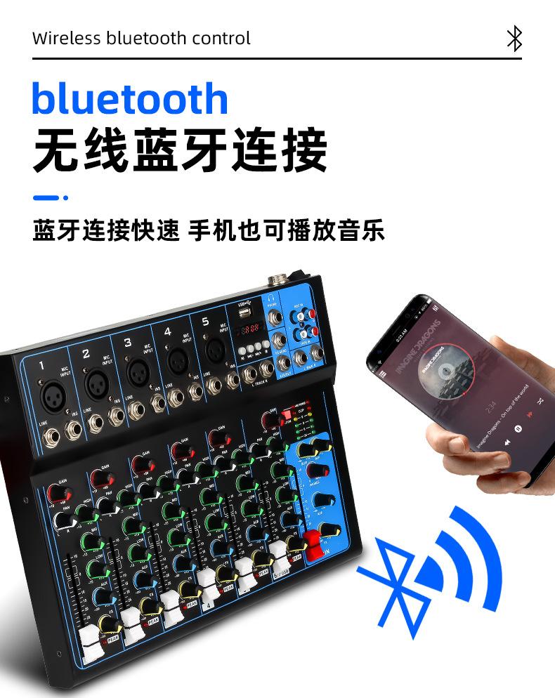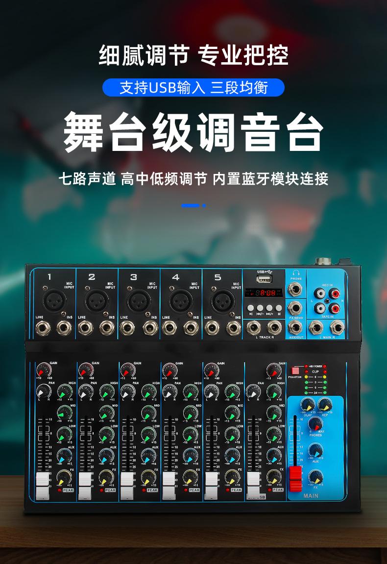 Mezclador de 7 canales transfronterizo Profesional de escenario para canto Audio Equipo de transmisión en vivo Bluetooth USB Monitoreo Afinación Mezclador Dj