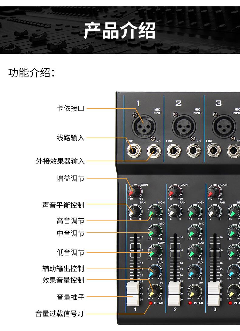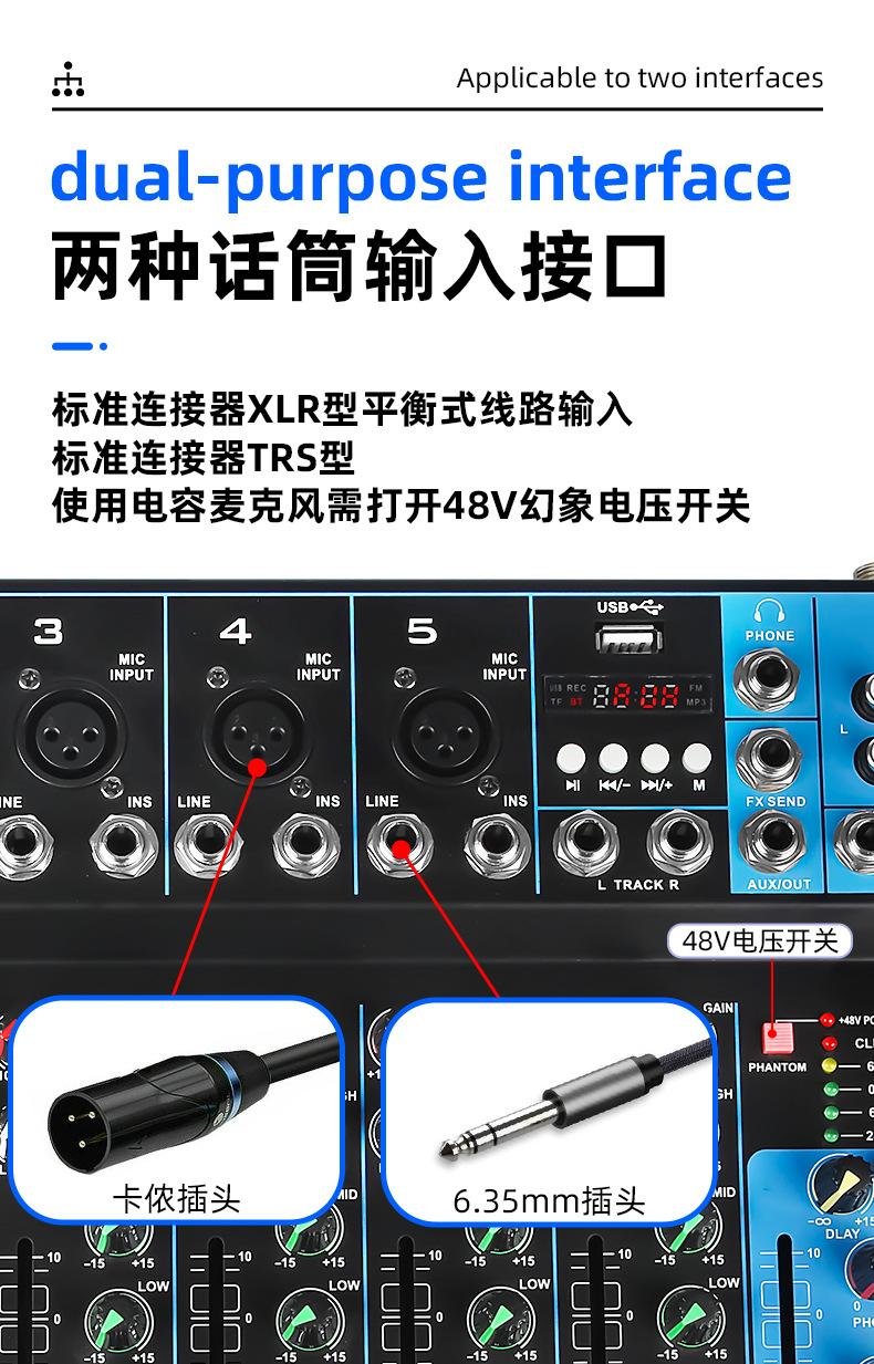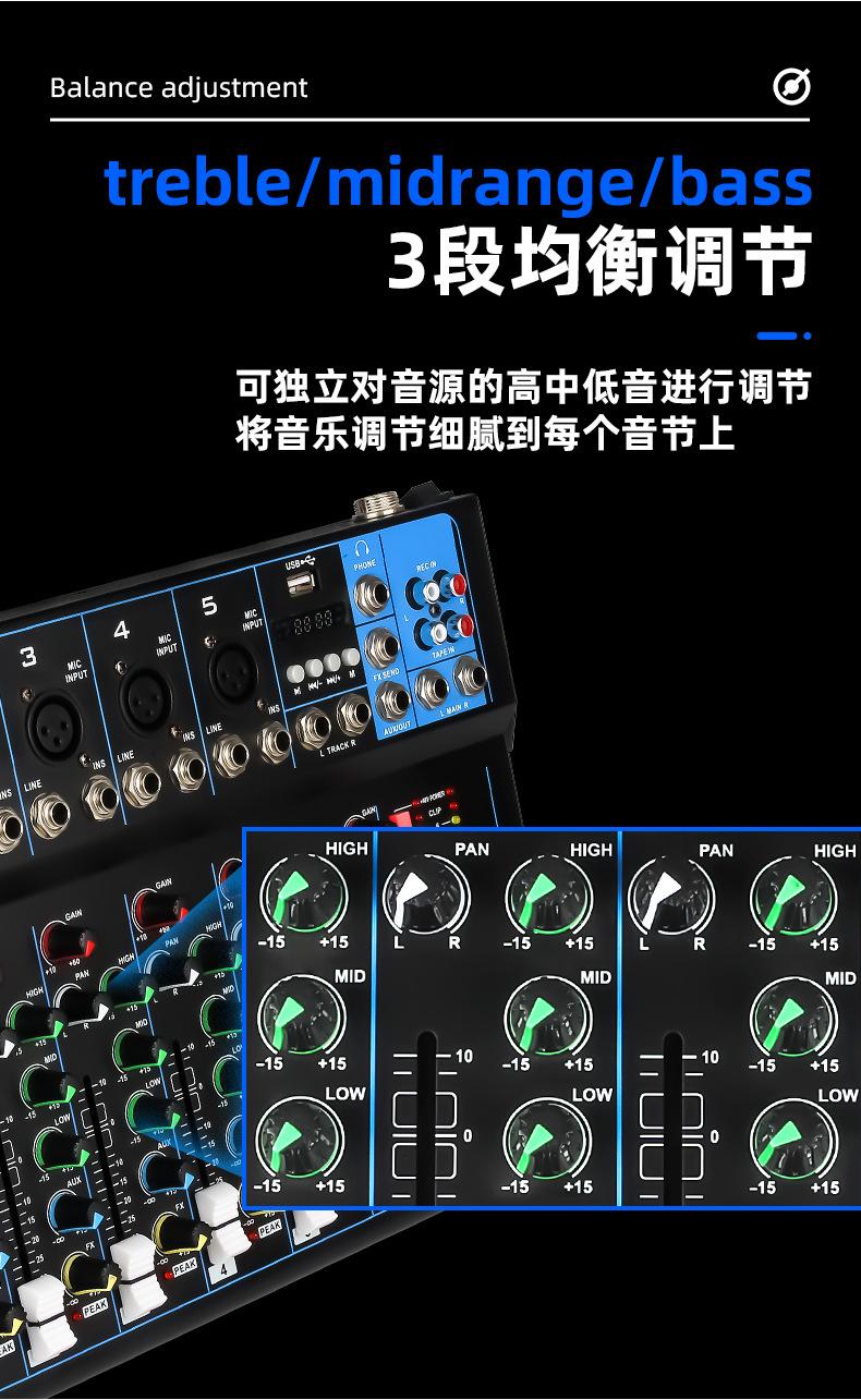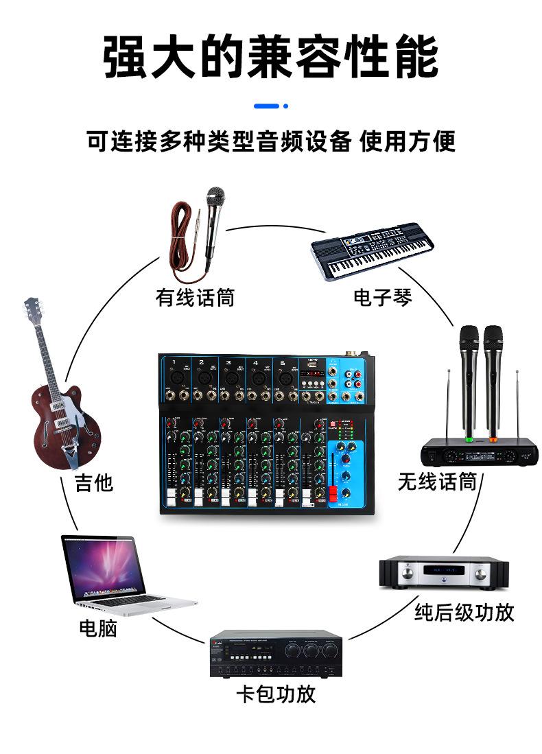 Mezclador de 7 canales transfronterizo Profesional de escenario para canto Audio Equipo de transmisión en vivo Bluetooth USB Monitoreo Afinación Mezclador Dj