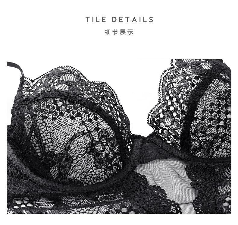Sujetador transparente ultrafino de encaje sexy sin esponja, ropa interior para mujer, conjunto de sujetador pequeño con pechos grandes