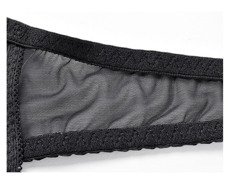 Conjunto de sujetador de media copa, sexy, de encaje, ultrafino, transparente, sin relleno