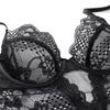 Conjunto de sujetador sexy con escote en V profundo y push up para mujer, ropa interior con liguero