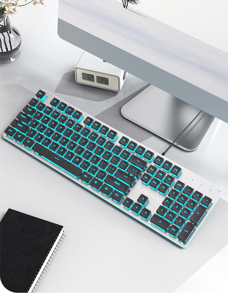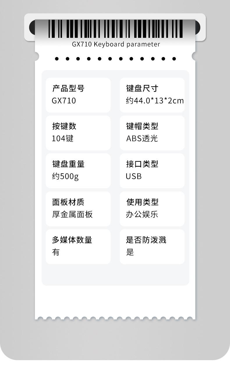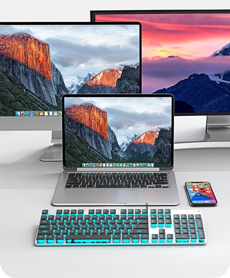 Teclado Forerunner GX710 con sensación mecánica real, portátil, con luz blanca, con cable, para juegos, oficina, ordenador portátil, universal