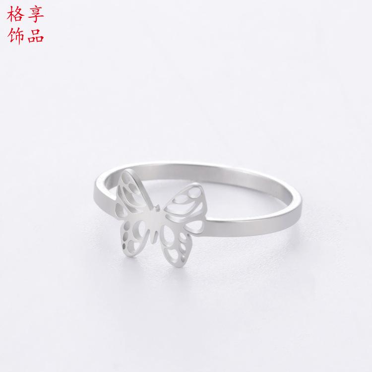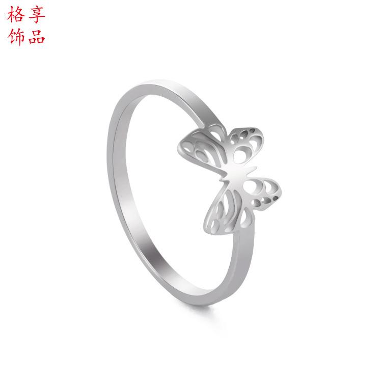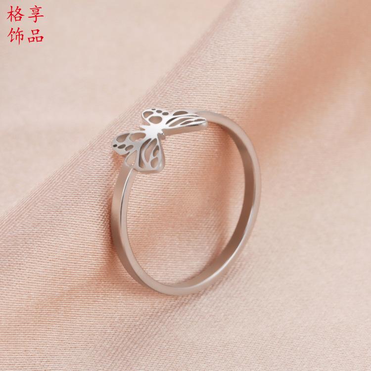 AliExpress Venta Caliente Anillo de Mariposa Hueco de Acero Inoxidable Estilo Fresco Pequeño Anillo para Mujer Regalo de Vacaciones