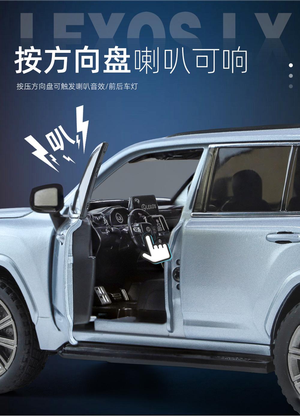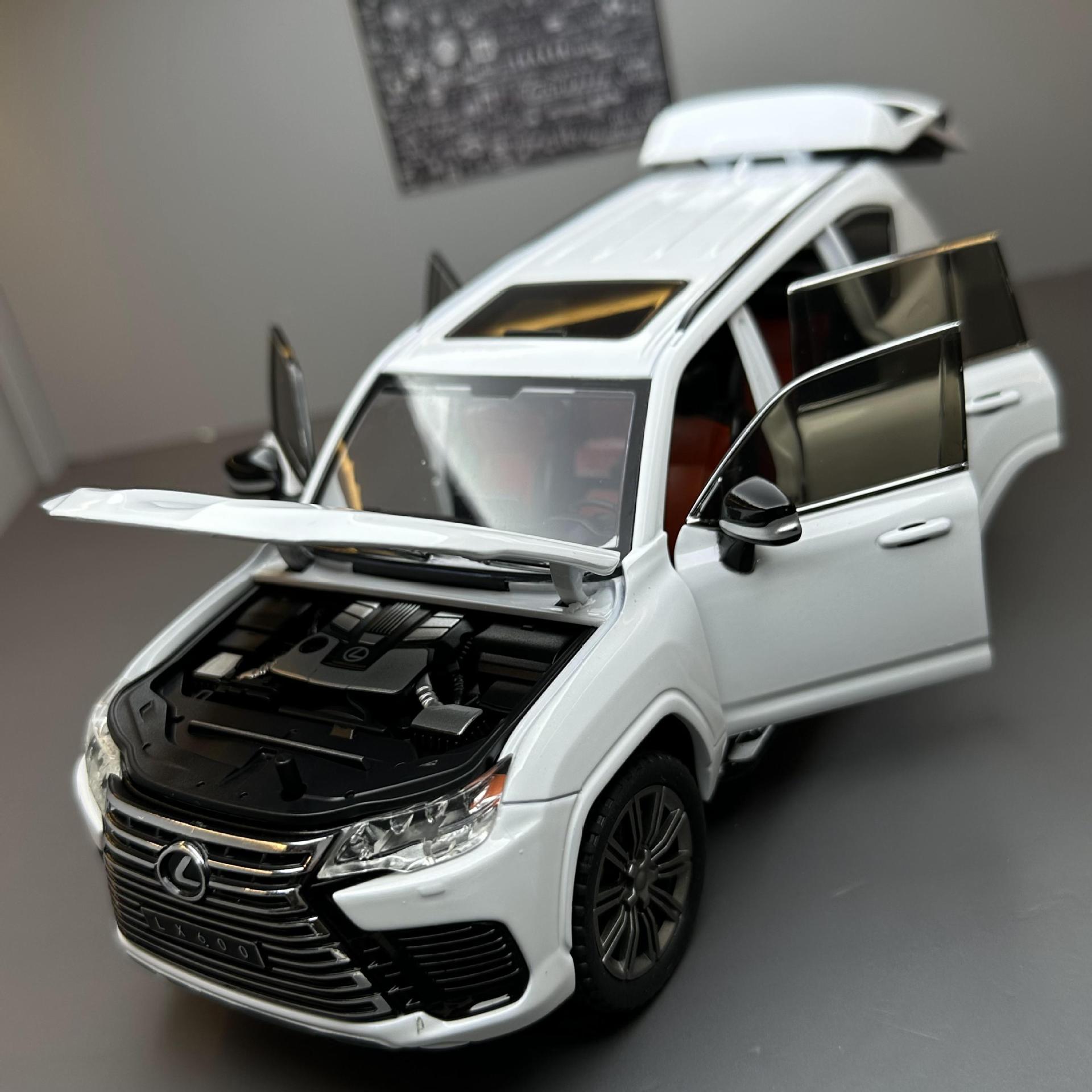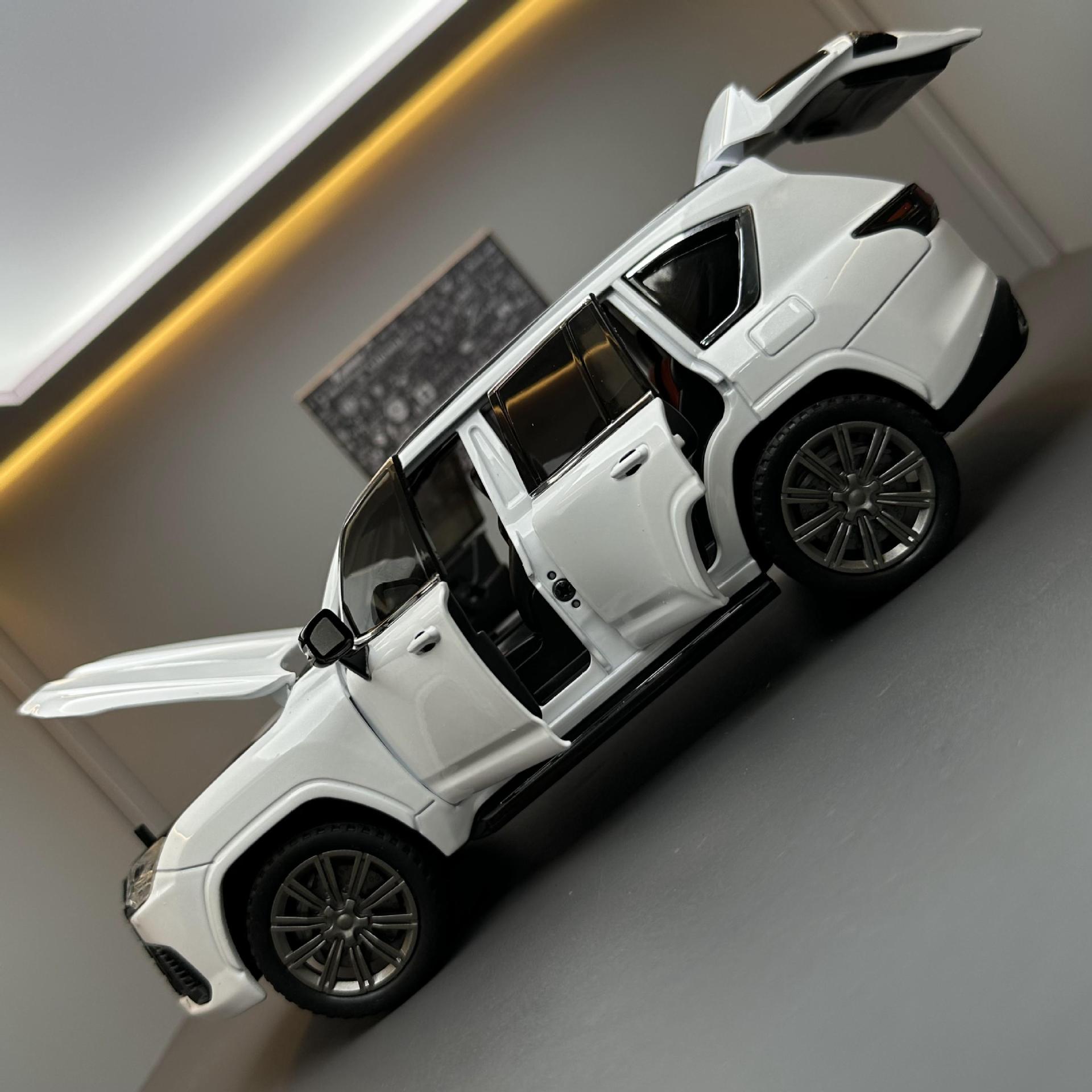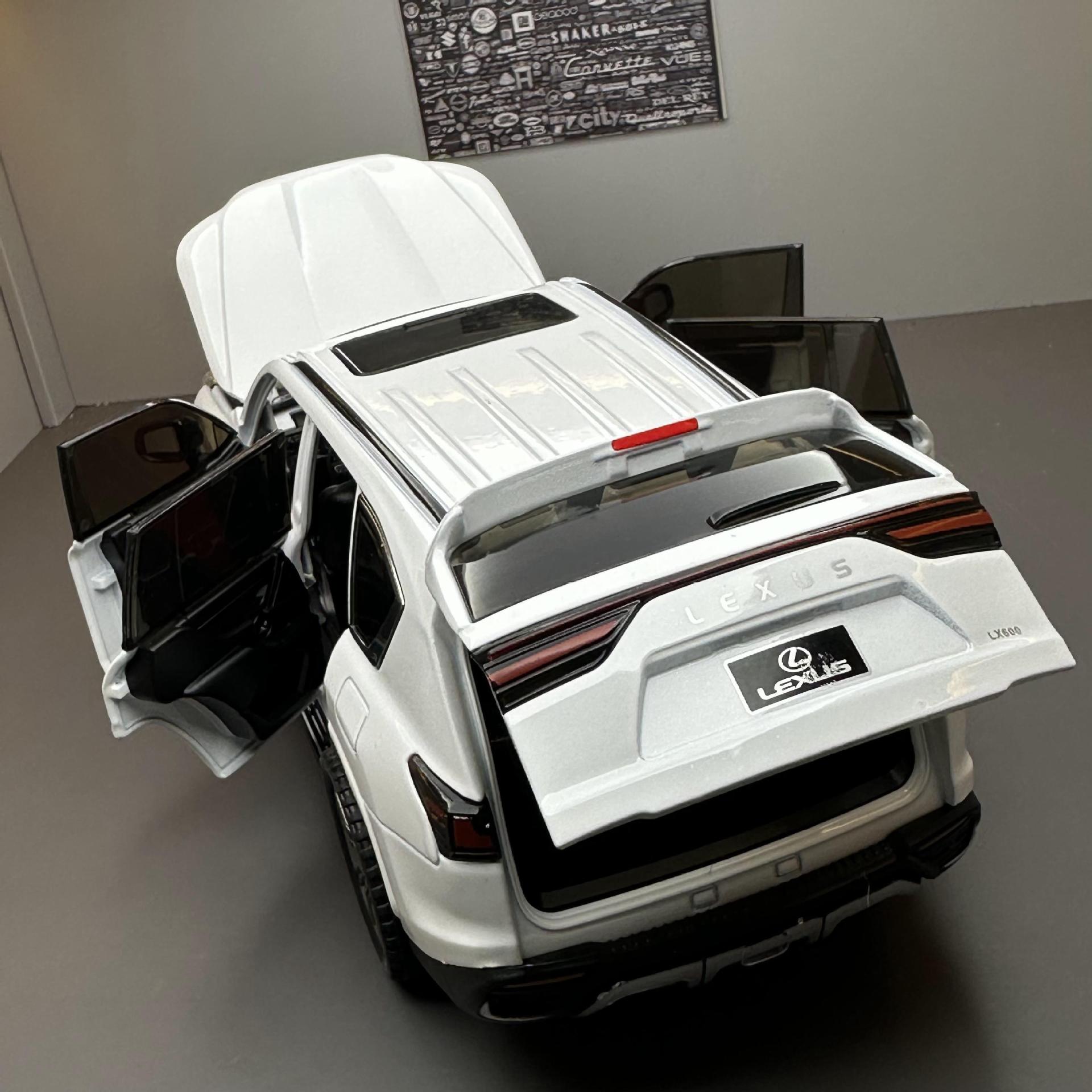 Coche de aleación Chimei Modelo 1: Vehículo todoterreno Lecker LX600 de 24 pulgadas con sonido y luz, modelo de coche de juguete con música y adornos.