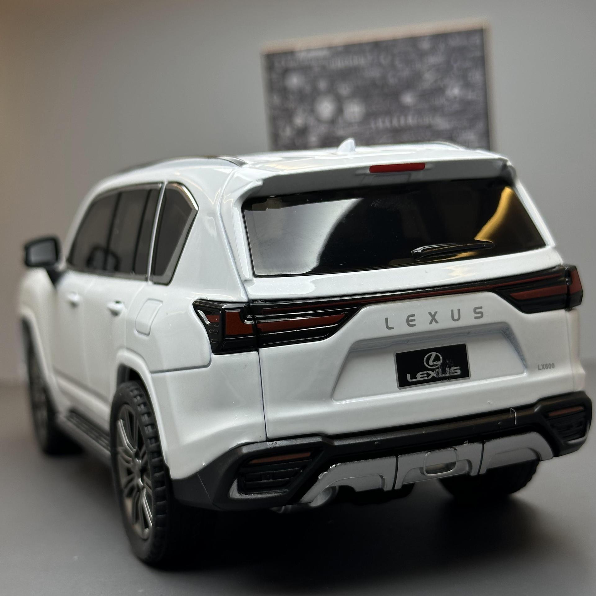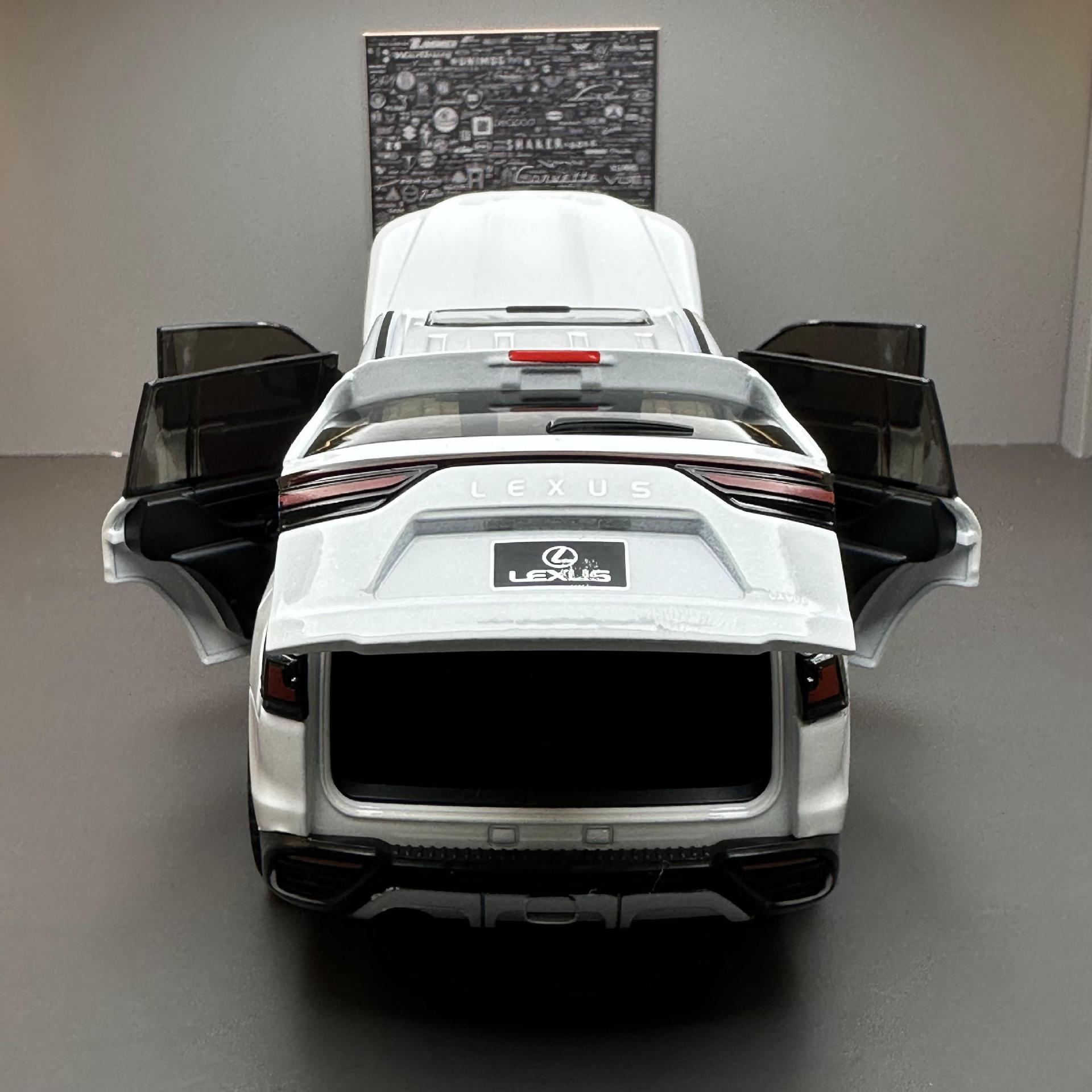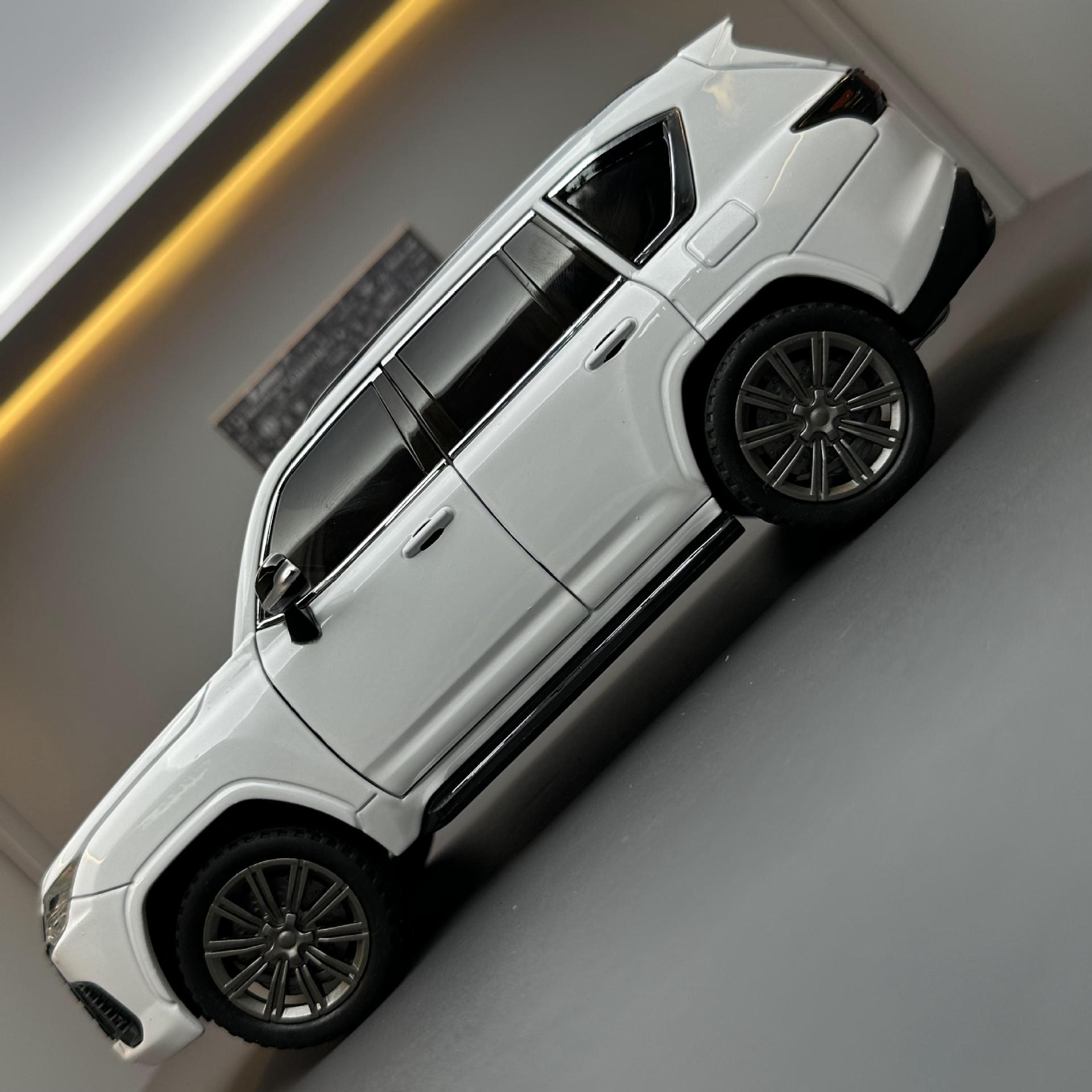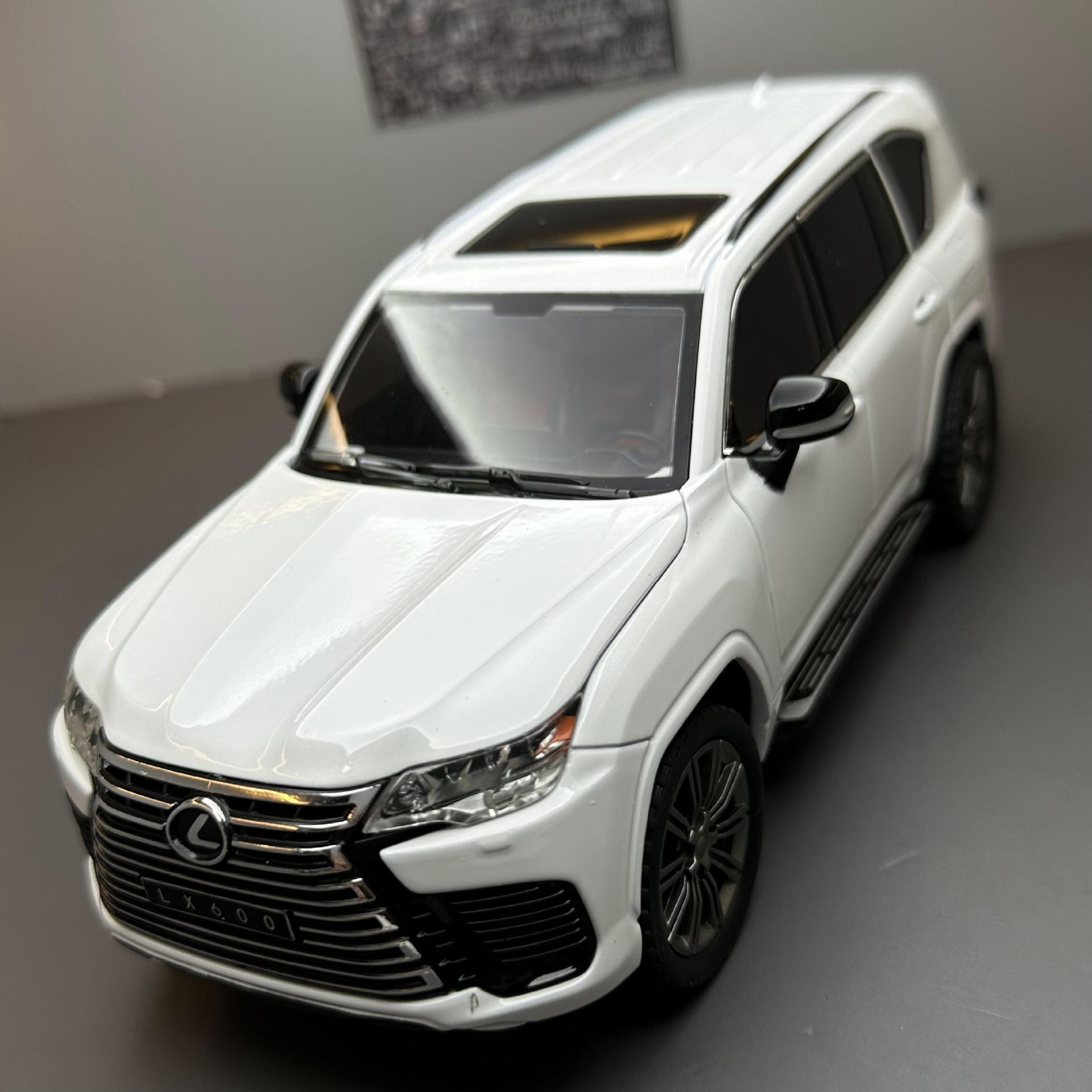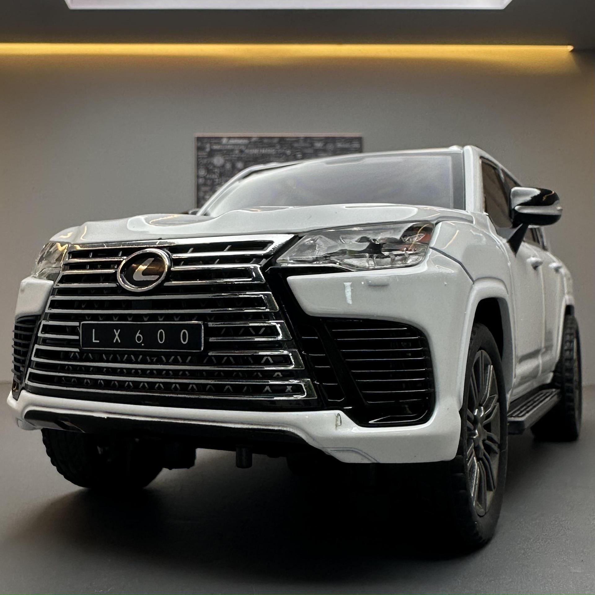 Coche de aleación Chimei Modelo 1: Vehículo todoterreno Lecker LX600 de 24 pulgadas con sonido y luz, modelo de coche de juguete con música y adornos.