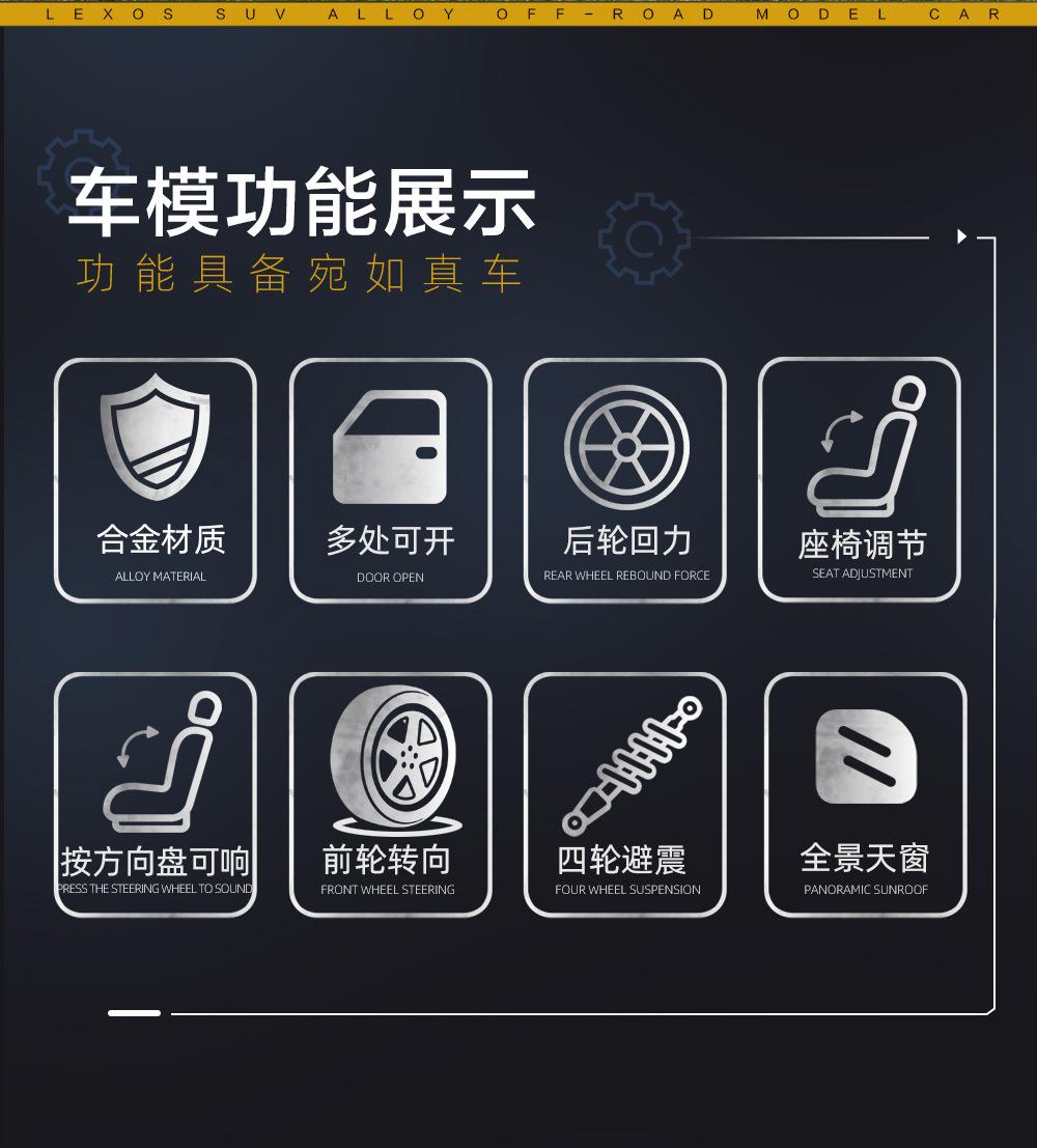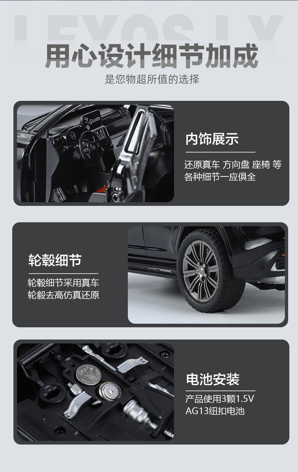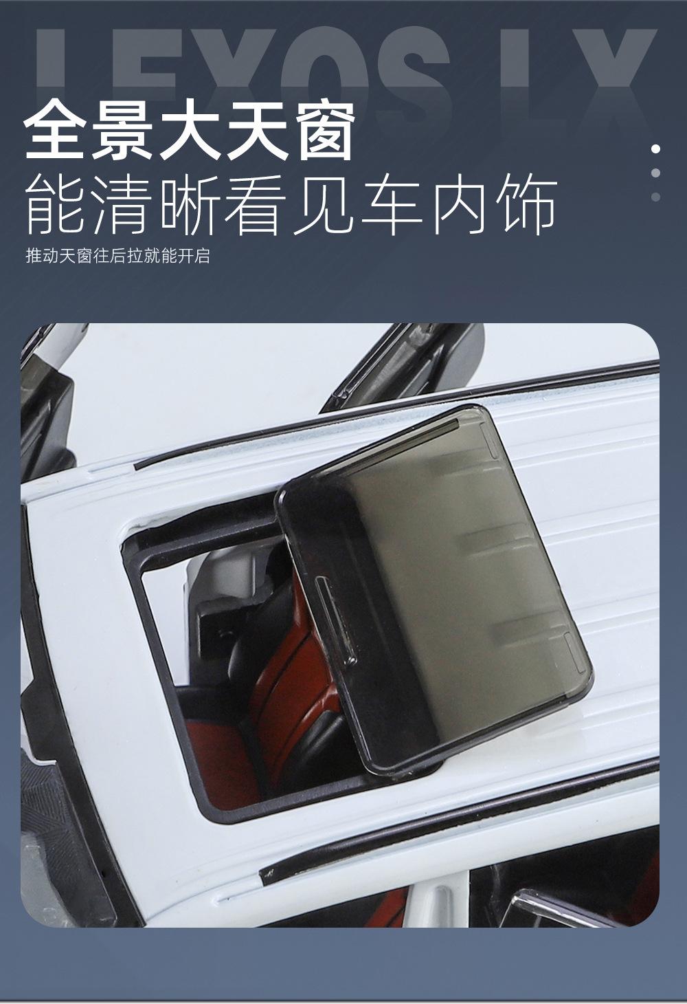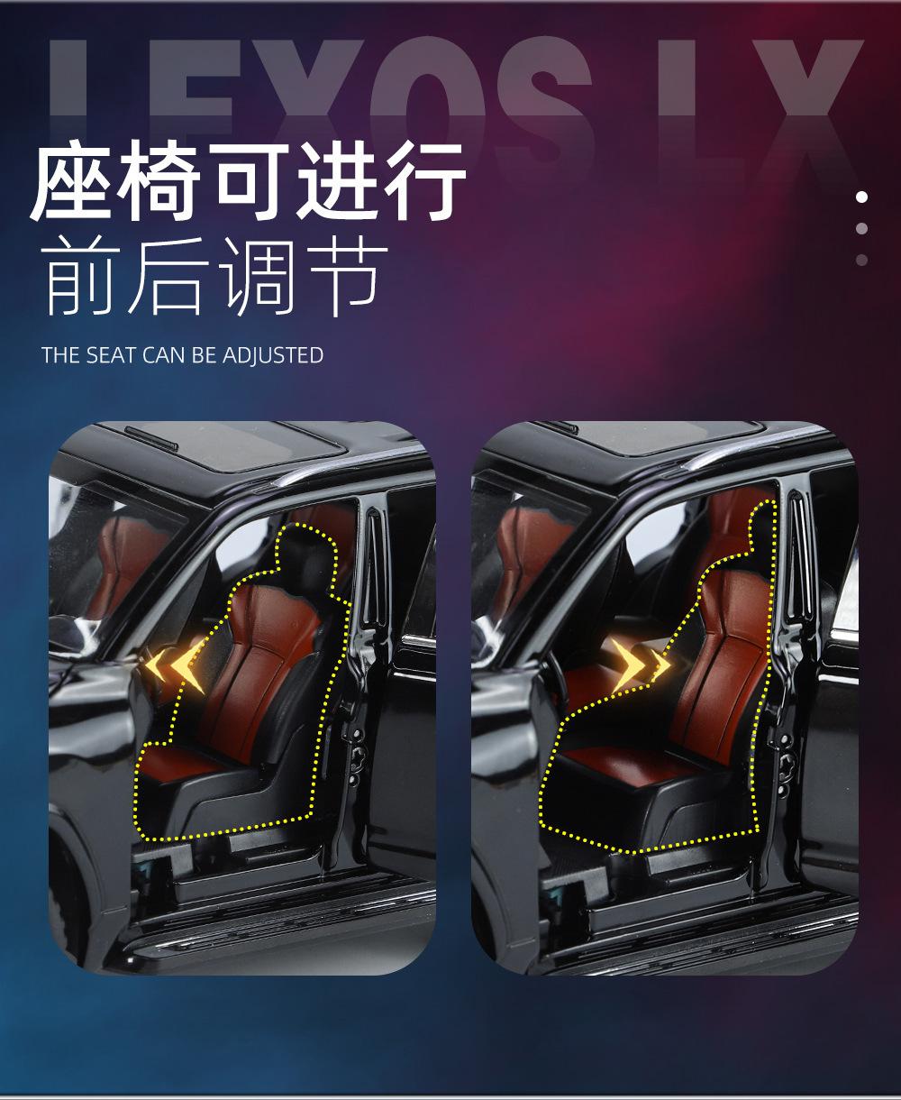 Coche de aleación Chimei Modelo 1: Vehículo todoterreno Lecker LX600 de 24 pulgadas con sonido y luz, modelo de coche de juguete con música y adornos.