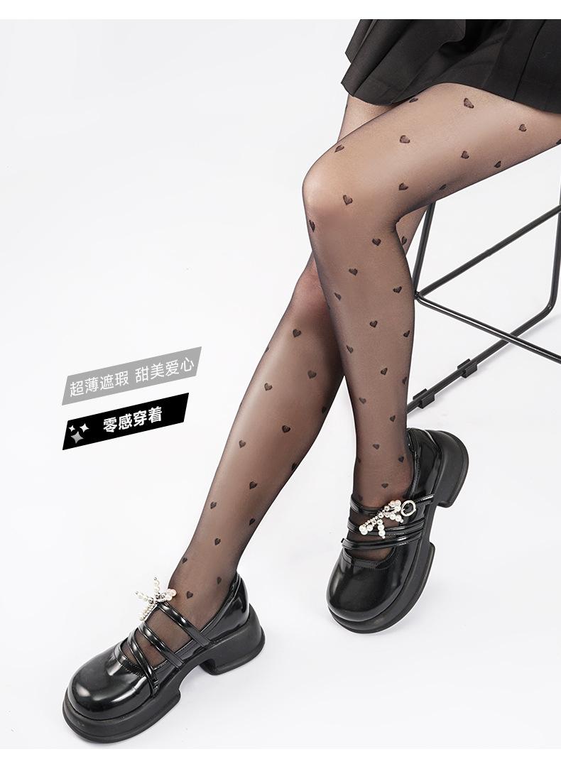 8D black silk love stockings, 0016-Love Heart-Code S, 0016-Love-L Code, 0016-Love-XXL Code