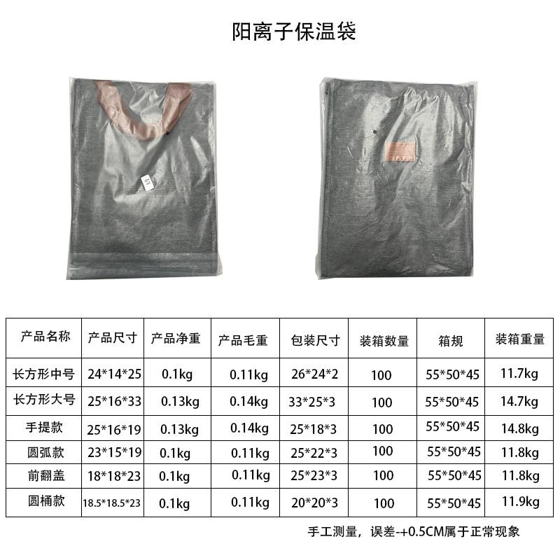 Cationic lunch bag (23*13*19)-arc, Cationic lunch bag (25*16*19) portable, Cationic lunch bag (18.5*18.5*23) b...
