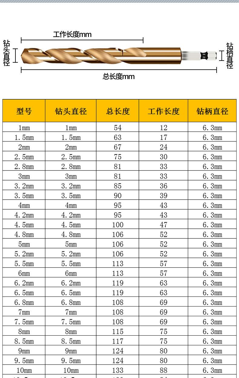 Broca helicoidal de cobalto con mango hexagonal, herramienta de perforación especial de acero inoxidable de alta dureza, taladro para agujeros de metal con rectificado completo