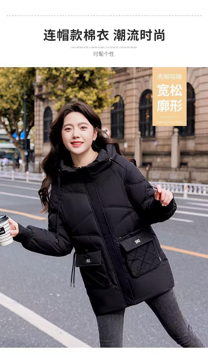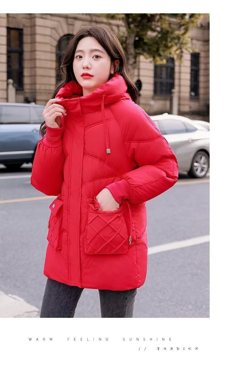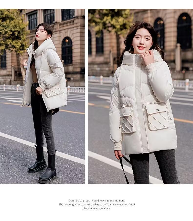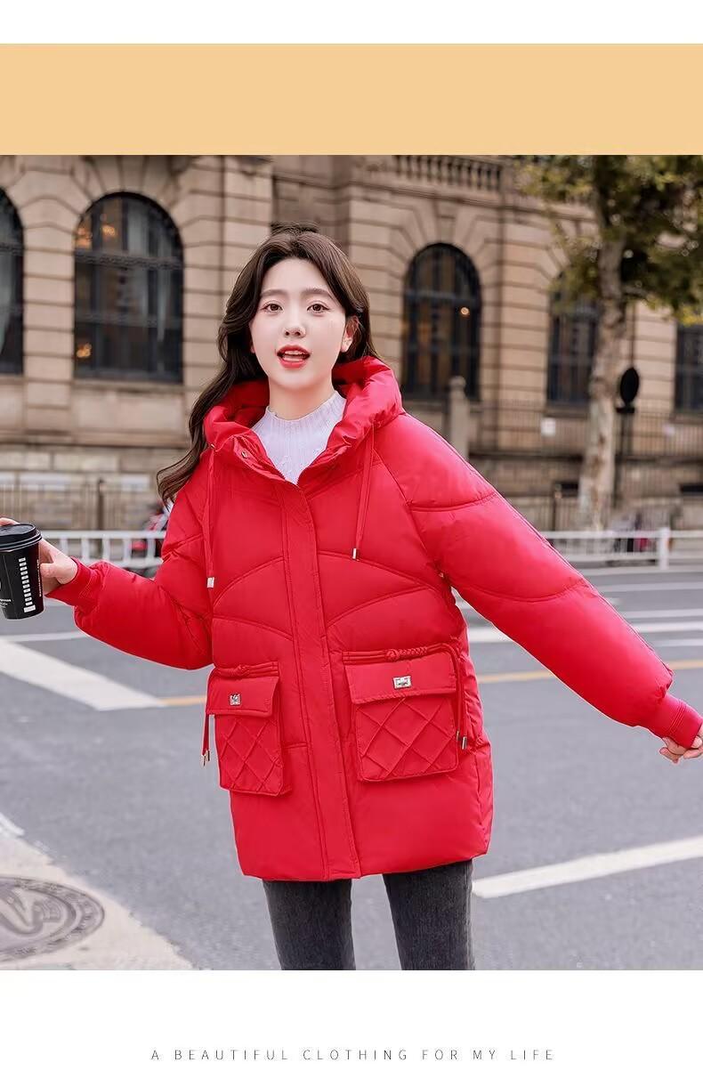 Ropa de plumón para mujer ropa de invierno nueva de longitud media estilo coreano holgada adelgazante ropa de invierno abrigo acolchado de algodón con capucha grueso a la moda