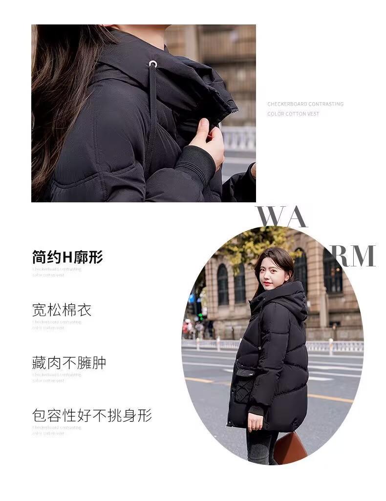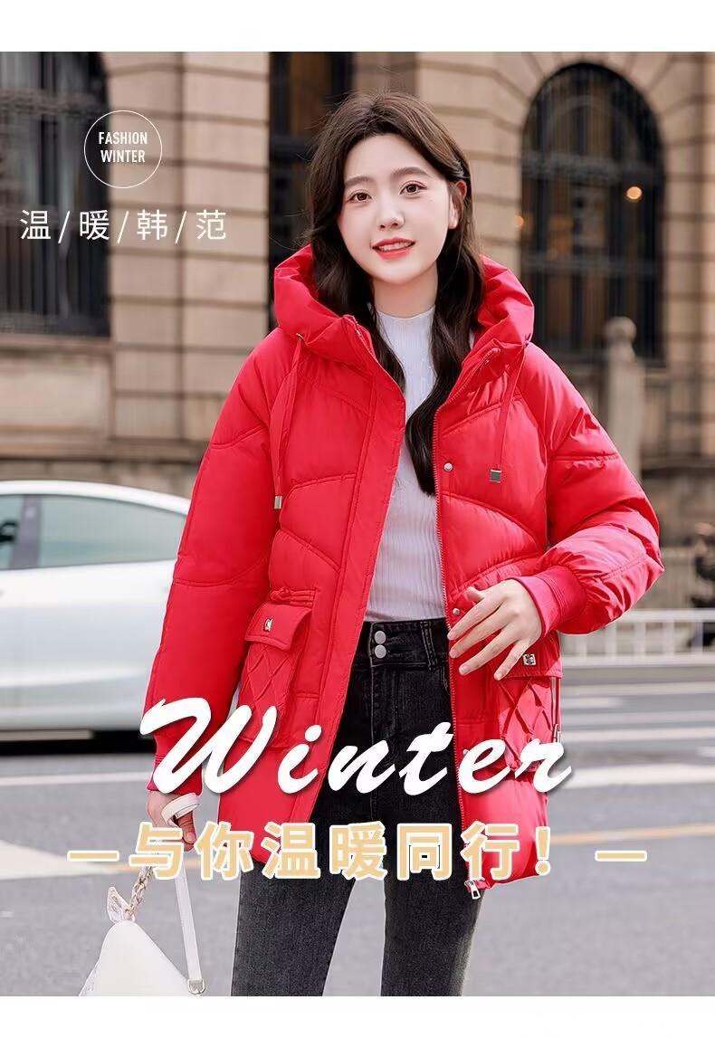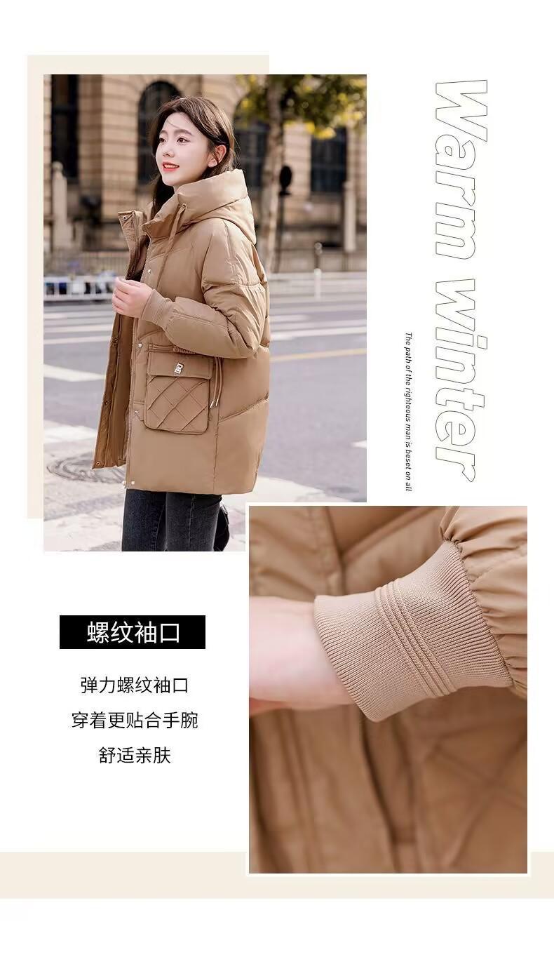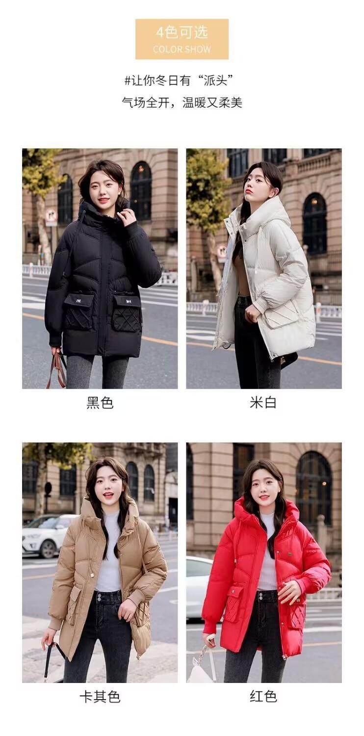 Ropa de plumón para mujer ropa de invierno nueva de longitud media estilo coreano holgada adelgazante ropa de invierno abrigo acolchado de algodón con capucha grueso a la moda