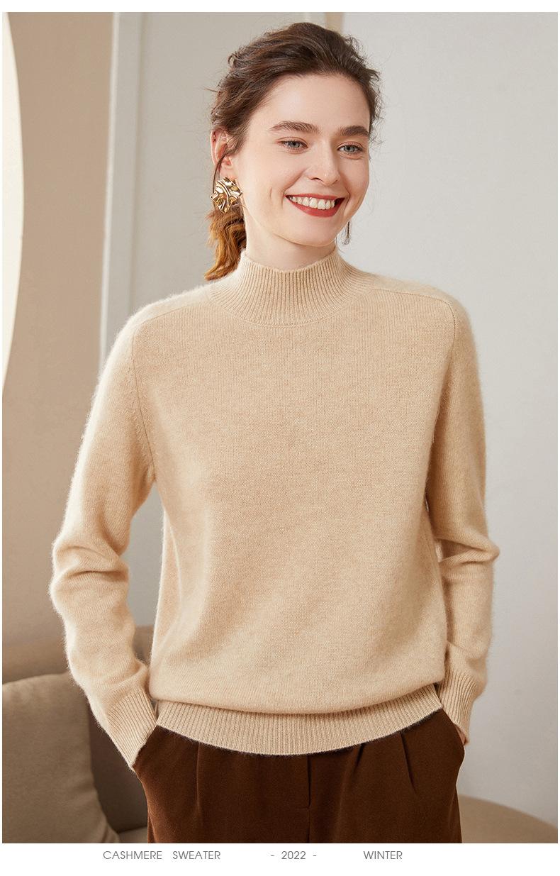 Suéter de cachemira grueso de cuello alto para mujer, jersey de cachemira holgado de color sólido, camisa de punto, otoño e invierno, nuevo