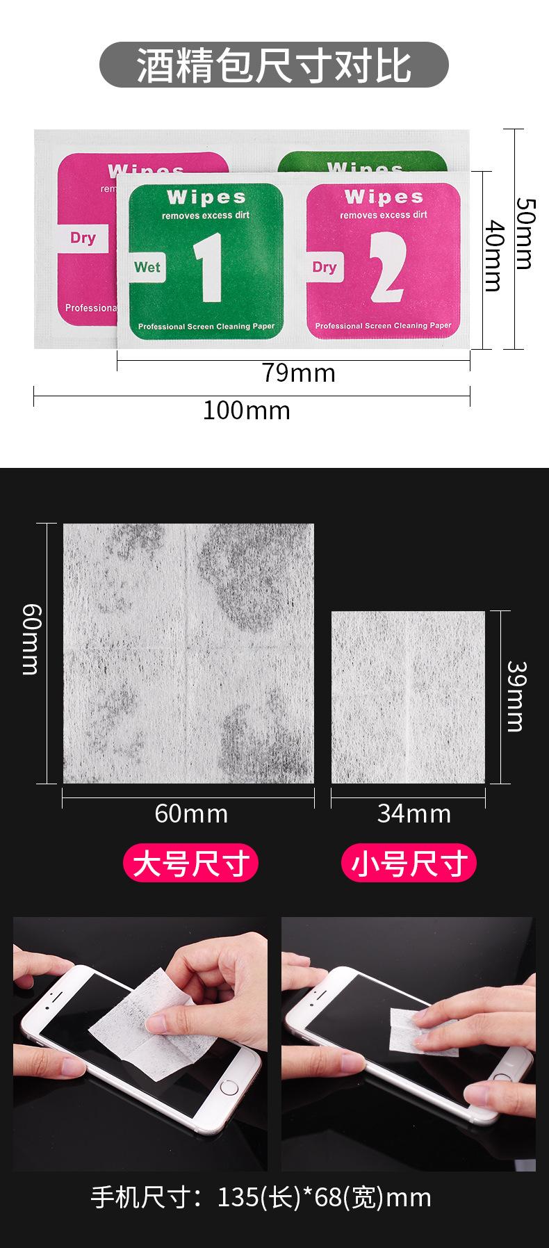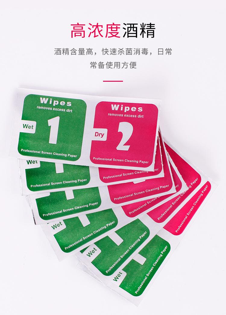 Película templada para teléfono móvil, limpieza de película, alcohol, algodón, desechable, portátil, desinfección, bolsa seca y húmeda, kit de bolsa de alcohol