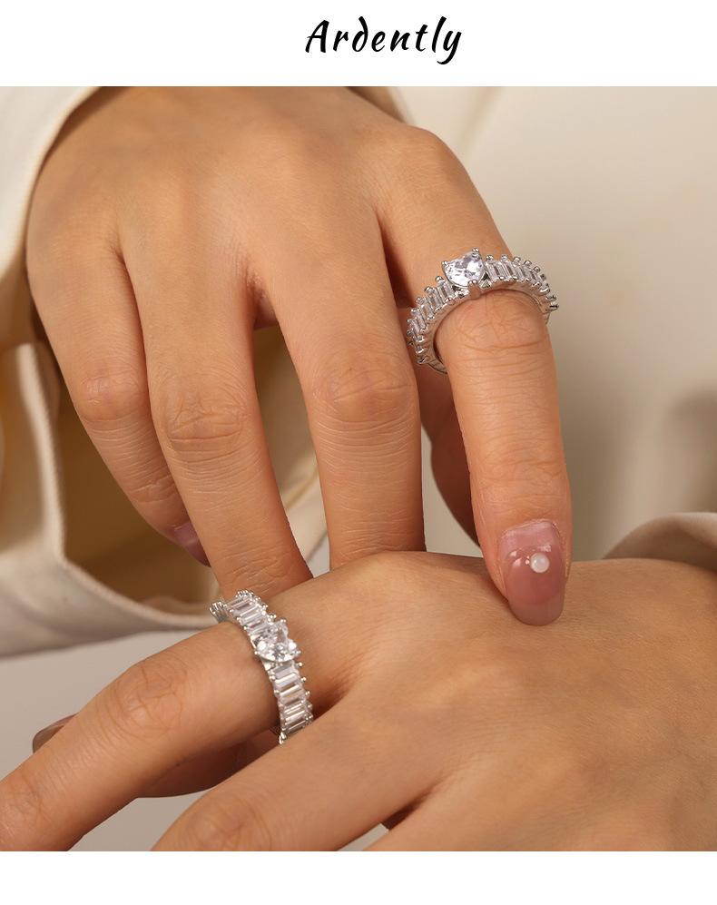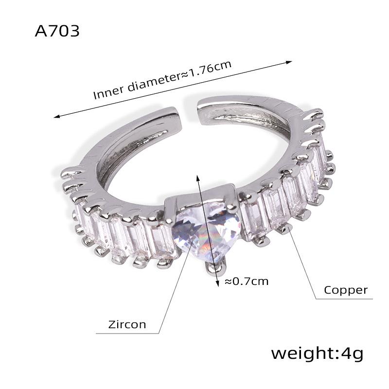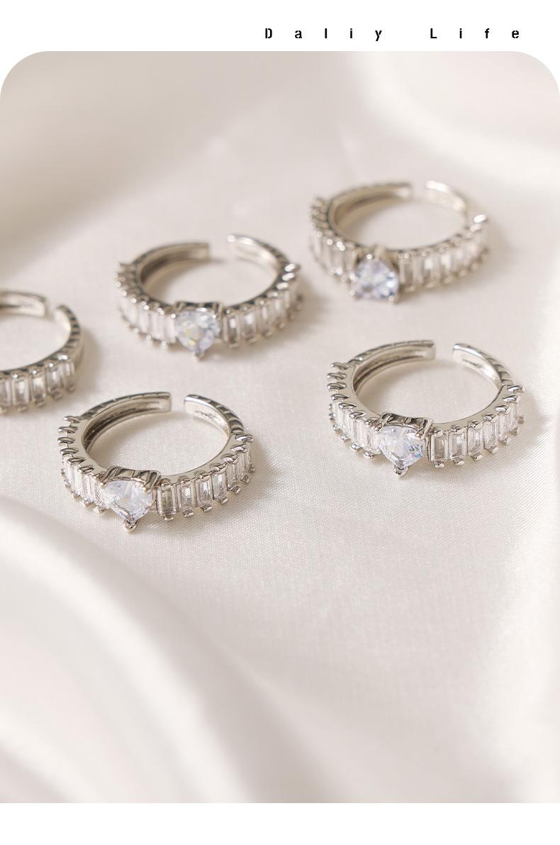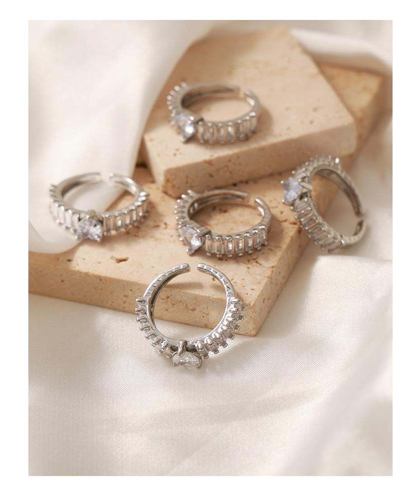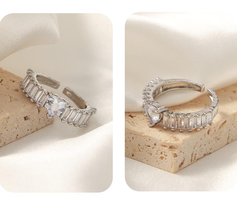Estilo Coreano Simple Personalidad Elegante Nicho Joyería Geométrica Incrustada Zircón Diseño de Amor Sentido Material Cobre Anillo Abierto