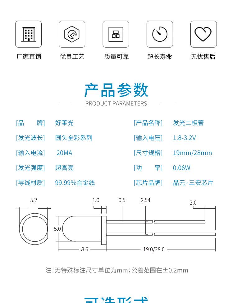 [Single Flash] F5/5mm Round Head Transparent Long and Short Feet
