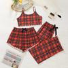 Pijama a cuadros de tres piezas para mujer, primavera y otoño, popular, nuevo, superventas, venta al por mayor, ropa para el hogar europea y americana.