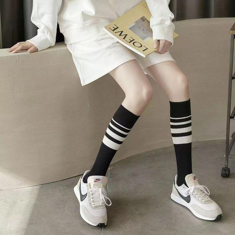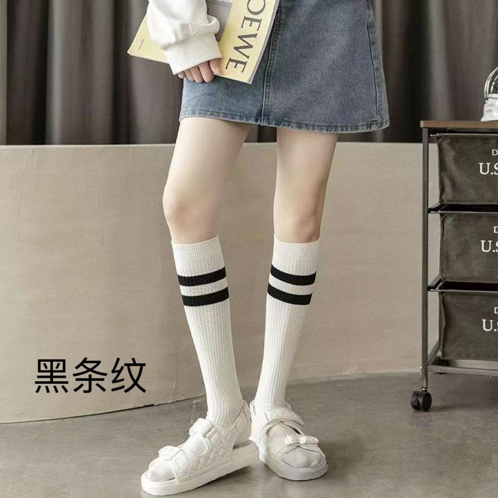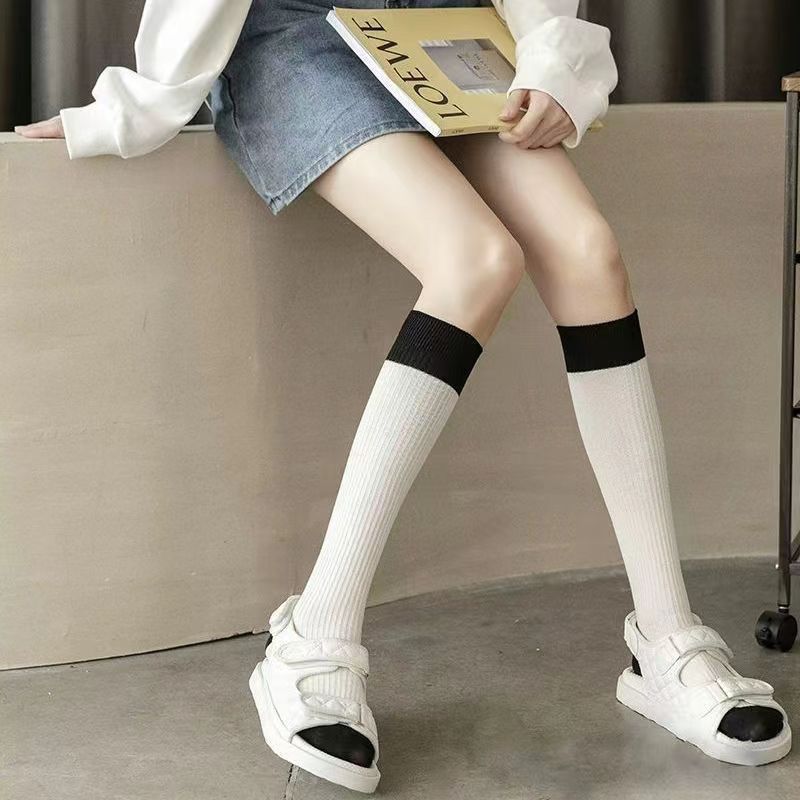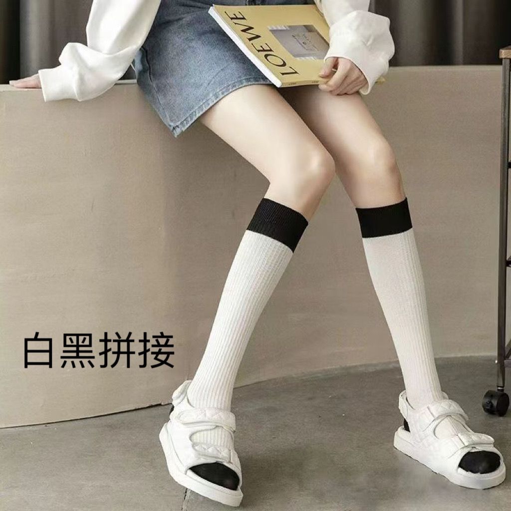 Calcetines de media para mujer Primavera y Verano Calcetines Japoneses Apilados Calcetines Largos Empalmados en Color Blanco y Negro Estilo Universitario Ins Calcetines de Estudiante JK