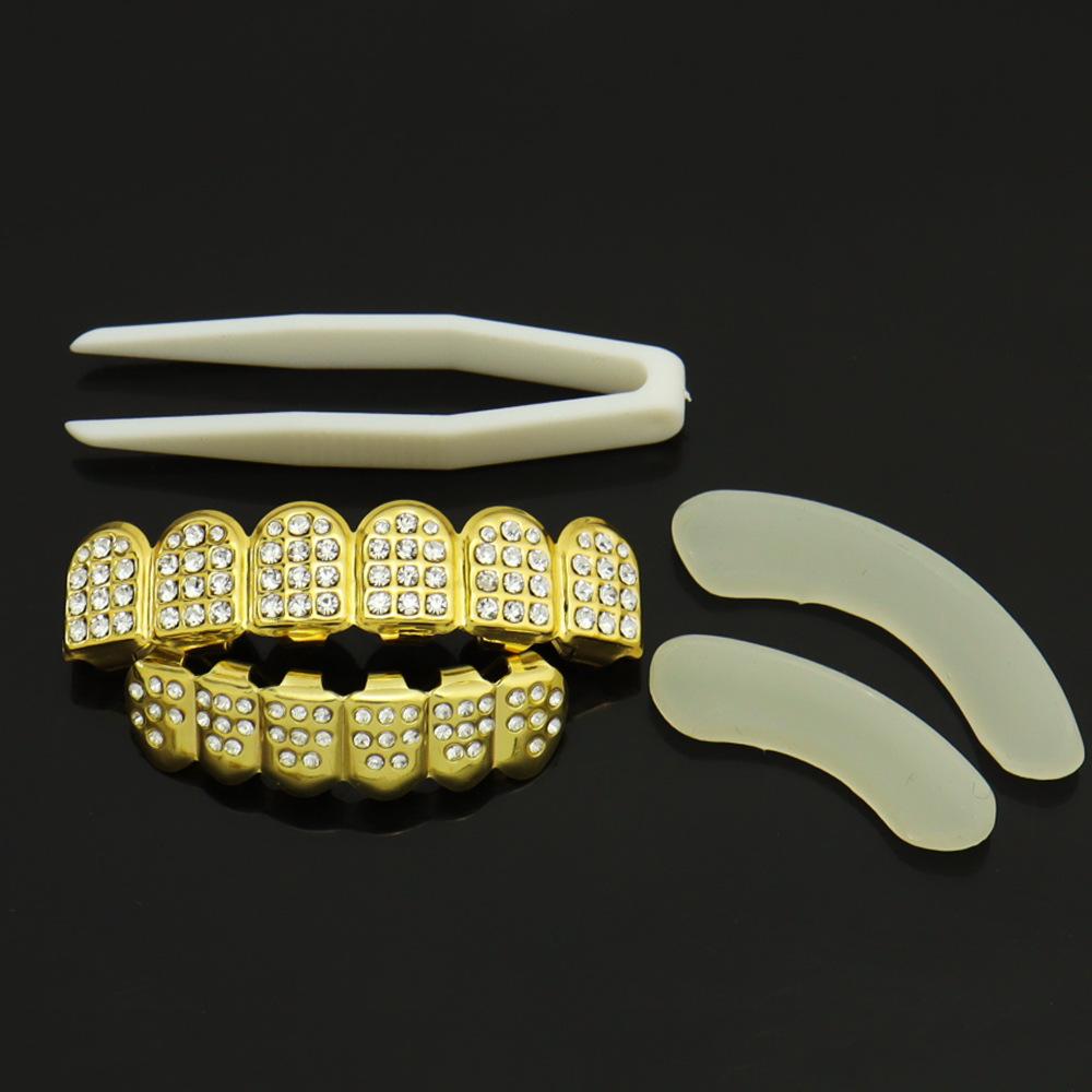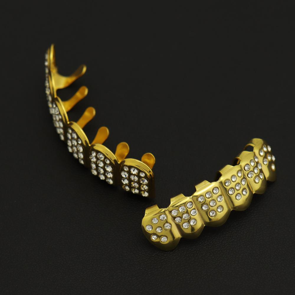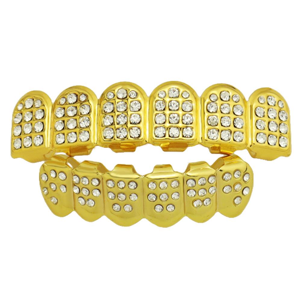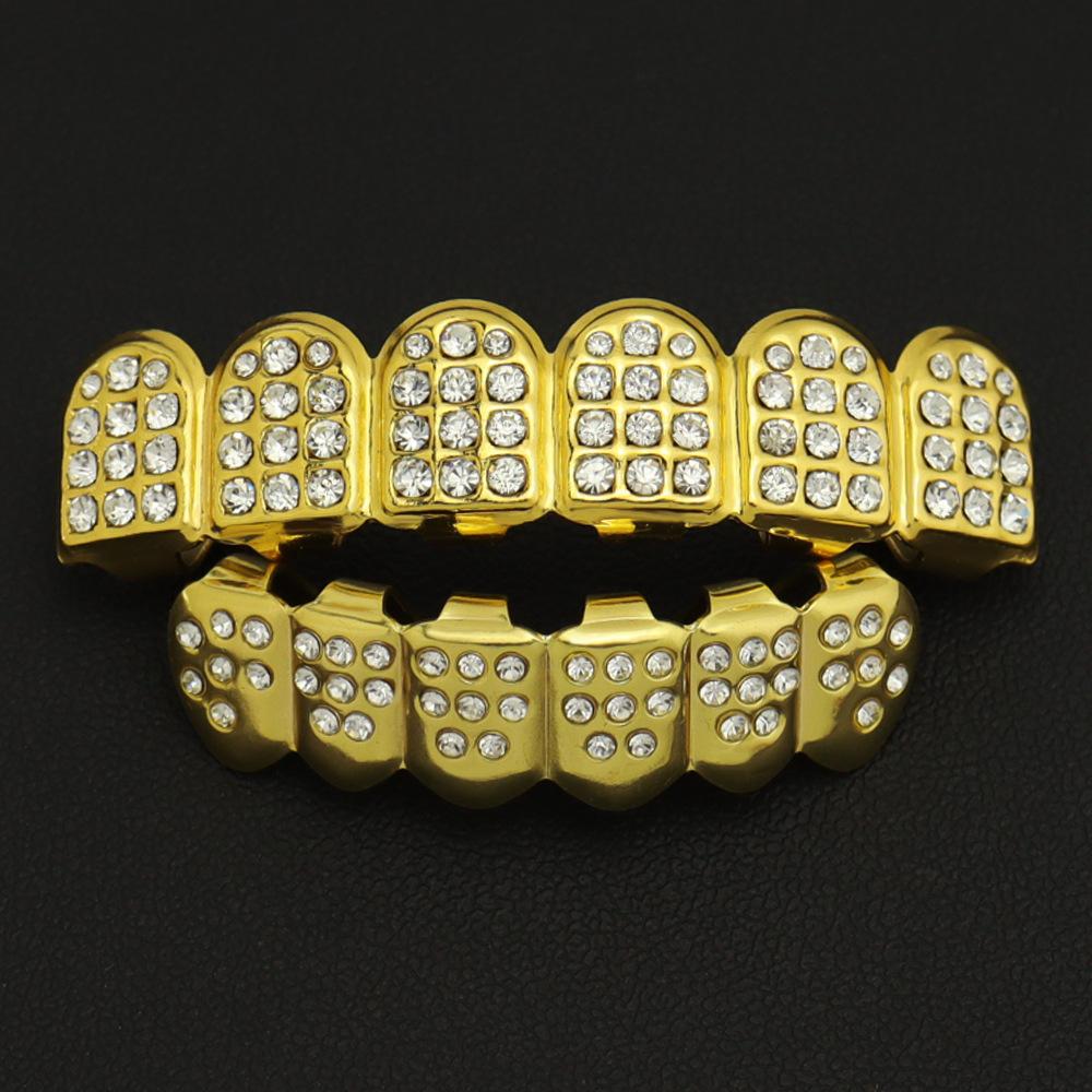 Parrillas de ortodoncia de hip hop con diamantes chapados en oro de 18 quilates para hombres y mujeres con 12 diamantes y seis dientes, accesorios finos de vampiro Tide