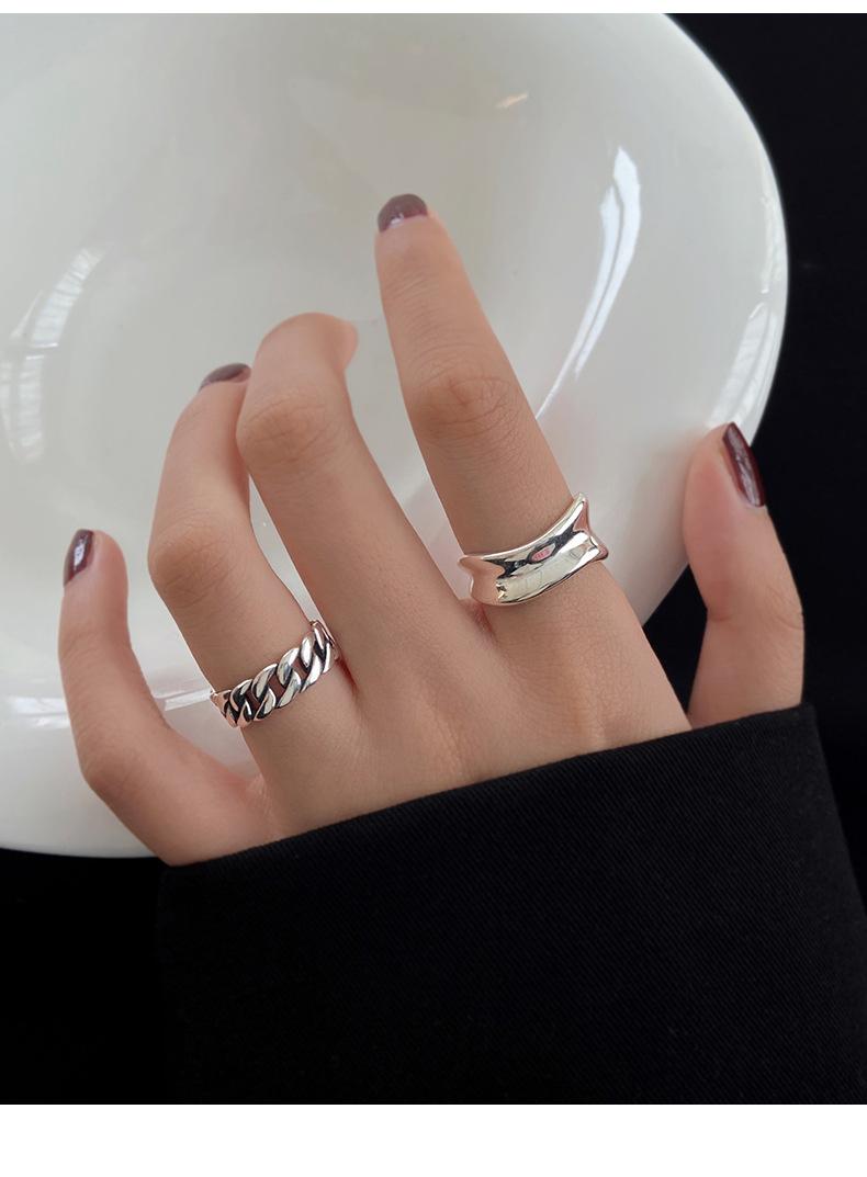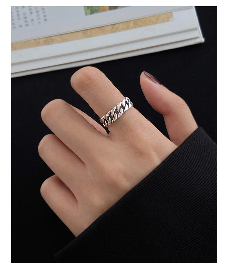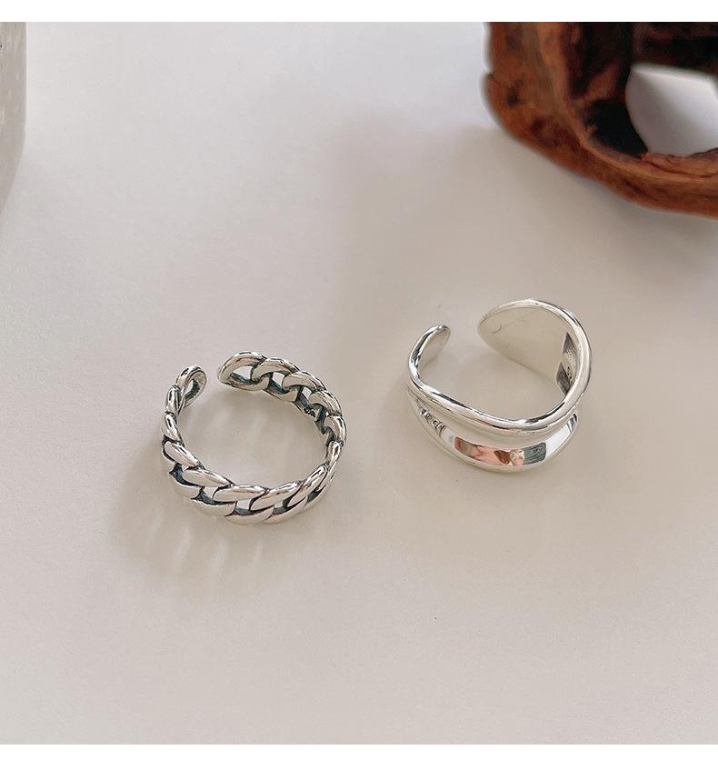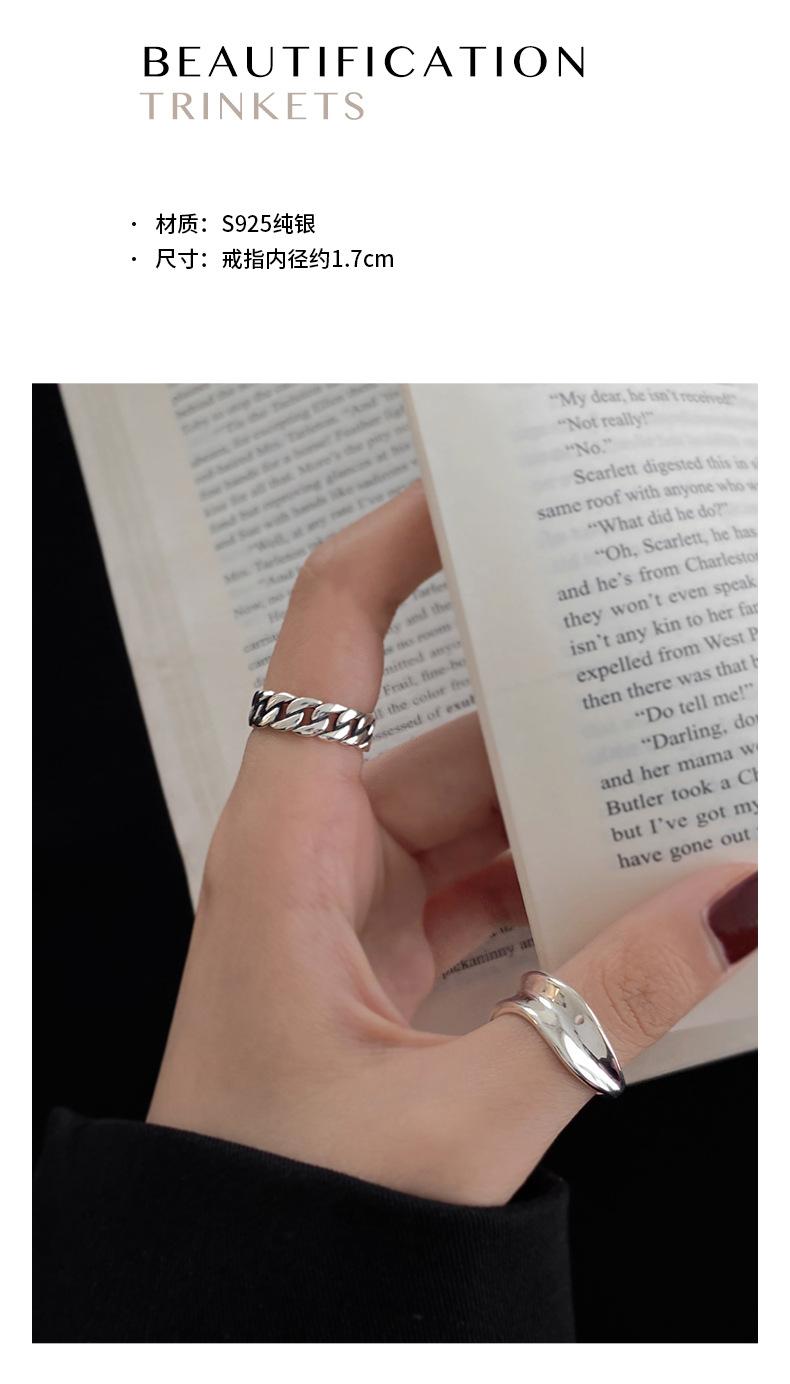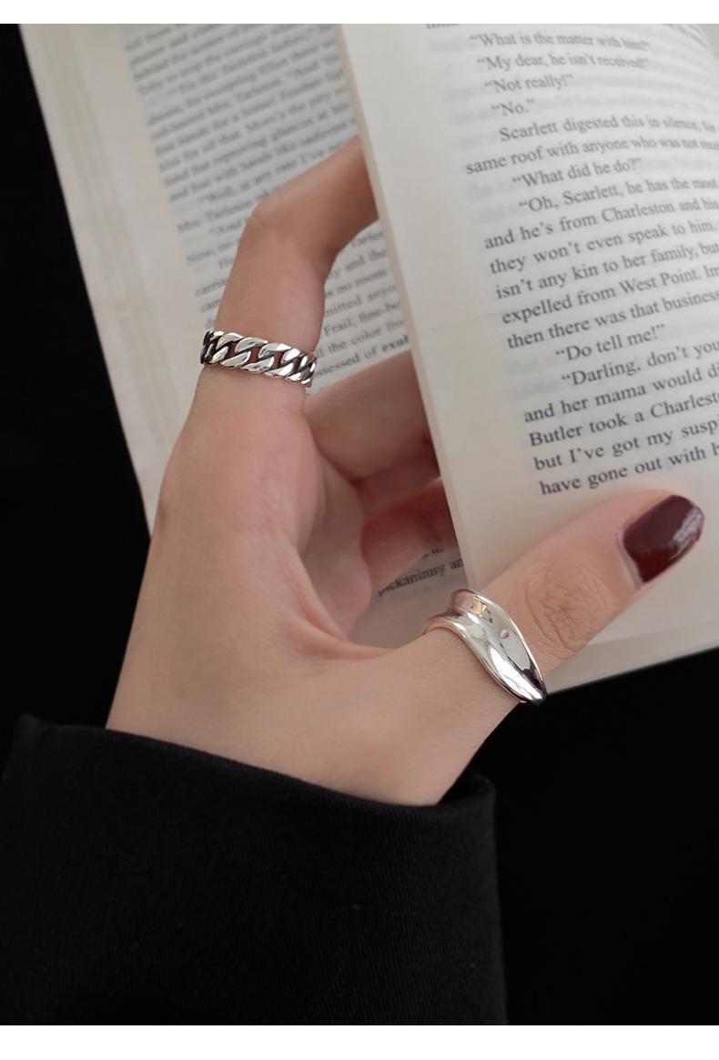Anillo Geométrico Irregular con Bultos de Plata S925 Estilo Coreano para Mujer Moda Retro Simple Cadena Anillo Abierto para Dedo Anillo para Dedo de Comida
