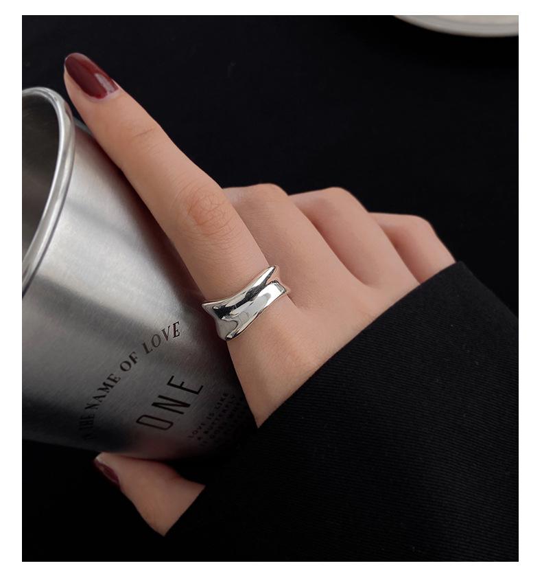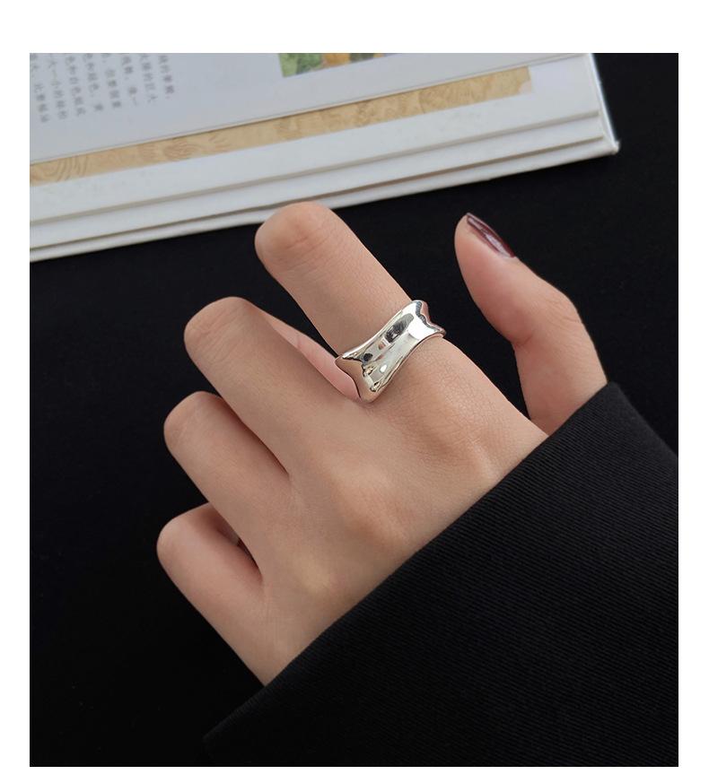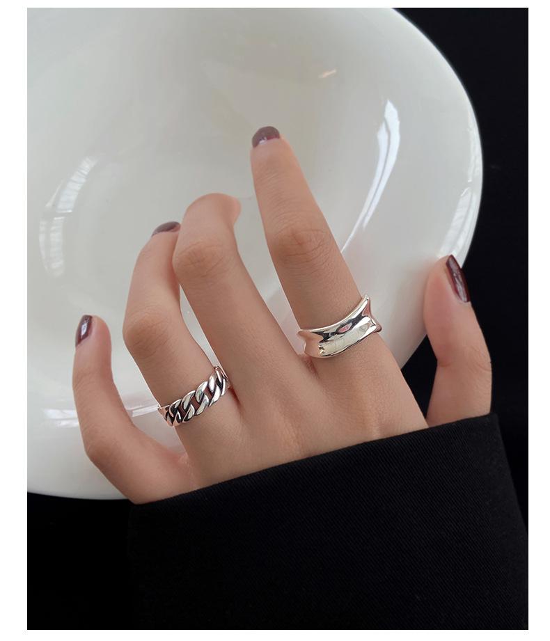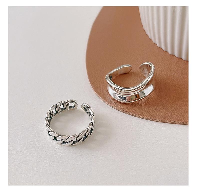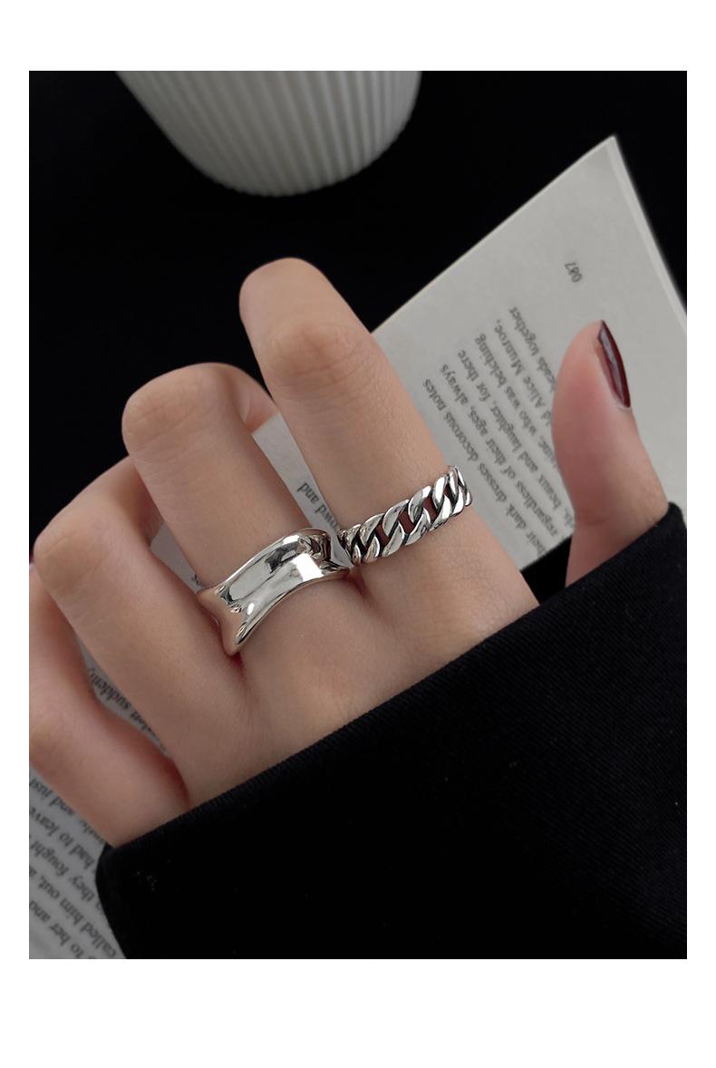 Anillo Geométrico Irregular con Bultos de Plata S925 Estilo Coreano para Mujer Moda Retro Simple Cadena Anillo Abierto para Dedo Anillo para Dedo de Comida