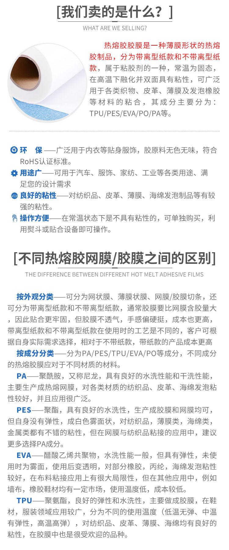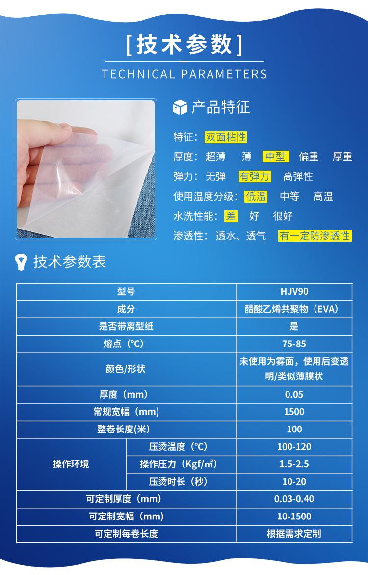 Película Adhesiva Termofusible para Respaldo, Película Adhesiva Termofusible Eva de Baja Temperatura para Empresas, 0.05 mm de Espesor, Elasticidad a Baja Temperatura y Fuerte Adhesión
