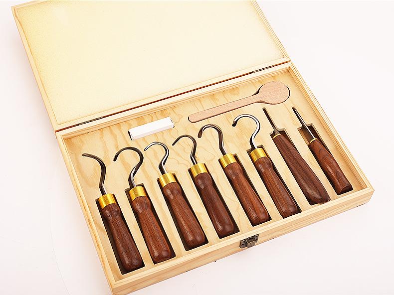 Set de 10 piezas: 8 tipos de cabezales de cuchillo, cuchara de madera + cera de aceite