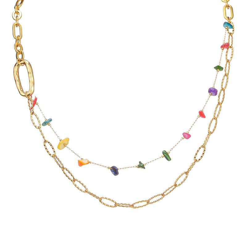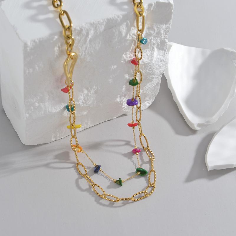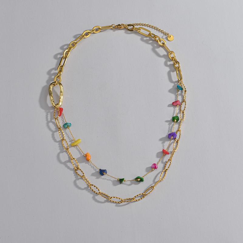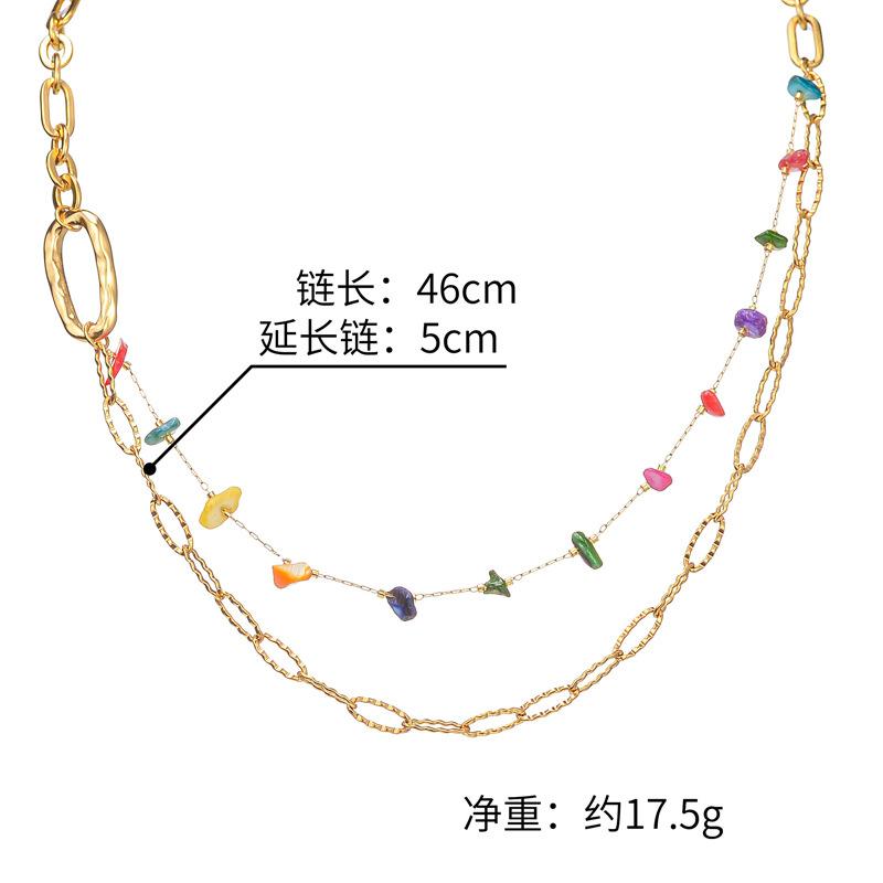 Nuevo collar de grava de oro de 14 quilates estilo retro francés con diseño de nicho, de acero y titanio, de doble capa, al por mayor.