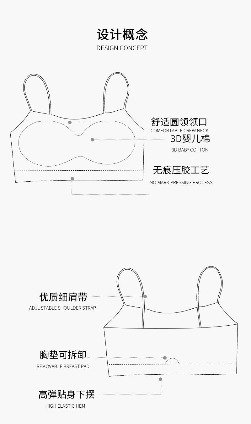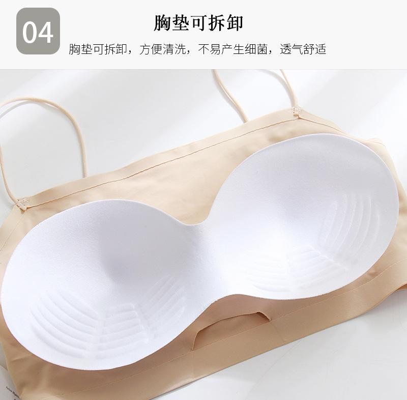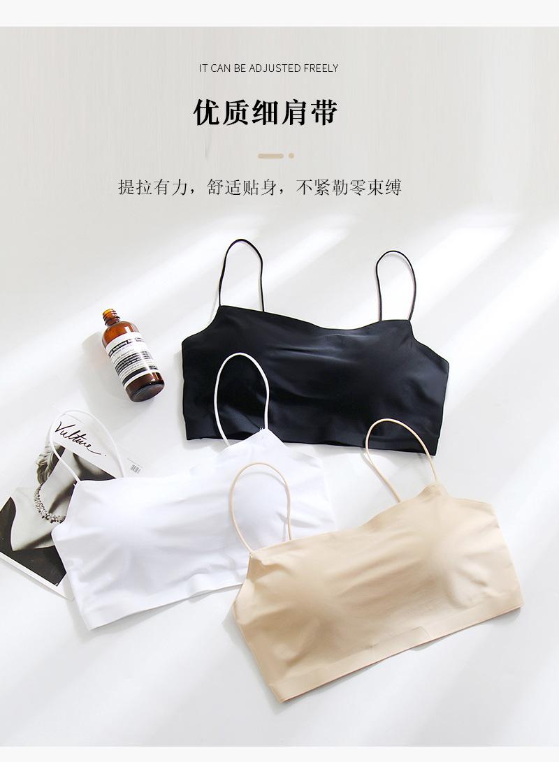 Venta directa de fábrica, sujetador de copa fija con espalda hermosa, sencillo y cómodo, tirantes finos sin tirantes, ropa interior todo en uno sin costuras para mujer, verano