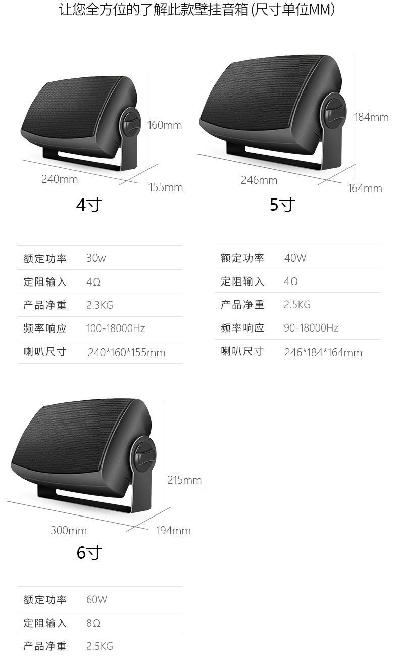 100W amplifier +2 4-inch speakers, 150W amplifier +2 4-inch speakers, 150W amplifier +3 4-inch speakers, 180W ...