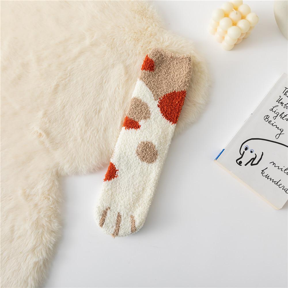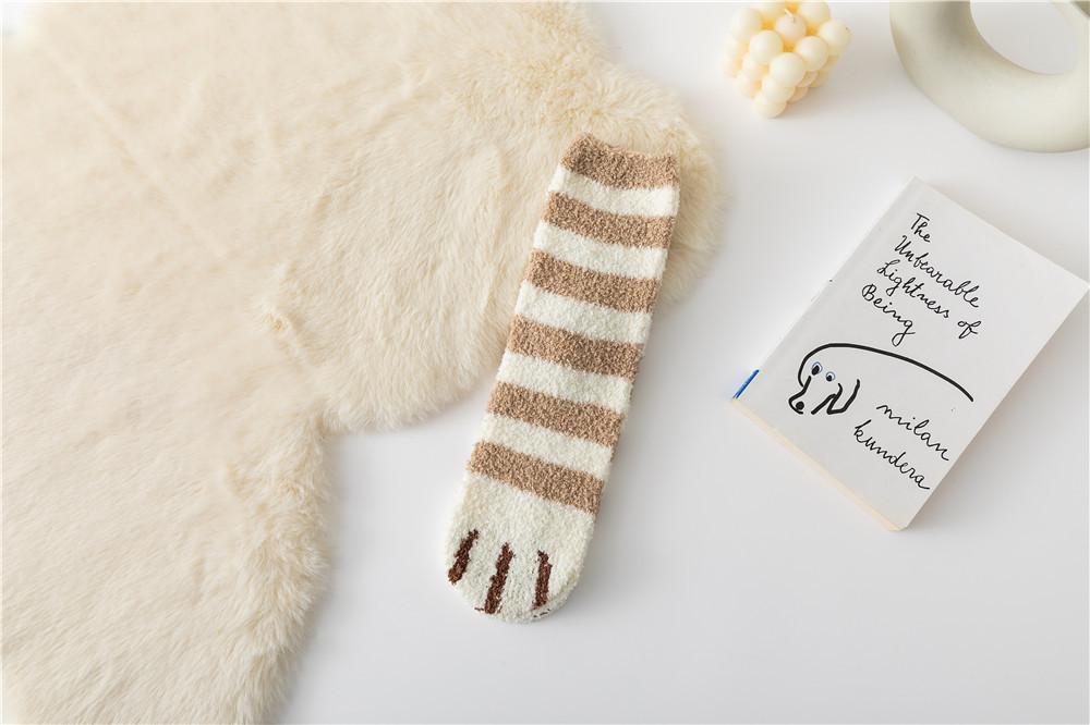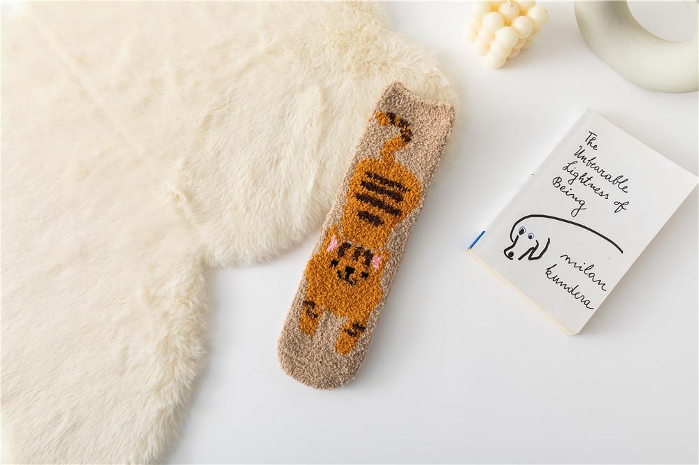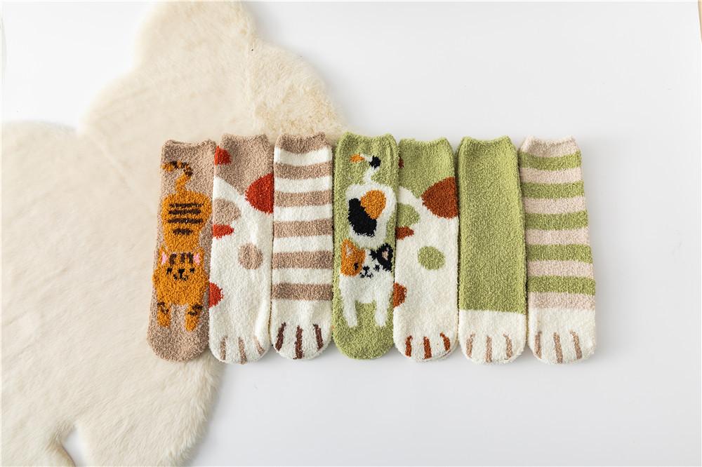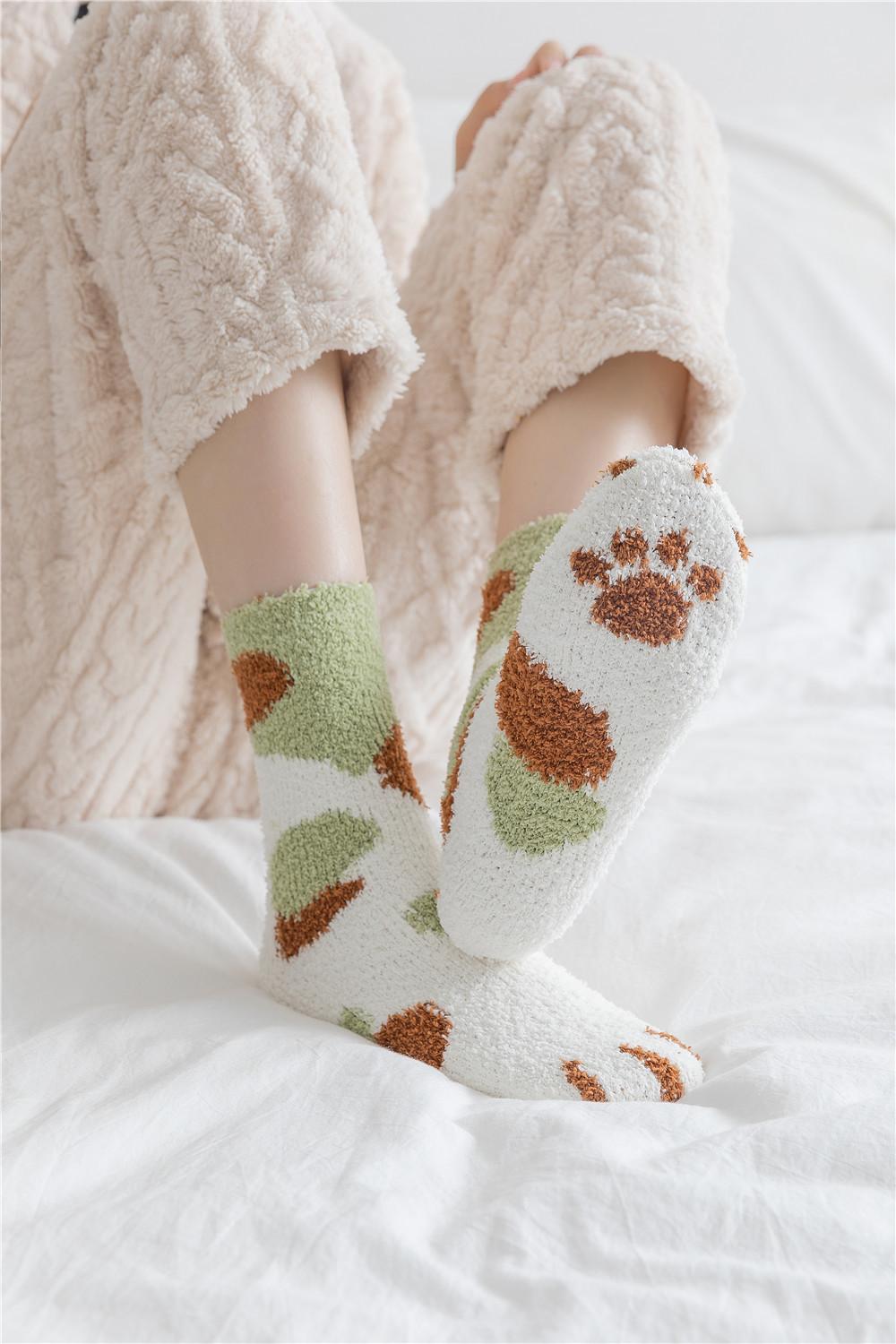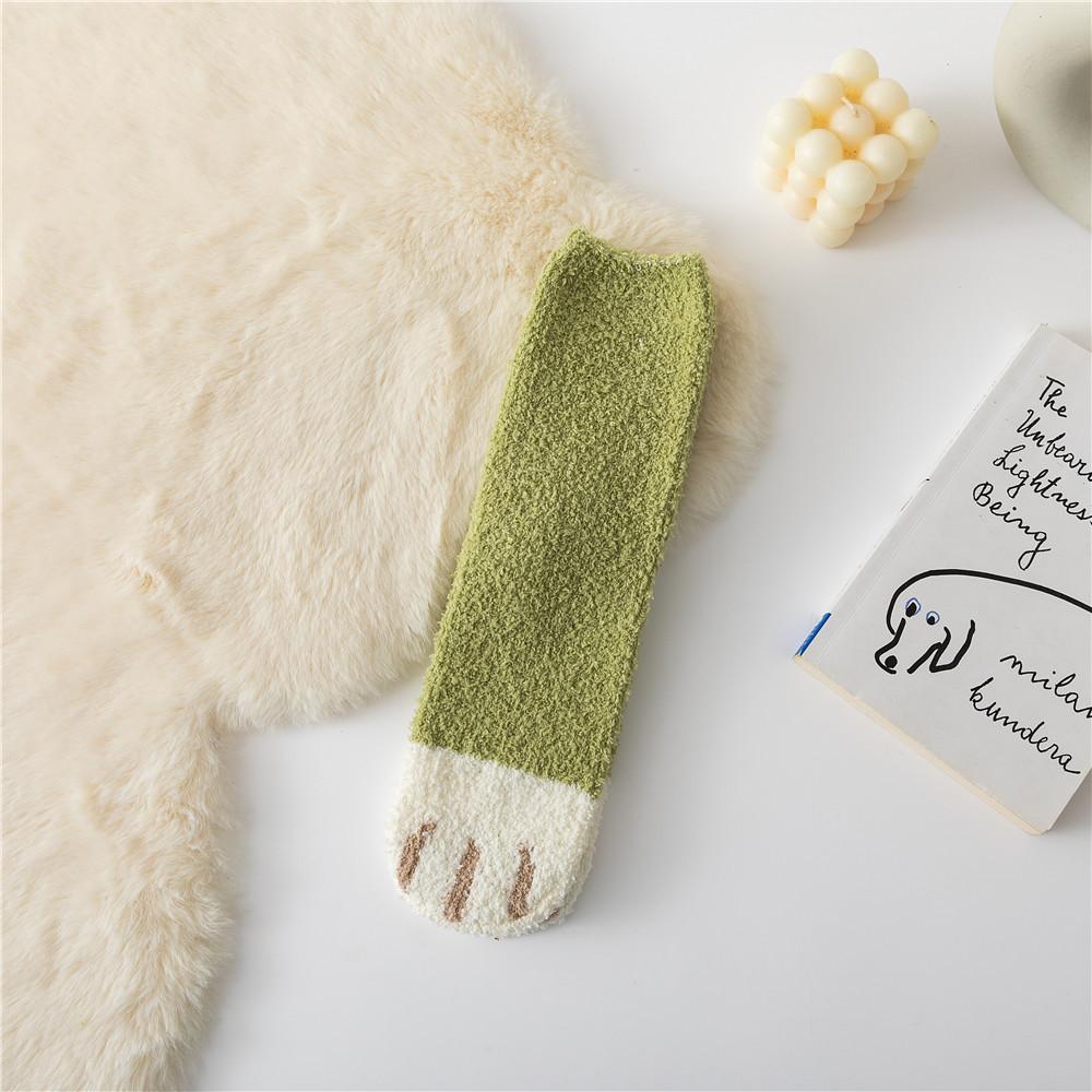 Casa para gatos de forro polar coral calcetines de tubo de invierno para mujer calcetines de dormir verdes de dibujos animados calcetines gruesos para piso con forro polar al por mayor