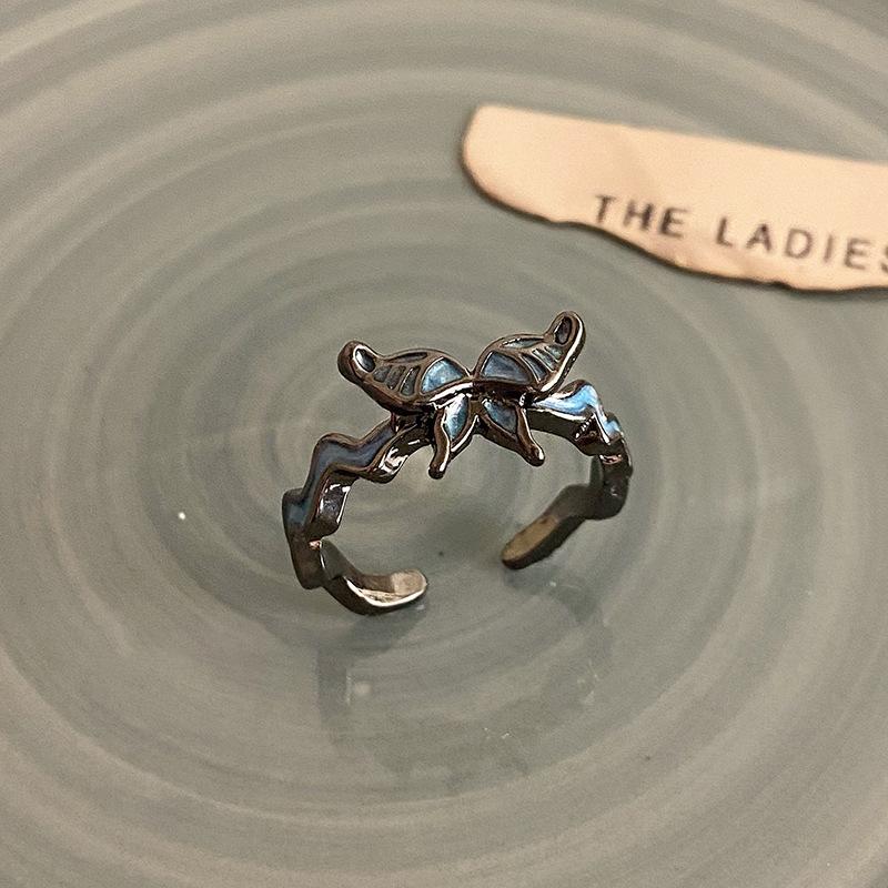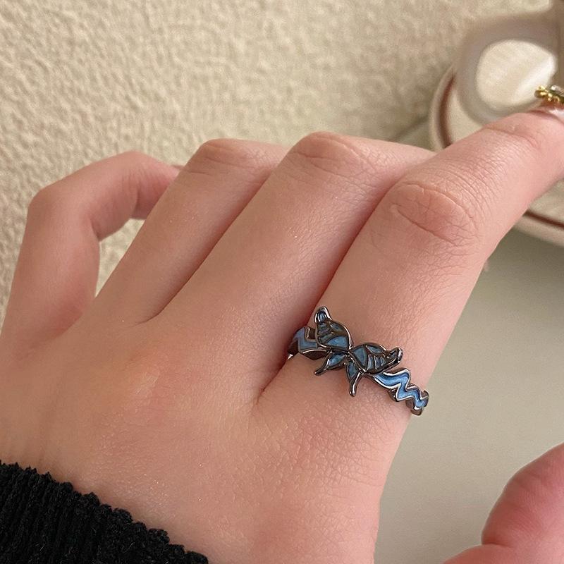 Exquisito Anillo de Mariposa Azul para Mujer 2025 Nuevo Nicho Personalidad Lujo Ligero Alta Gama Estilo Minimalista Anillo Abierto