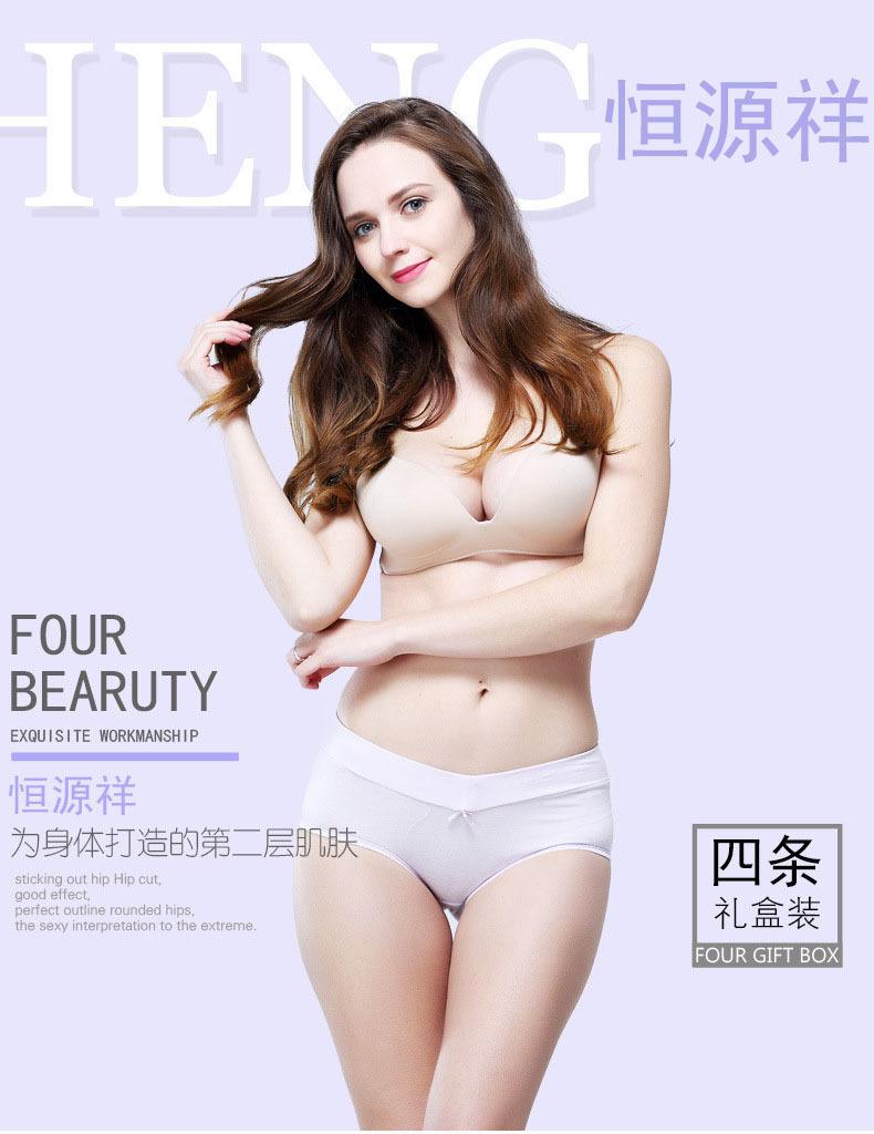 Ropa interior femenina Hengyuanxiang con lazo triangular de algodón de color liso en la cintura, en caja, lote de 4 fabricantes de ropa interior.