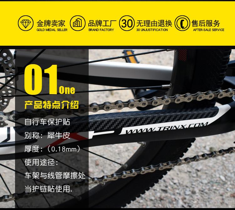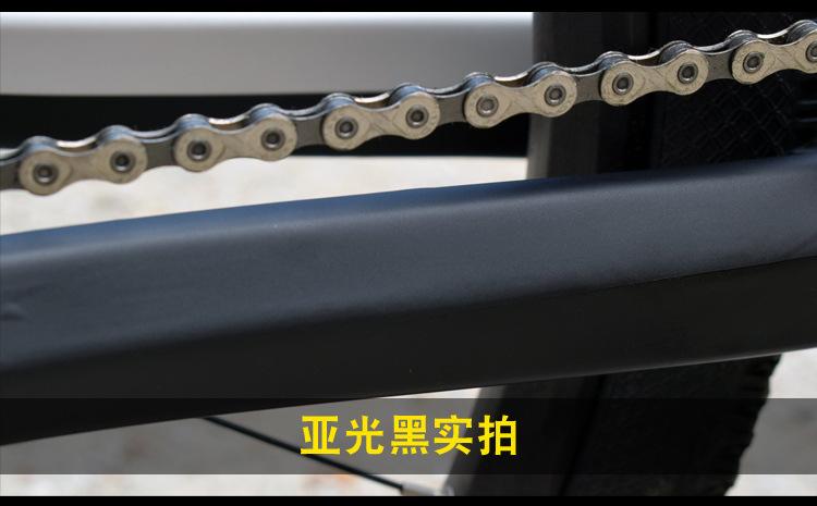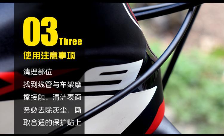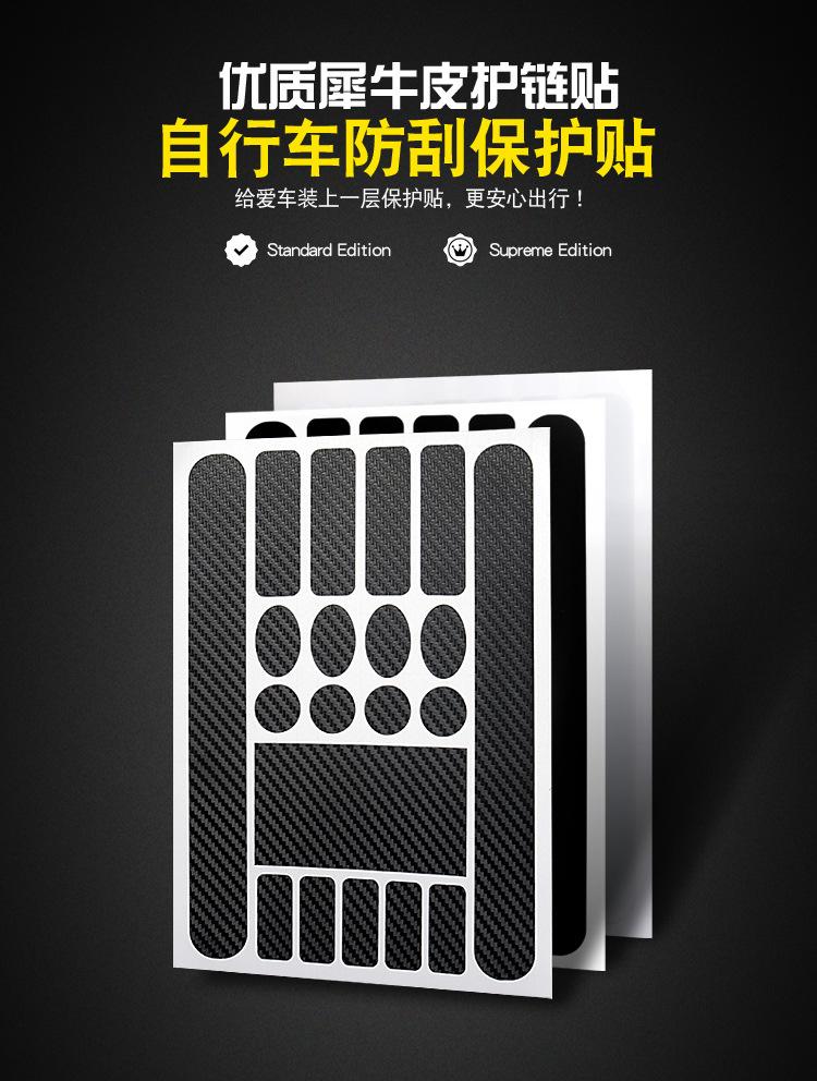 Hecho de tres materiales, negro mate y negro fibra de carbono con ranuras guía de aire incorporadas, que son fáciles de operar y no causarán burbujas. El cuero de rinoceronte transparente tiene una textura suave y es muy adecuado para proteger el cuadro. Protege eficazmente el cuadro, la horquilla delantera y las áreas de fricción con conductos de cable. Úselo como protector de cadena