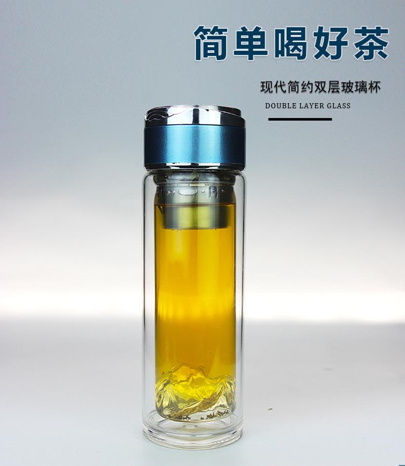 Vaso de Agua de Vidrio de Doble Capa de 350 ml Vaso Transparente para Coche con Infusor de Té Vaso de Regalo de Negocios con Botella de Vidrio Impresa