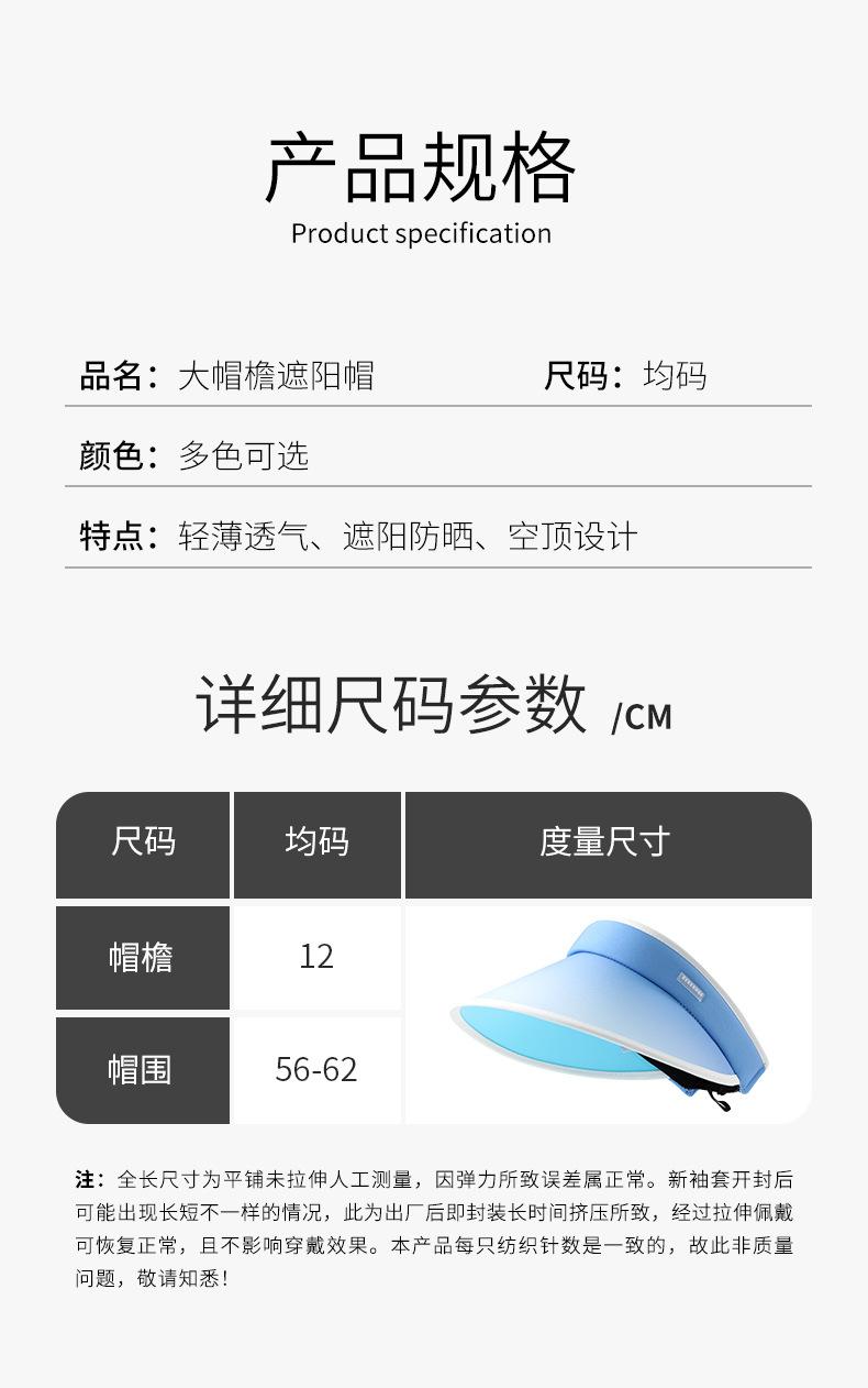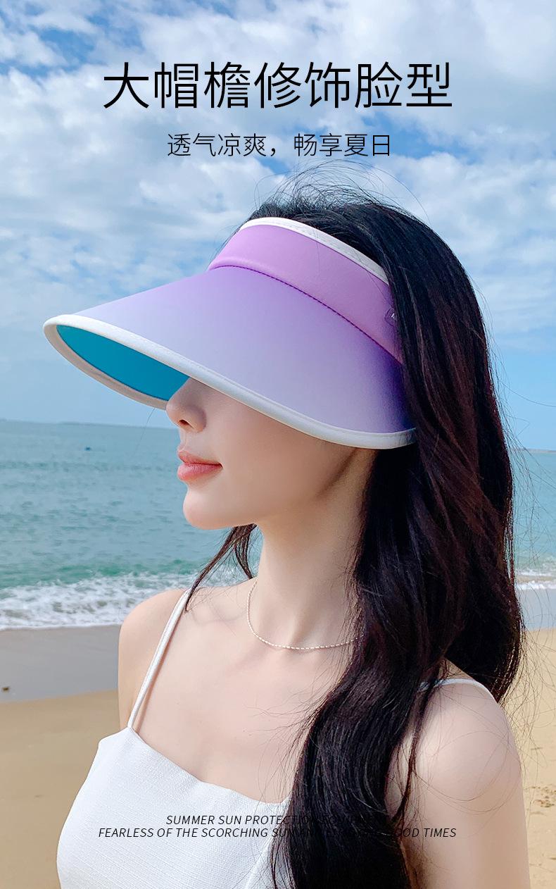 Sombrero de verano para mujer, con degradado, aleros grandes, parte superior vacía, protector solar, sombrero para deportes al aire libre, ciclismo, playa, sombrero para el sol, cara pequeña