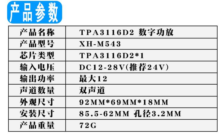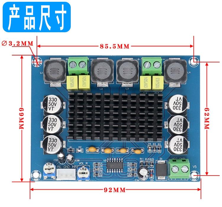 Módulo de Amplificación de Audio Tpa3116D2 Xh-M543 Tarjeta Amplificadora de Potencia Digital Clase D Dos Canales 2*120W Ajustable