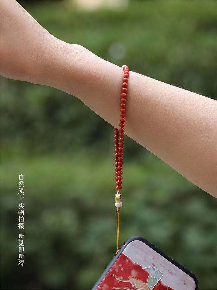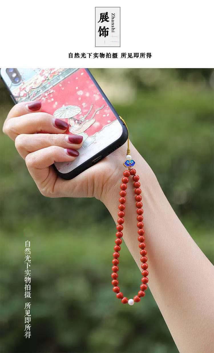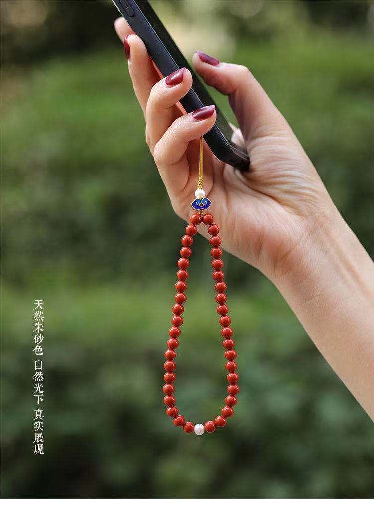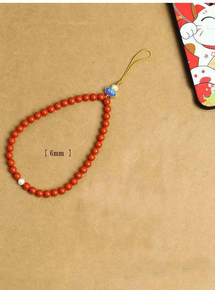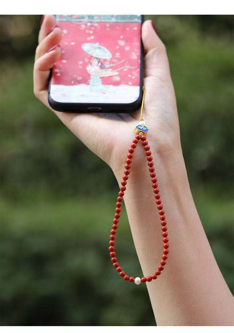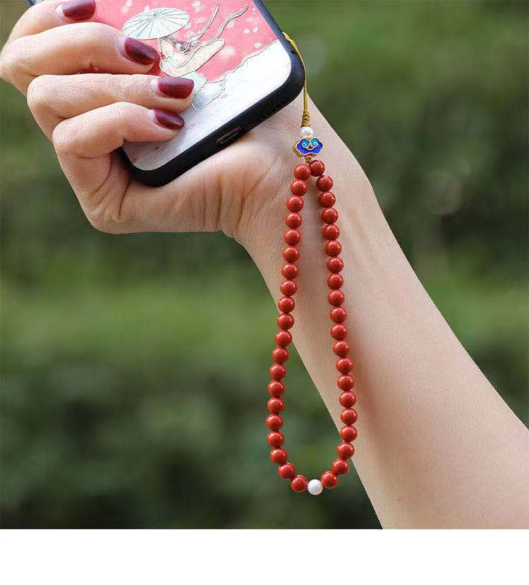 Cordón para Teléfono Móvil Cinnabar Rojo Genuino Natural Estilo Nacional Popular en Internet Moda Creativa Tejido a Mano Cadena para Teléfono Móvil Cadena Colgante de Muñeca