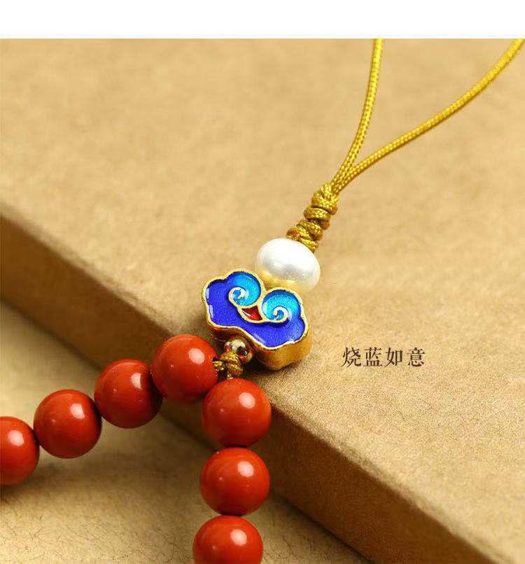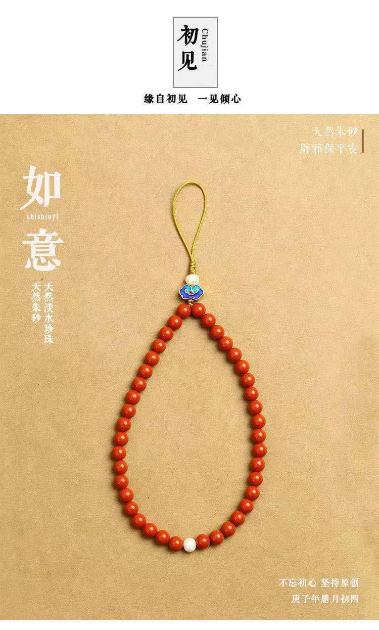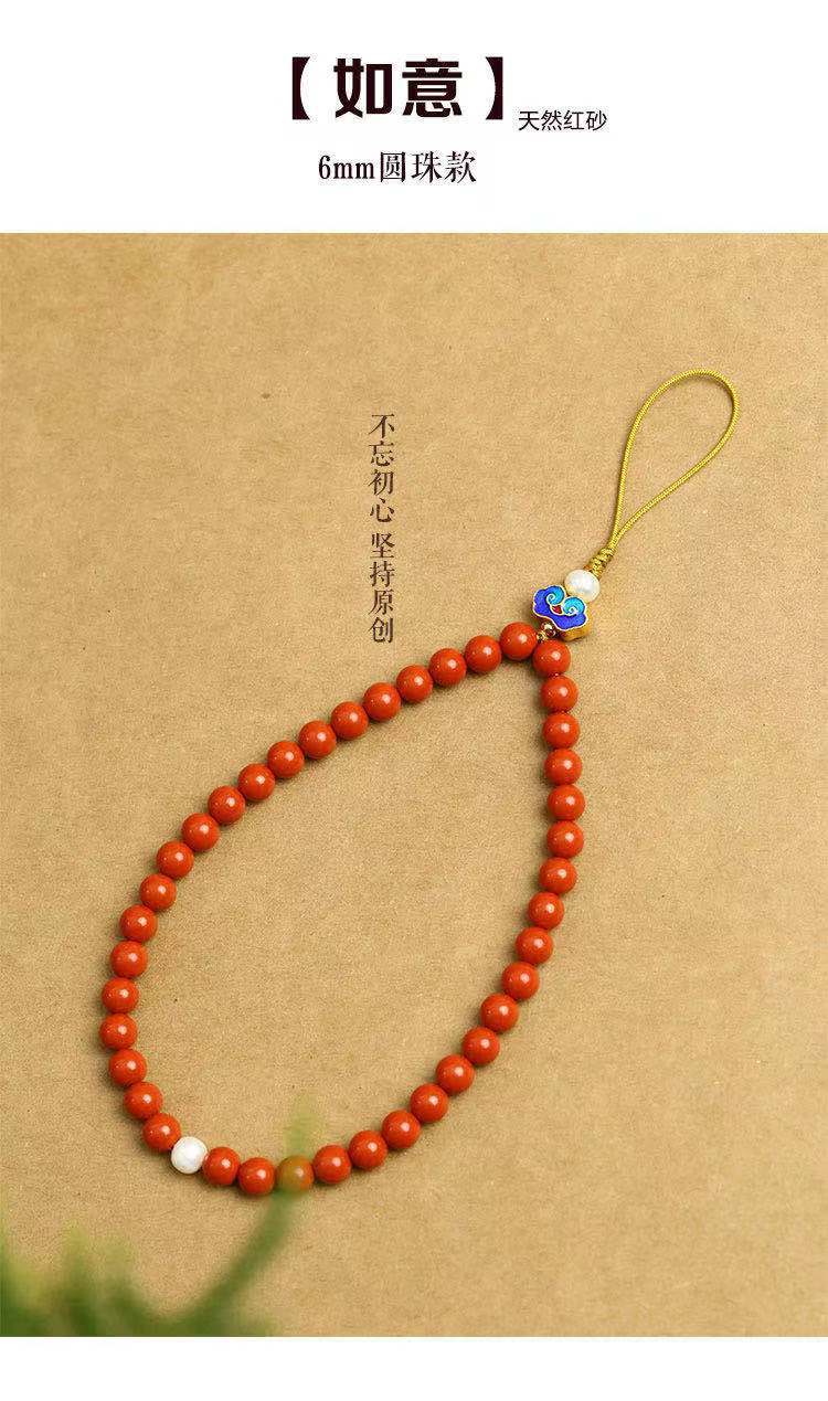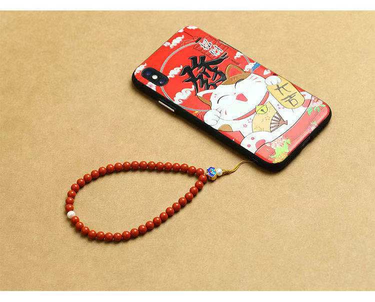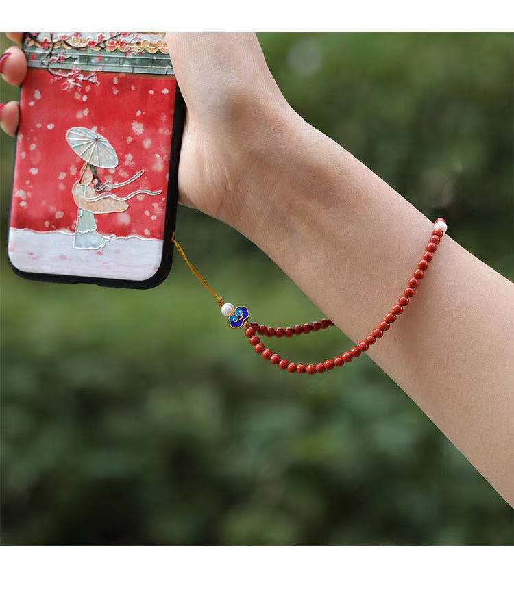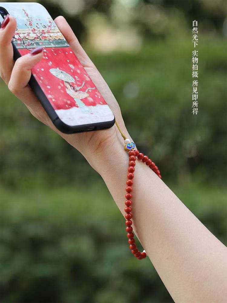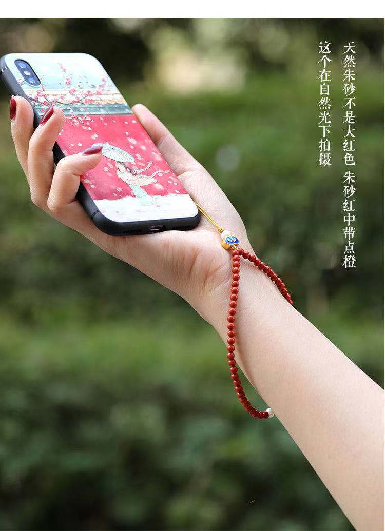 Cordón para Teléfono Móvil Cinnabar Rojo Genuino Natural Estilo Nacional Popular en Internet Moda Creativa Tejido a Mano Cadena para Teléfono Móvil Cadena Colgante de Muñeca