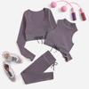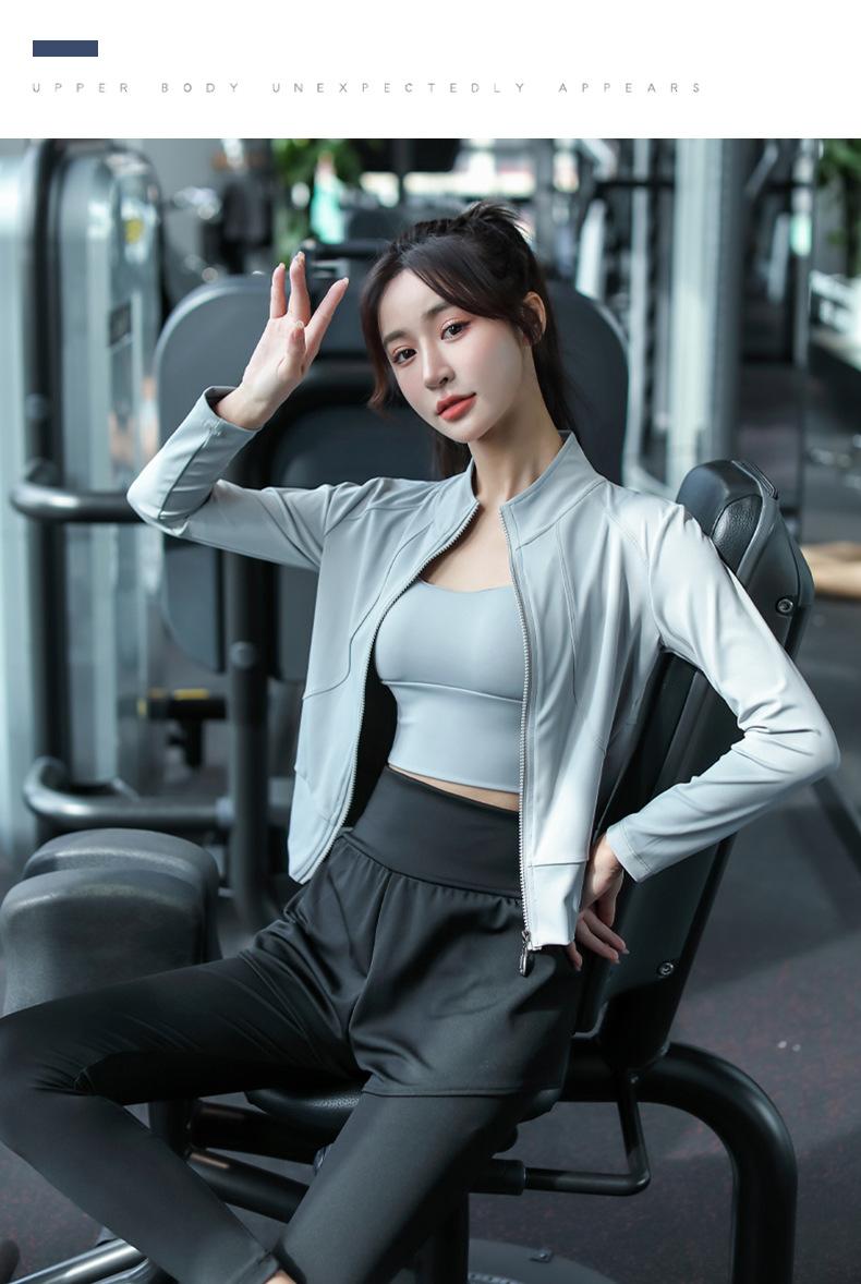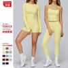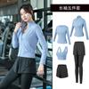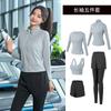 Ropa de yoga, traje deportivo de cinco piezas de manga larga para mujer, ropa de entrenamiento de otoño de alta elasticidad, ropa para correr, ropa para correr matutina roja de red